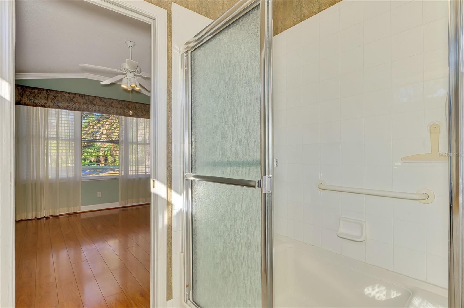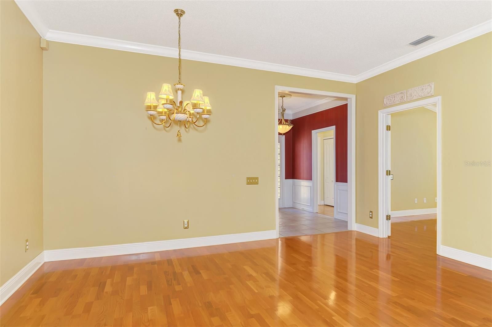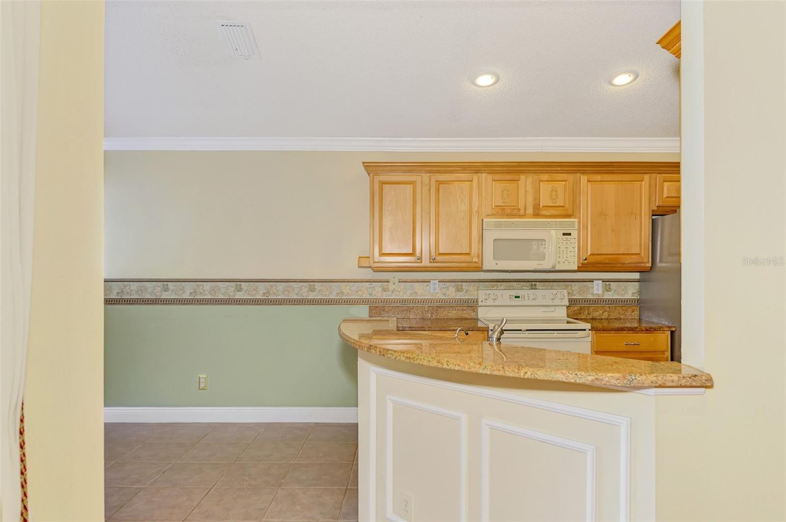 - Ceiling Fan(s), Crown Molding, Eat-in Kitchen, Living/Dining Room, Open Floorplan, Main Level Primary, Solid-Wood Cabinets, Split Bedrooms, Stone Counters, Thermostat, Window Treatments