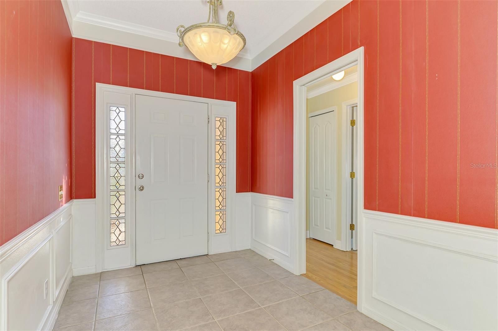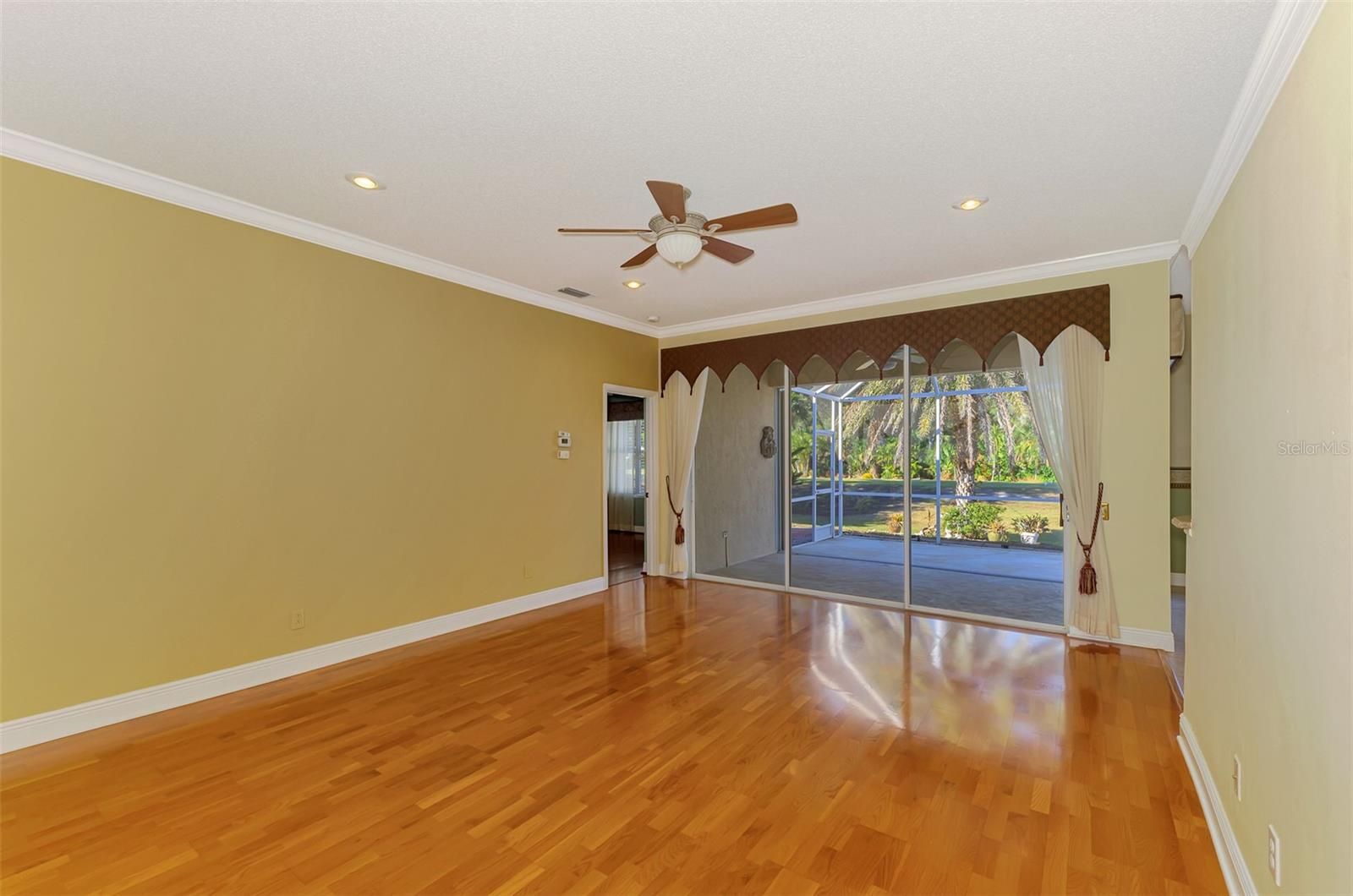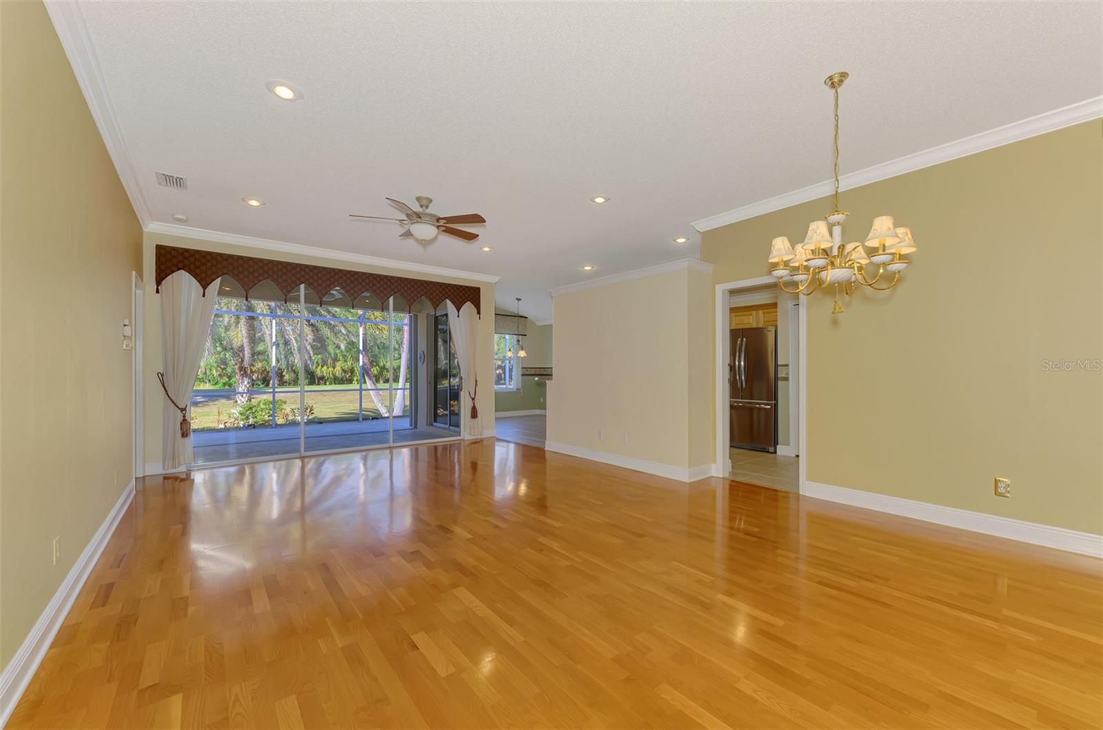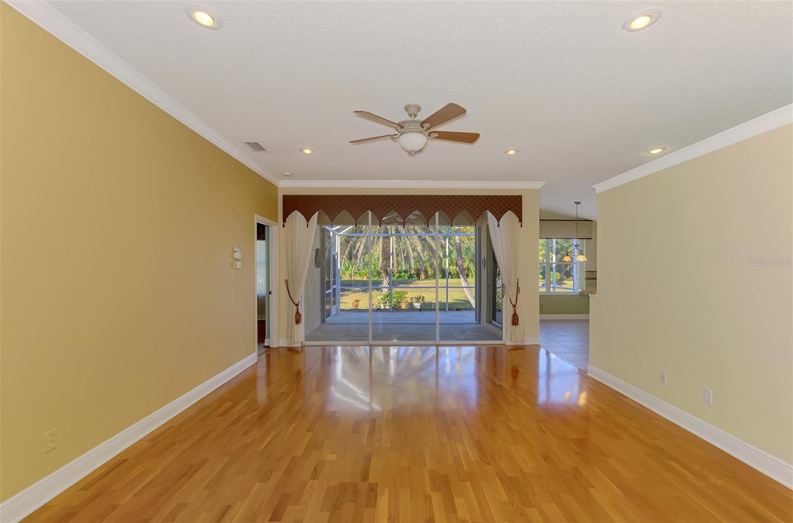One or more photo(s) has been virtually staged. Charming Home with Golf Course Views in a Quaint Neighborhood! Located just outside the Plantation Golf & Country Club, this delightful home offers breathtaking views of the #3 tee box on Panther Golf Course from the expansive lanai, primary bedroom, and living room/kitchen sliding glass doors. The split floor plan provides two bedrooms with a guest bath on one side, while the primary suite is perfectly positioned for privacy and relaxation, featuring a luxurious en suite with granite countertops, dual sinks, a walk-in shower, and a private water closet. The eat-in kitchen includes granite countertops, pantry, and crown molding flows throughout the home. The laundry room includes convenient cabinets and Bedroom 2 includes a charming window seat. The oversized garage has an exterior door, and the outside is finished with custom curbing. The extended lanai is ideal for entertaining or relaxing while taking in the scenic golf course and adjacent water views. Membership to the Plantation Golf & Country Club is Optional. The club offers two 18-hole championship golf courses, pickleball, bocce ball, tennis, fitness center, pool and fine dining. Don’t miss this opportunity—buyers, schedule your private tour today, and agents, bring your clients to experience why this one won’t last long!
