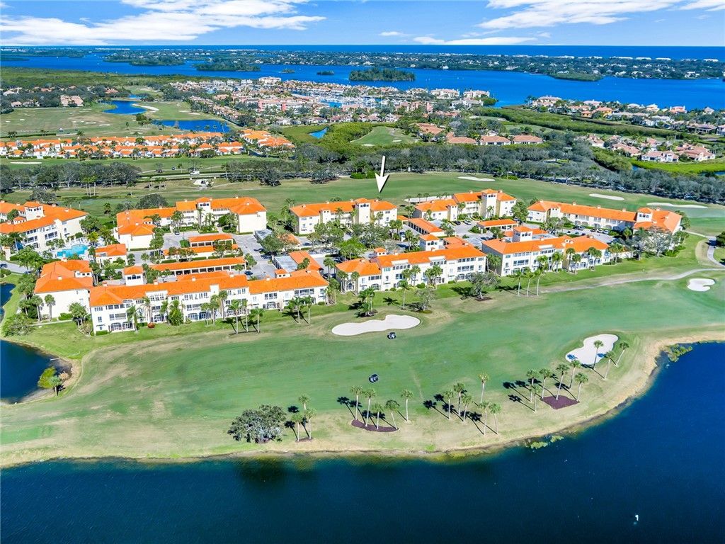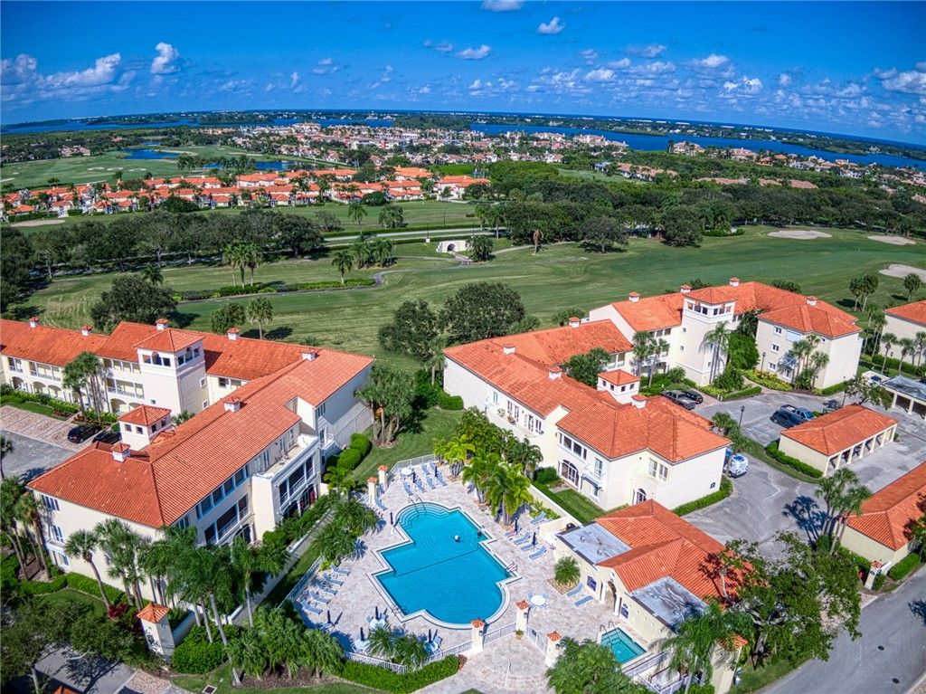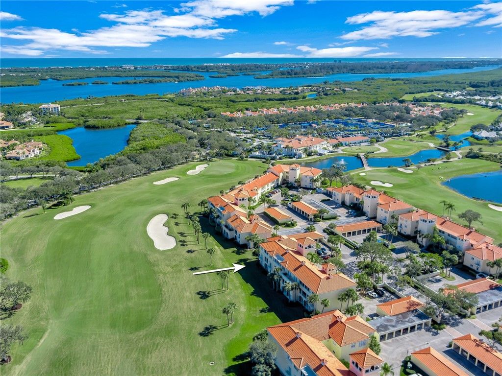 Beautiful golf views! Desirable 1st floor 2 bedroom, 2 bath condo! Enjoy all the amenities Grand Harbor community has to offer, tennis, pickleball, clubhouses, beach club and beach access. Unit has been replumbed and all structural repairs on balconies and walkways complete. Beautiful plantation shutters and new noseum screens, primary bedroom has a walk-in California closet! One covered garage space and extra storage! Sports Membership is available to purchase along with this unit!