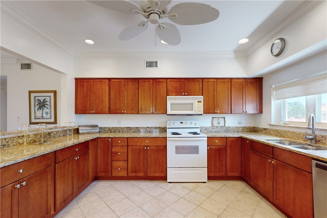 GOLF COURSE VIEWS-ALL building updates have been made, COMPLETELY REPIPED, 2024 AC, 3 bedroom, 3 bath end unit with THREE brand new balconies TWO carports w additional storage. Spacious updated kitchen with granite countertops and stainless steel appliances, a cook....or entertainers dream.BEAUTIFULLY updated bathrooms-two ensuites, walk in closet, balconies off living room and primary bedroom. Just a short stroll to the community pool...or clubhouse SHOULD YOU DECIDE TO JOIN-TWO golf courses to choose from + tennis, pickleball, BEACHCLUB and more. Building has elevator