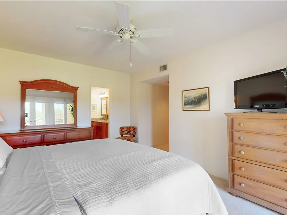 ALL building updates have been made, COMPLETELY REPIPED, 2024 AC, THREE brand new balconies with fantastic golf views. TWO carports w additional storage. Spacious updated kitchen with granite countertops and stainless steel appliances, a cook....or entertainers dream.BEAUTIFULLY updated bathrooms-two ensuites, walk in closet, multiple balconies (all recently re-constructed) off living room and primary bedroom. Just a short stroll to the community pool...or clubhouse SHOULD YOU DECIDE TO JOIN-TWO golf courses to choose from + tennis, pickleball, beachclub and more. Building has elevator