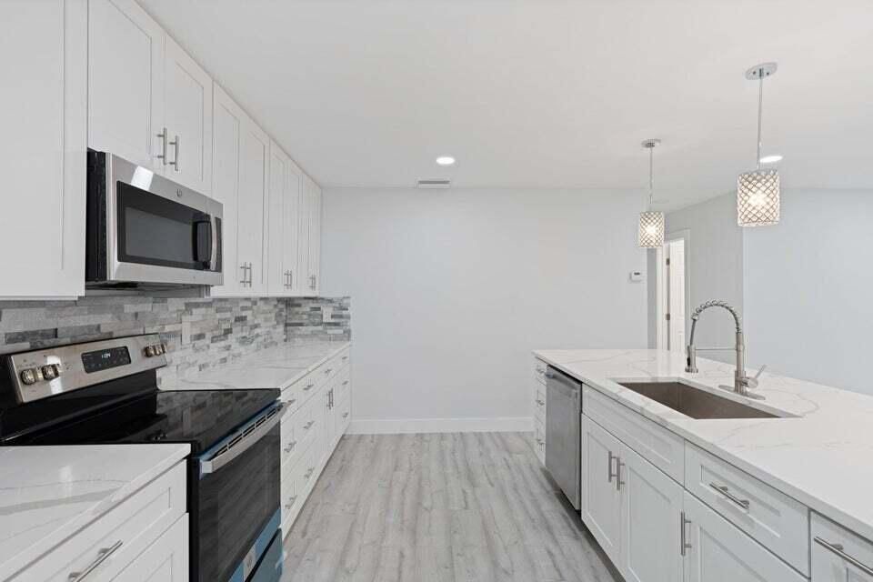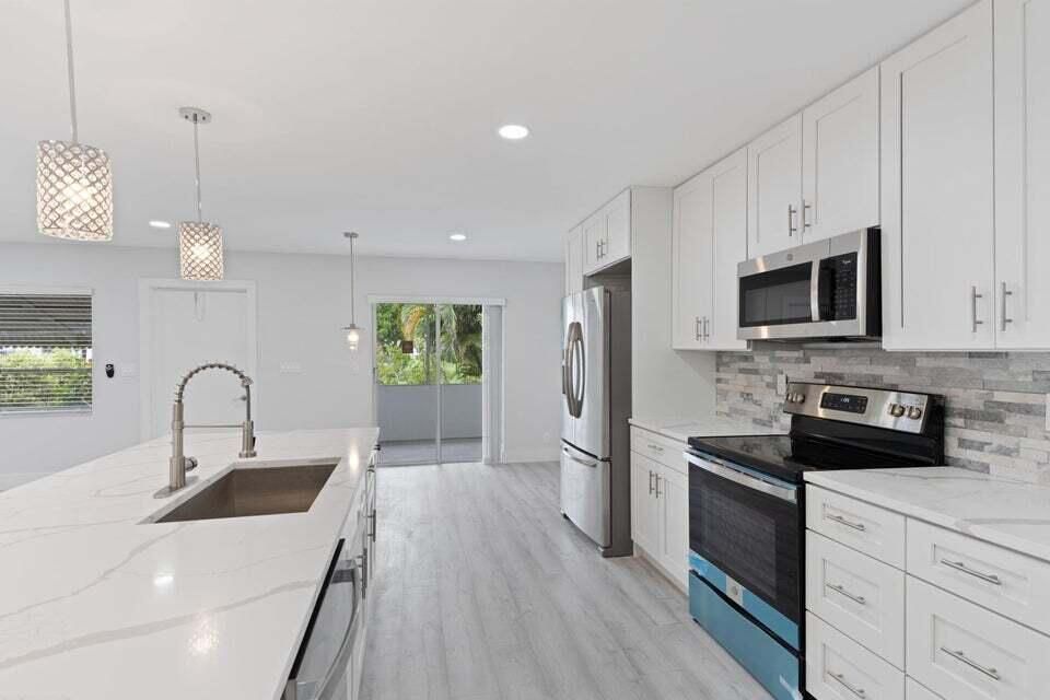 Welcome to this guard-gated, amenity-rich community of Cypress Lakes in West Palm Beach. This inviting 2 bed, 2 bath villa has been totally renovated, offering a seamless blend of modern comfort and carefree living. Step into an open-concept living and dining space that flows effortlessly into a beautifully updated kitchen featuring sleek cabinetry, quartz countertops, stainless steel appliances, and stylish fixtures. Both bathrooms have been tastefully transformed, and the bedrooms are spacious and bright — including a master suite with its own full bath for added convenience. A screened patio (or covered lanai) extends your living outdoors where you can enjoy morning coffee or evening relaxation overlooking lush landscaping or tranquil community views. Within Cypress Lakes you'll enjoy resort-style amenities: a 9-hole golf course (no membership required), clubhouse with pool and spa, fitness centre, tennis/pickle-ball courts, shuffleboard, bocce, and more all within a vibrant, 55+ lifestyle community. Ideally located just minutes from I-95, The Florida Turnpike, shopping, dining, International Airport and Palm Beach's white-sand beaches, this villa offers the perfect combination of lifestyle, location, and low-maintenance living. Don't miss your opportunity to own a beautifully updated home in Cypress Lakes move-in ready and waiting for you!