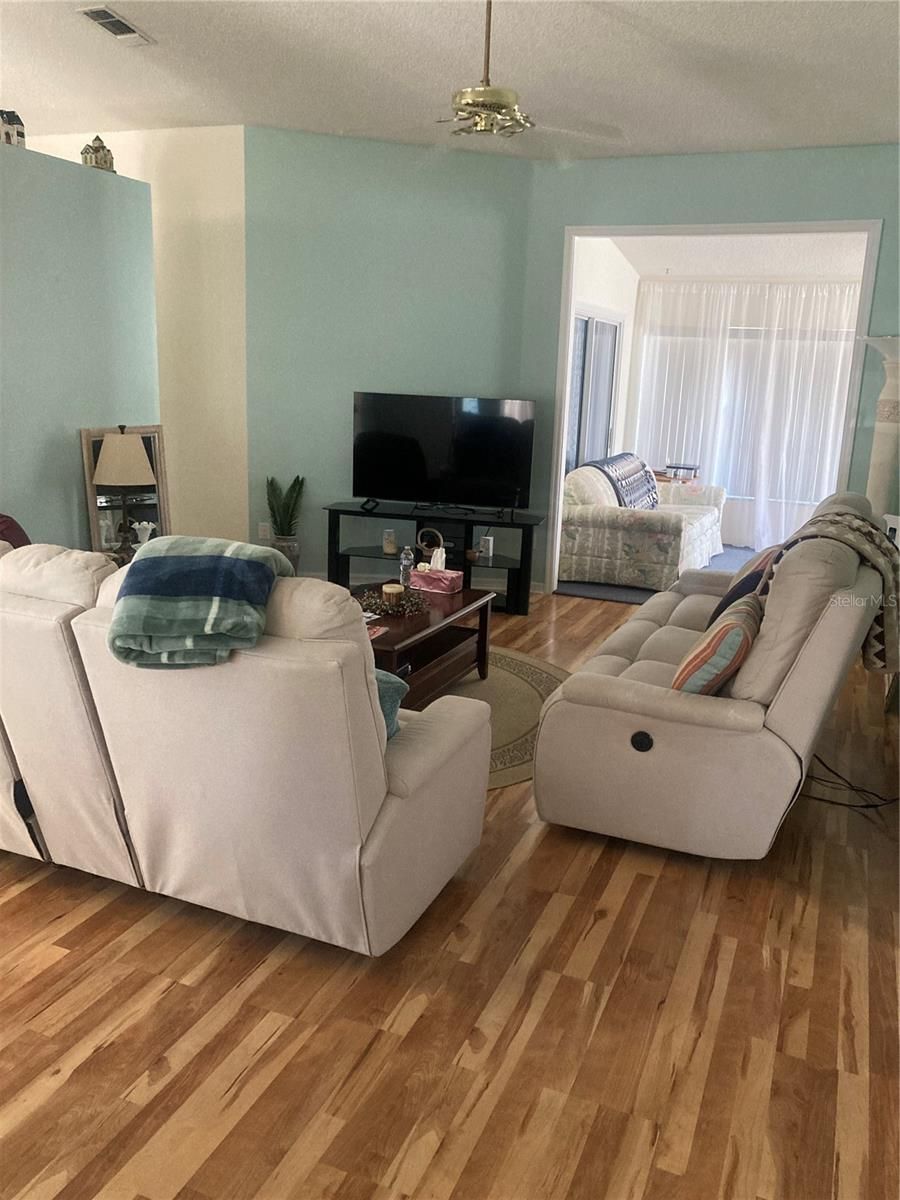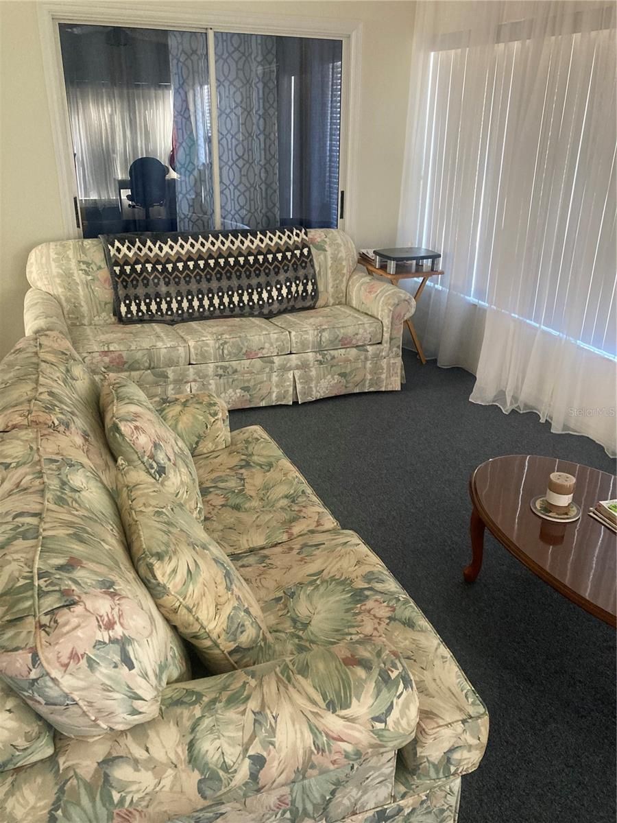 You will get many years of delight out of this lovely home on an oversized lot. It features new counters, carpet, kitchen faucet, bathroom lights and curtains along with ample storage closets as well as washer/dryer, ceiling fans throughout and a mixture of tile, carpet and wood laminate flooring; not to mention the extra large Florida room. Not only was there major upgrades to the sprinkler system, timer and valves but new landscaping and state of the art water meter. The oversized garage is a delight with it's work bench and storage. The newer 2019 AC and water heater will give you years of trouble free service and the handicap assessable Master bath with hand rails, water saver toilet and bidet can't be beat. This 55 + guarded, gated community features street lined shade trees, a library, ballroom/theater/meeting hall, two 18 hole golf courses, 3 activity centers and pools, tennis and pickleball courts, bocce, shuffleboard, softball, fitness centers, paved golf paths, walking paths, low HOA fee, clubs and more.