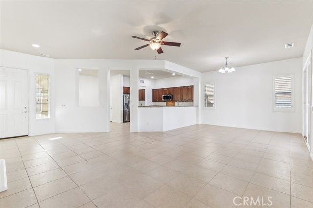 Welcome to this stunning 2-bedroom, 2-bath plus den home, beautifully situated on a professionally landscaped corner lot in the highly desirable 55+ Del Webb community of Solera Diamond Valley. With the addition of a private casita featuring a Murphy bed, closet, and full bathroom, this exceptional property truly offers **three bedrooms and three bathrooms**, providing incredible flexibility for guests or multi-generational living. Spanning 2,130 square feet of thoughtfully upgraded living space, this home blends elegance, comfort, and functionality. The curb appeal is unmatched, showcasing professionally designed landscaping with decorative concrete, striking rock accents, and zero turf for low-maintenance beauty. A charming front patio invites you inside to a bright, open-concept layout filled with natural light. Inside, enjoy 20-inch porcelain tile throughout the main living areas, crown molding, and a cozy fireplace that adds warmth and character. The chef's kitchen is a standout, featuring stainless steel appliances, granite counter tops, upgraded fixtures, a large island with bar-top seating, a breakfast nook, and abundant cabinetry-perfect for both everyday living and entertaining. The spacious primary suite is a private retreat, offering a generous walk-in closet and a sp