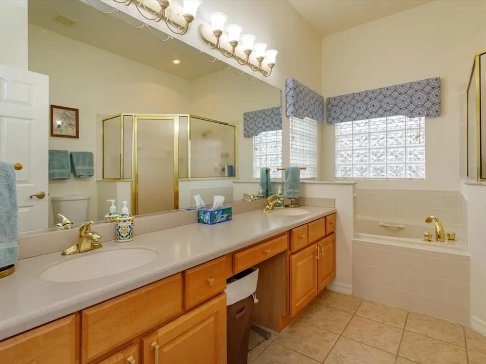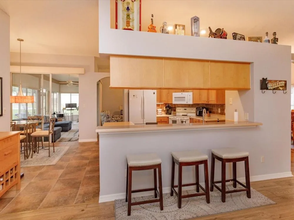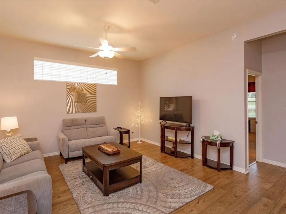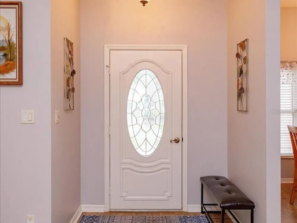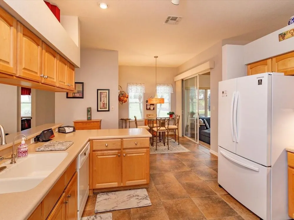 This beautiful home was built in 2001 but with the modern features it feels like a new home. Located on a gorgeous corner lot with a decorative driveway. The Enclosed Lanai can be used year round as a mini/split has been added to provide comfort and is accessible from the Kitchen, Living Room or Primary Bedroom. The windows have been upgraded to THERMAL PANE TINTED WINDOWS. This home has two Primary Bedrooms with ensuite bathrooms. The closets throughout the home have been upgraded with closet organizers to provide maximum storage! The Corian countertops and solid wood cabinets make the kitchen classic and beautiful. There is a large indoor laundry room that provides additional storage as well as a half bath. The garage is oversized at 690 sf. It has added overhead storage racks and is bigger than most of the other garages in the community. There is an electric roll down privacy screen to provide a nice breeze while working on projects in the garage. The gutters on this home have been upgraded to LEAF GUARDS, so you'll enjoy drainage without the clean out. *Roof 2017*HVAC High Efficiency 14.5s TRANE Located in the beautiful Plantation at Leesburg, in Sawgrass Village, a 55 plus community offers two full size golf courses, 3 clubhouses; all with heated pools, tennis, pickleball, pool tables, darts and more! There is an on-site restaurant so you can take a quick golf cart ride to enjoy food and live music with friends!