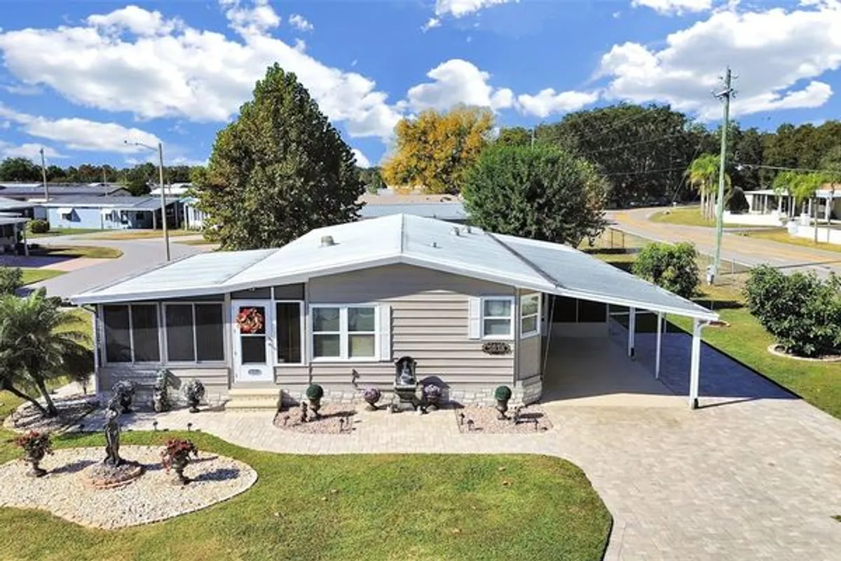 WOW, SO MANY UPDATES!!!! BEAUTIFUL 2 bedroom, 2 bathroom home in the highly desirable 55+ community of FOXWOOD LAKE ESTATES WHERE YOU OWN THE LAND!! This beautifully landscaped home welcomes you inside from the first moment you drive up! Step inside the finished Florida Room with updated windows and separate heating and AC, then enter into the spacious living room and dining room! Around the corner is the updated kitchen with new cooktop, new countertops, tile back splash and wood cabinets! The primary bedroom is extra large and the remodeled bathroom with walk-in shower is fabulous! The home also has updated windows, textured walls, metal roof over 2016, Lennox 4ton AC 2023, a gorgeous paver driveway which also encompasses some of the surrounding landscaping. There's also a screened in patio off the driveway to enjoy the fresh air in the cooler months. Whether you're looking for a full time home or a Florida get-away, come and see this gem for yourself!!! This active community is perfectly located near I-4, shopping, restaurants, 35 miles from Disney World and all of Orlando's attractions or a short drive to Tampa and the gulf coast beaches!! Take advantage of the very low HOA dues with community features that include a large clubhouse, game room, billiards room, sauna, fitness center, library, large heated pool, hot tub, pickle ball court, shuffle board courts, bocce ball court, basketball hoop, horse shoe pits, paved walking path around the lake and so much more!! Lots to do in this caring and active community like pot-luck dinners, entertainment series, dances, Wednesday morning coffee, raffles, bingo, zumba, pilates, line dancing lessons, pool aerobics, golf cart parades and many holiday celebrations! Schedule your showing today!!