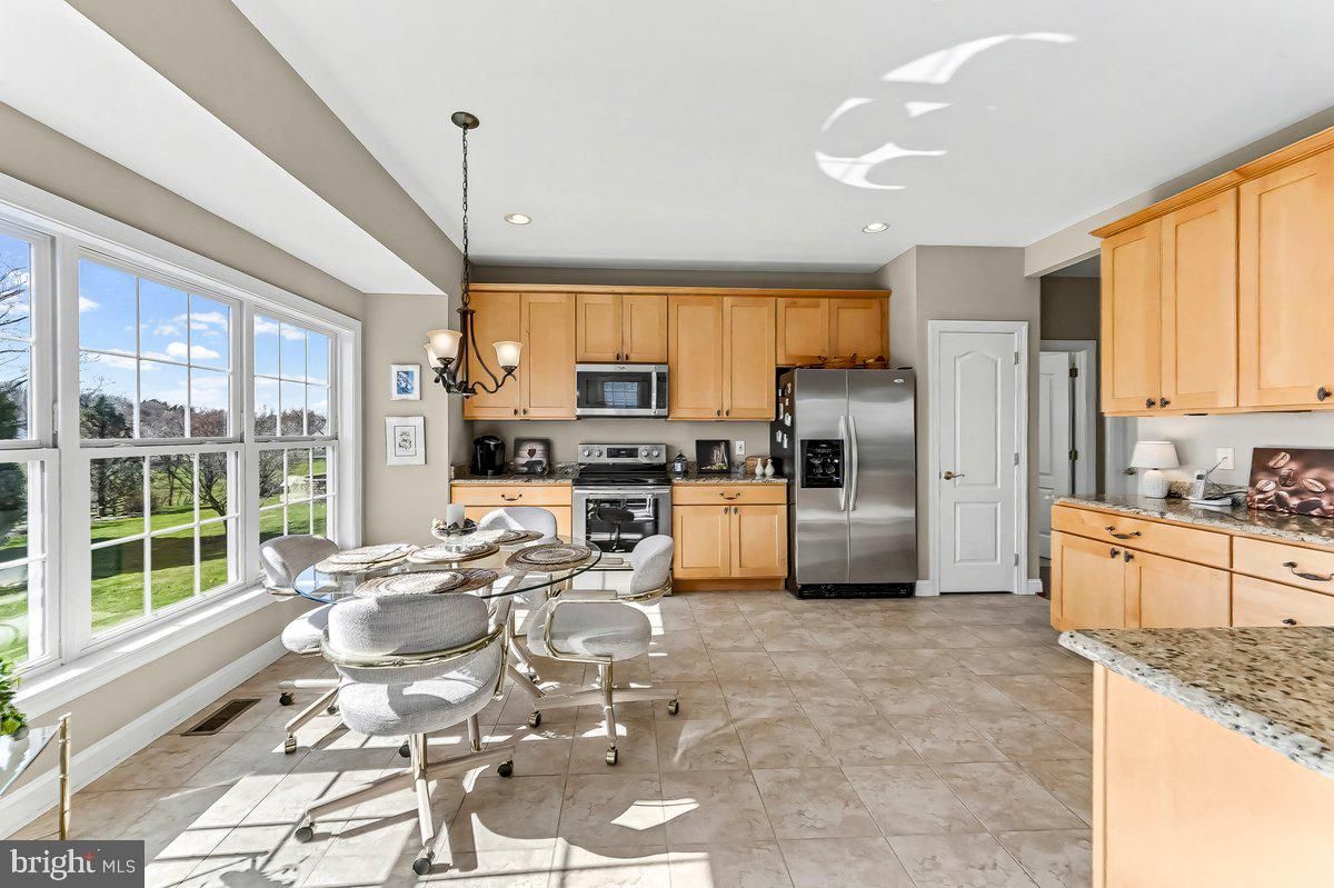 Enjoy effortless, low-maintenance living in this beautifully maintained cul-de-sac street 3 Bedroom 2.5 Bath home featuring open Chester County countryside views and a pine tree lined backdrop that offers rare privacy within the sought after 55+ community of Traditions at Inniscrone. This home offers a premium setting not often found within an active adult community as the house has been thoughtfully positioned to provide a true sense of privacy from neighboring properties. Inside, the home is light, bright, and open, with vaulted ceilings and expansive windows that allow warm natural sunlight to pour in throughout the day, creating an inviting and warm atmosphere. The welcoming foyer with crown molding and hardwood floors opens to formal living room on the left and the formal dining room that is accented by decorative pillars and an upgraded lighting. The spacious vaulted family room with gas fireplace and ceiling fan opens to the fabulous eat in kitchen featuring maple cabinetry, granite countertops, ceramic tile flooring, stainless steel appliances, an undermount sink, and pantry closet. The rear windows frame the views and enhance the open feel of the main living space and the sliding doors lead to the composite deck with vinyl railing and retractable awning, offering a comfortable outdoor retreat to entertain family and friends or enjoy your morning coffee or afternoon BBQ. The first floor primary suite provides convenient main level living with vaulted ceilings, ceiling fan, walk-in closet with organizer, an additional double closet space, and an en-suite bath featuring a raised-height double vanity, soaking tub, decorative ceramic tile backsplash and shower. There is a powder room, coat closet, and laundry room with ceramic tile flooring and utility sink also on the main level. Upstairs, a generous sized loft offers flexible space for a home office or additional living area, along with two spacious bedrooms with double closets and a full bath with a new shower insert (2024), ceramic tile, maple cabinetry, and linen closet. The finished daylight walk-out basement includes recessed lighting, a bar area, a new slider installed in 2024, and a large unfinished section providing abundant storage or future finishing potential. This offers an additional 720 square feet of living space, making the total square footage over 3,400 square feet! Major updates include a new roof in 2019, new gas HVAC with upgraded humidifier in 2021, new hot water heater in 2024, and freshly painted first floor in 2024. Additional features include a two-car garage, extended driveway parking, and HOA services covering lawn care, snow removal, and access to the community clubhouse, pool, and social activities. This is one level living at its finest, offering space, upgrades, privacy, and value that is increasingly hard to find in a single family home in Chester County!