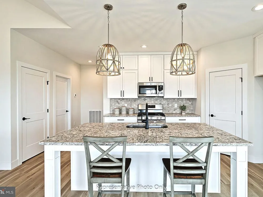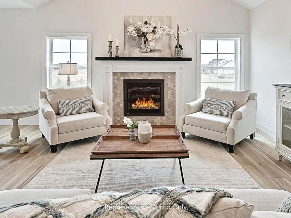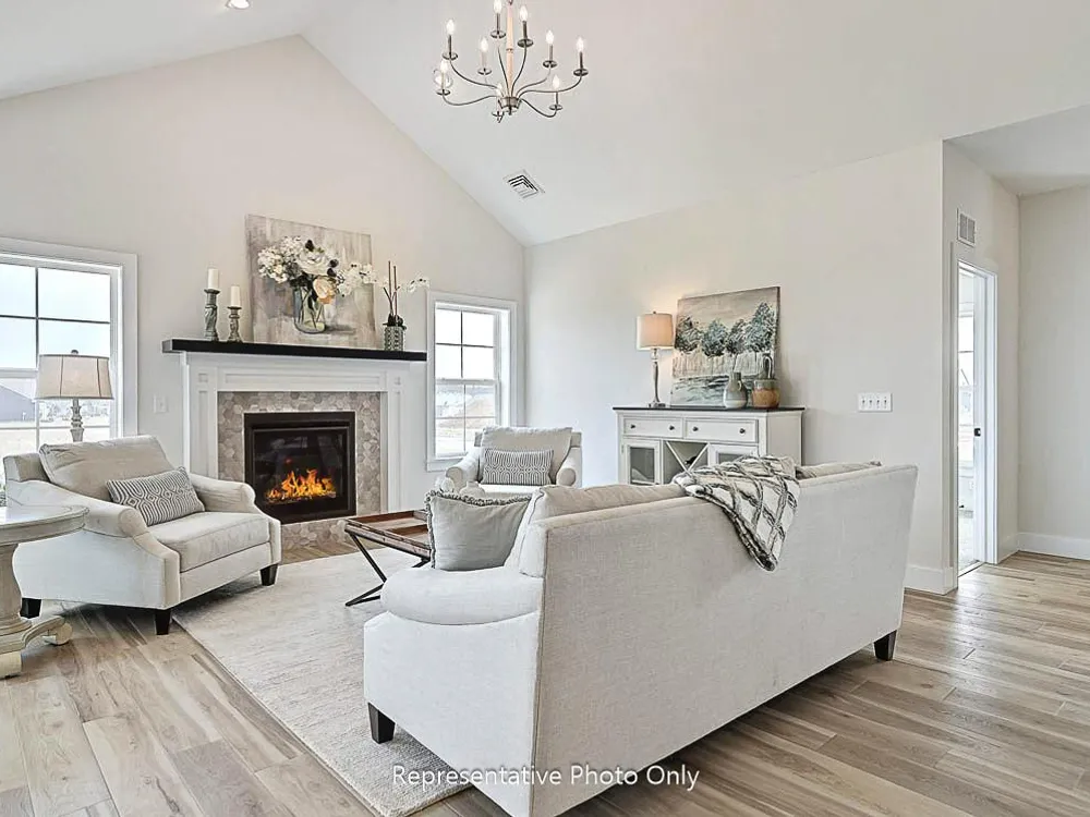 UNDER CONSTRUCTION – AVAILABLE THIS FALL: This charming 1-story home in our Winding Creek 55+ community includes a welcoming front porch, 9’ ceilings, and an unfinished bonus room on the 2nd level. The 2-car, rear-load garage opens to a mudroom complete with a built-in bench and large pantry. At the front of the home, there are 2 bedrooms and a full bathroom. Stylish vinyl plank flooring in the foyer extends throughout the main living areas. The living room boasts a cathedral ceiling and a cozy gas fireplace with floor to ceiling stone. The kitchen features stainless steel appliances, attractive cabinetry and quartz countertops with a tile backsplash. The sunny dining area provides sliding glass door access to the rear patio. Tucked quietly to the back of the home, the owner’s suite includes a private bathroom with a double bowl vanity, tile shower, and an oversized closet.
