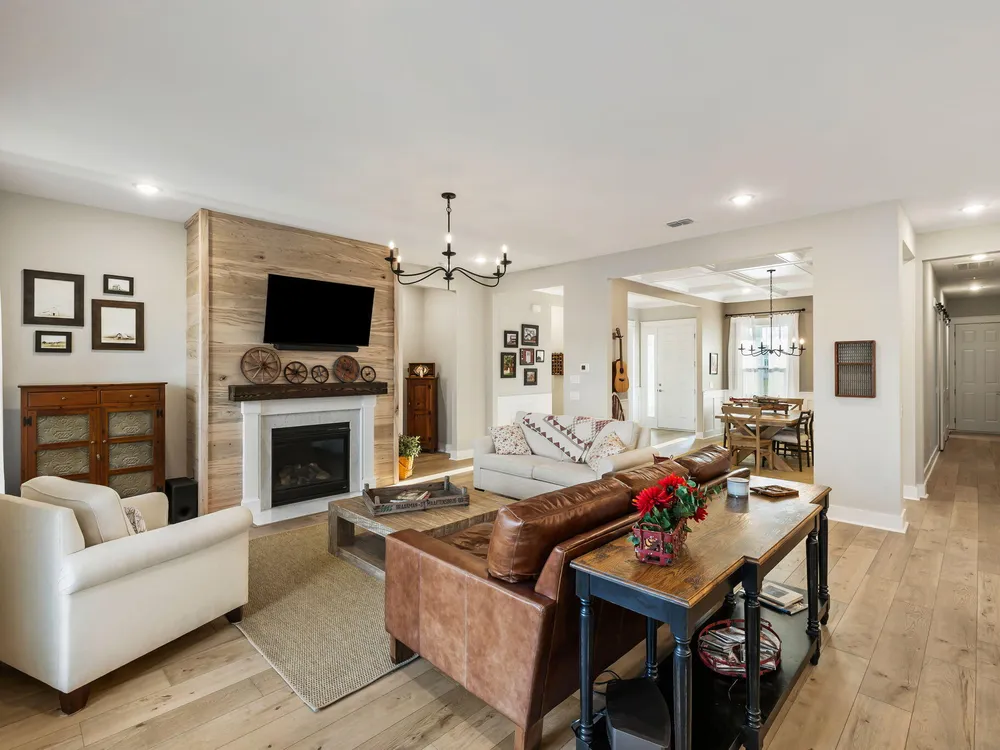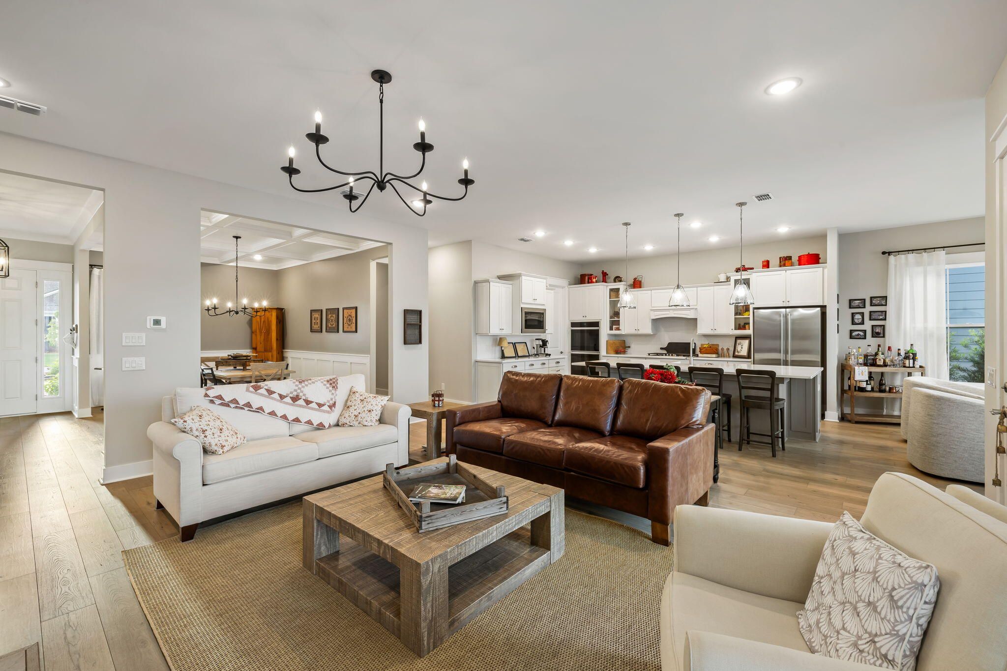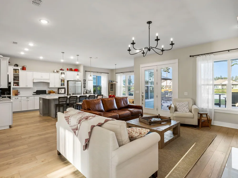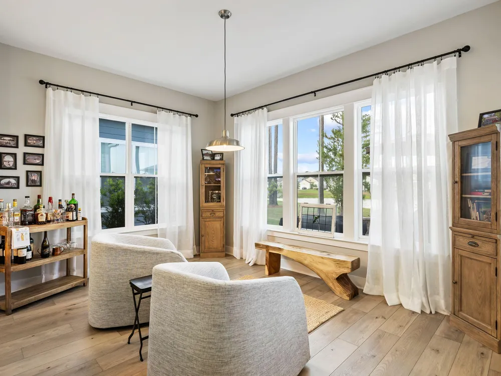 Welcome to 504 Marsh Cove Circle, a stunning single-story home in the prestigious 55+ community of Four Seasons at Lakes of Cane Bay. Positioned on a beautifully landscaped .2-acre lot with peaceful pond views, this 2-bedroom, 2.5-bathroom home offers 2,490 square feet of thoughtfully upgraded living space and an easy, open-concept layout perfect for both everyday living and entertaining.From the moment you arrive, you'll notice the custom details that set this home apart. The exterior features elegant stone facing and paver walkways lining both sides of the driveway, while the backyard features a spacious 20' x 30' paver patio surrounded by professional landscaping, including flowering shrubs, mature trees, custom lighting, and decorative stone accents.Inside, upgrades continue with a custom stone wall in the office, wood-framed fireplace with a mantle in the family room, coffered ceiling in the dining room, and picture-frame molding in the owner's suite. Additional touches include fresh paint in both the dining room and primary bedroom, two solid wood barn doors on the laundry room and hall closet, and added shelving in the hallway for extra storage. The kitchen is a true standout, equipped with high-end GE Monogram appliances and a large island perfect for gathering and meal prep. The layout is spacious and functional, with all three bedrooms on one level, a cozy fireplace in the living area, and pond views from the back patio that invite outdoor relaxation. An attached two-car garage adds everyday convenience. Living in Four Seasons means enjoying access to an exceptional lineup of amenities, including a lakeside clubhouse, indoor and outdoor pools, fitness centers, trails, courts for tennis and pickleball, social spaces, and moreall within a secure, gated setting. Lawn care, landscaping, and common area maintenance are included, along with a lifestyle team to coordinate events and activities year-round. With its designer upgrades, open floor plan, and unbeatable community features, 504 Marsh Cove Circle offers luxury, comfort, and connectionall in one place.