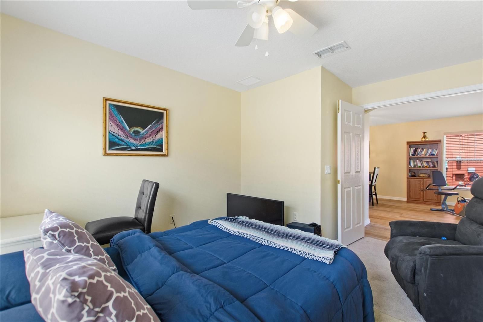 Home in Solivita – Venezia Neighborhood Located on a quiet cul-de-sac, this beautifully maintained single-family home offers 2 bedrooms, 2 baths, and a versatile den. Features include a new roof installed 2023, new Luxury Vinyl plank floors, and fresh interior paint. The open floor plan includes an eating space in the kitchen, ceiling fans, and an inside laundry room. The master suite features a walk-in closet and a stand-up shower. Additional upgrades include a whole-home water filtration system. Seller is offering the buyer a $1,000 credit for carpet upgrades. Enjoy the award-winning Solivita lifestyle with amenities such as two 18-hole golf courses, two state-of-the-art fitness centers with qualified trainers and group classes, art studios, tennis, pickleball, and shuffleboard. The HOA covers security, lawn care, irrigation, cable TV, and internet, providing convenience and peace of mind. Move-in ready—come experience resort-style living in this vibrant 55+ community!
