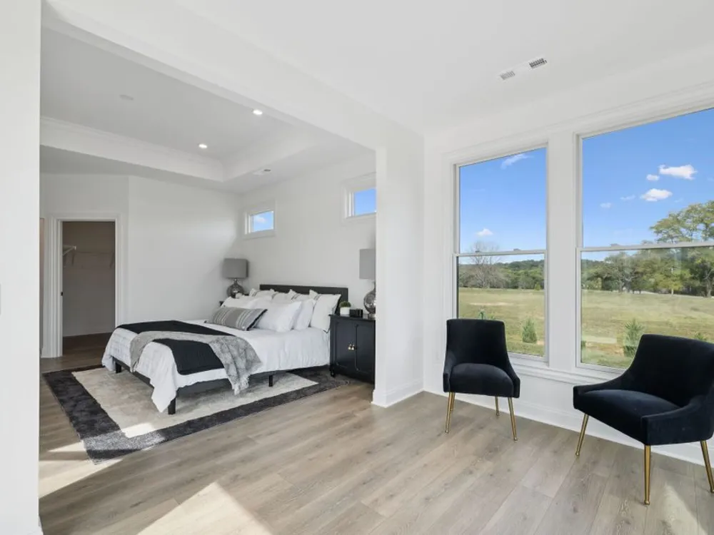 Welcome to the Courtyards at Stewarts Creek where we build homes with you in mind. Come be among the first to call Stewarts Creek home. This Portico is a ranch style home with a bonus suite on the second floor. The kitchen is centrally located between the living and dining area to ensure you don't miss a thing during family gatherings. This Quick Move In home has been upgraded with a Deluxe kitchen, featuring matte black stainless steel GE appliances, including a double oven and Quartz countertops. The owner's suite sits at the back of the home with a zero step shower in the owners bathroom giving you that spa like feeling. From the master bedroom you can access your private courtyard from the sitting room, accessible through a 6' sliding glass door. One of the features of this home, is that almost every room in the home has a view of the private courtyard, your own personal oasis just waiting to be made yours. The home backs to an open green space with complete privacy from your neighbors. At The Courtyards at Stewarts Creek we do all the heavy lifting, which is why our homes are designed for low maintenance, lock and leave lifestyles. Come see why our customers love the Epcon Lifestyle!