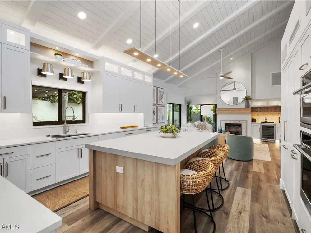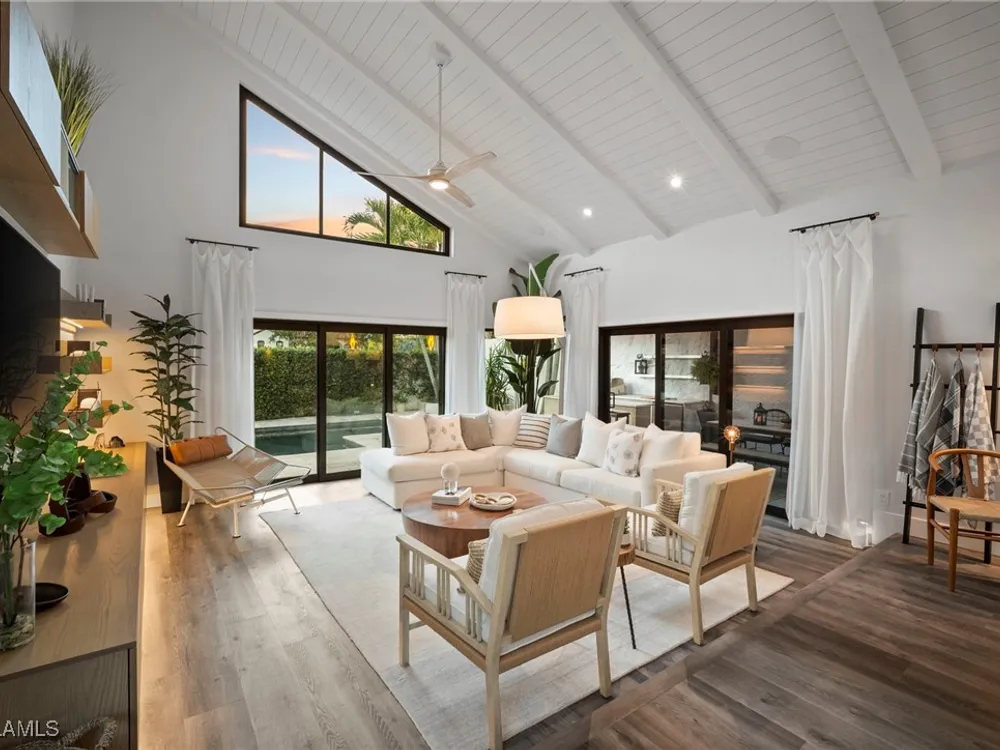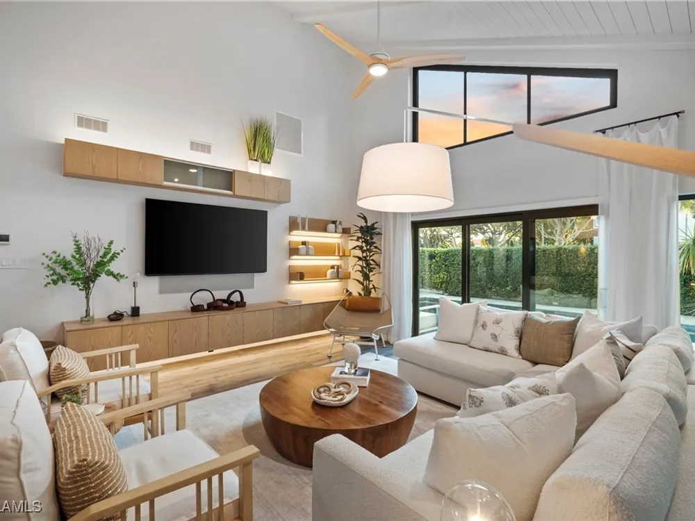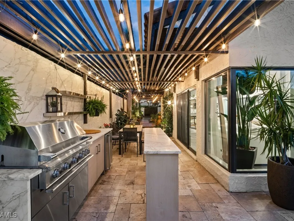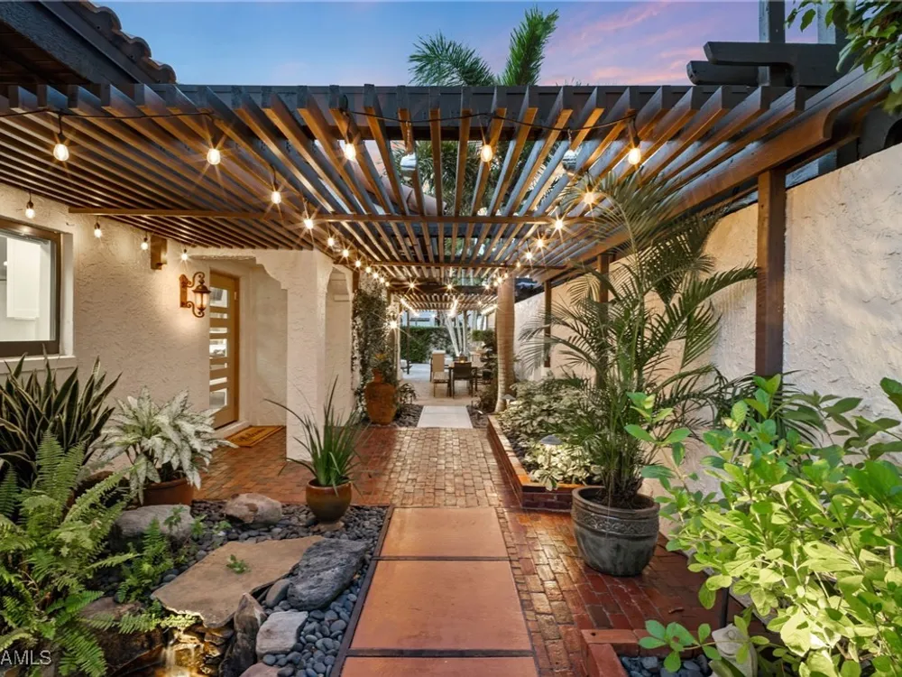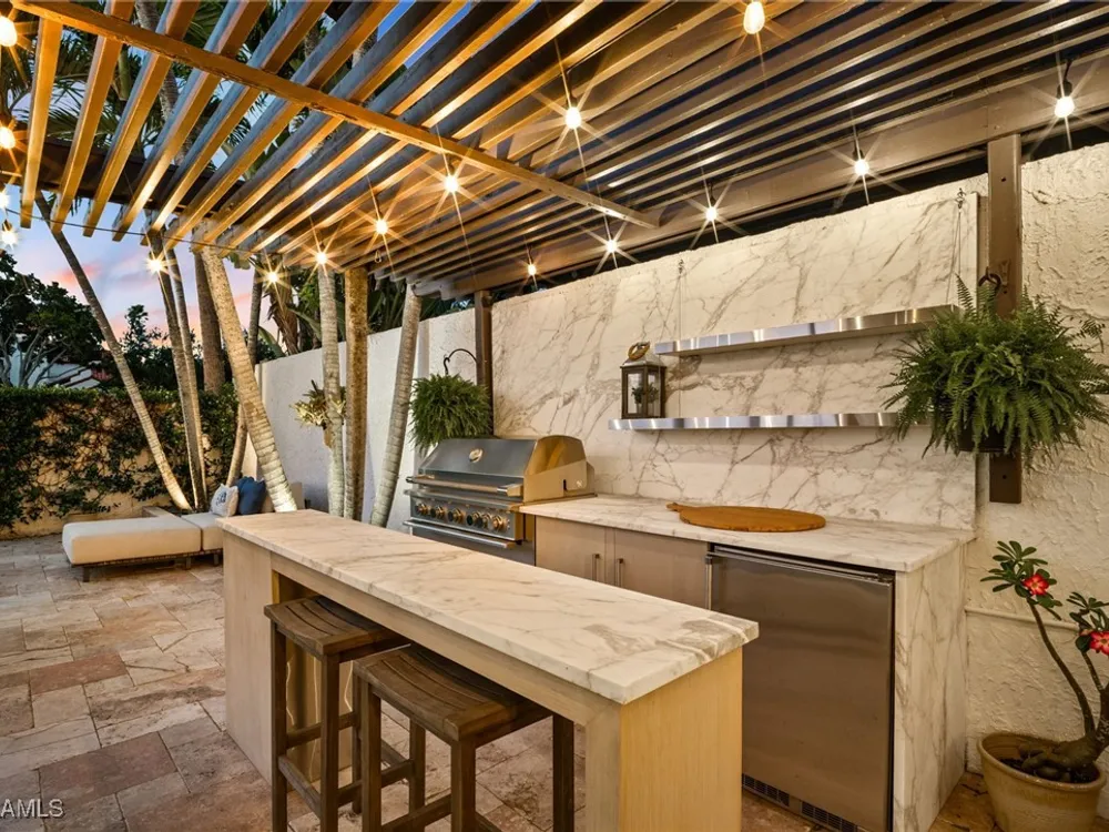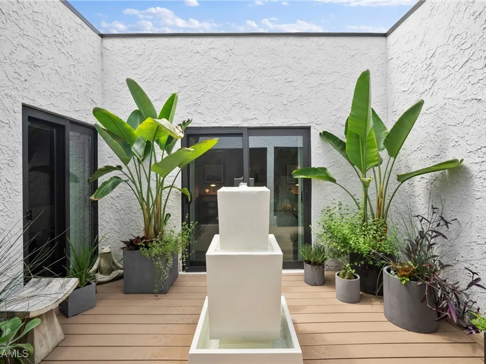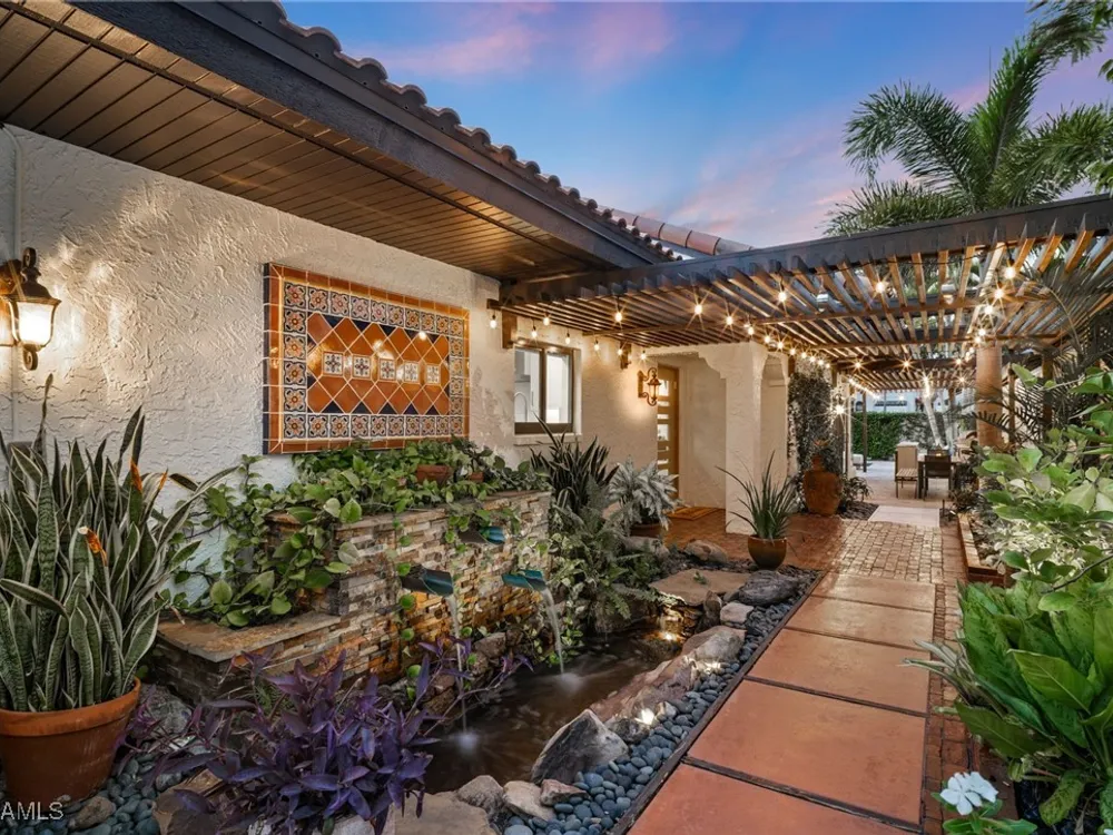 This exceptional, award-winning villa has undergone a complete, million-dollar transformation, seamlessly blending timeless charm with contemporary, luxury. Meticulously redesigned and remodeled by Bennett Design Group of Naples, every inch of this home exudes thoughtful design, quality, comfort, and coastal sophistication—perfectly suited for relaxed living in the heart of Naples. Beyond the private courtyard gate, a tropical oasis awaits. A serene water feature welcomes you into a lushly landscaped courtyard that serves as the heart of the home, complete with a newly installed outdoor kitchen, multiple entertaining areas, and a heated saltwater pool—capturing the true essence of Florida outdoor living. Boasting impeccable craftsmanship, custom finishes, and high-end details throughout, this residence truly stands apart. Inside, the home offers 3 bedrooms plus a den, 2.5 baths, and a spacious two-car garage. Vaulted, beamed ceilings, large windows and sliders, and an open layout welcome in the natural light. A unique interior atrium with a new fountain and a cozy fireplace adds a distinctive architectural touch. An expansive new kitchen opens to the casual den with multiple rooms having access to the courtyard. The home features all-new systems for peace of mind and investment confidence: new HVAC systems, a new water heater, new Halo water filtration system, new plumbing and piping, a new pool pump and heater, impact windows, sliders and doors and new automatic window treatments for modern convenience. Located in the highly desirable neighborhood of Tierra Mar within Pelican Bay, this home offers an unmatched lifestyle. You’re just a short walk to Artis–Naples, Waterside Shops, and pristine beach access close-by. Pelican Bay residents enjoy exclusive amenities, including private beachfront restaurants, beach services, tennis, fitness center, new pickleball courts, sailing, kayaking, canoes, beach trams, spa and wellness services, and a vibrant community center. Ideally located in X-500 flood zone with low HOA fees, this home is offered turnkey, with designer furnishings and accessories. This one-of-a-kind, move-in-ready villa presents a rare opportunity to enjoy luxury coastal living at its finest.