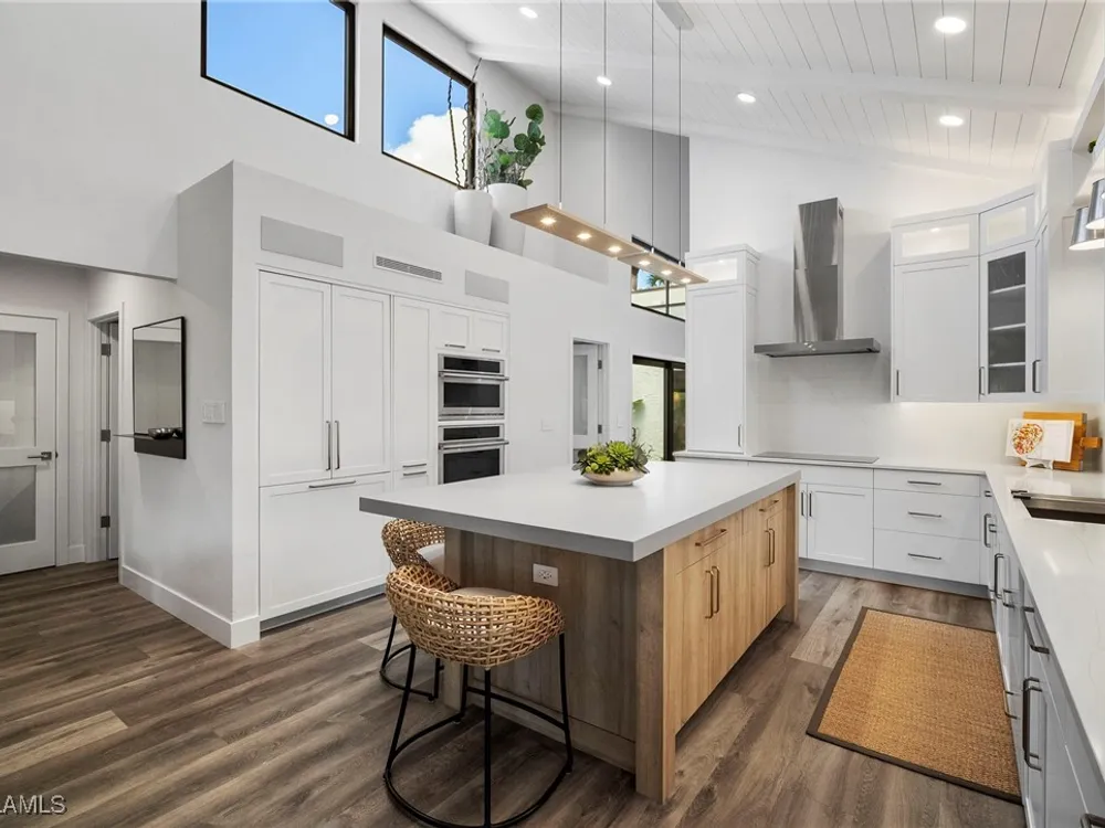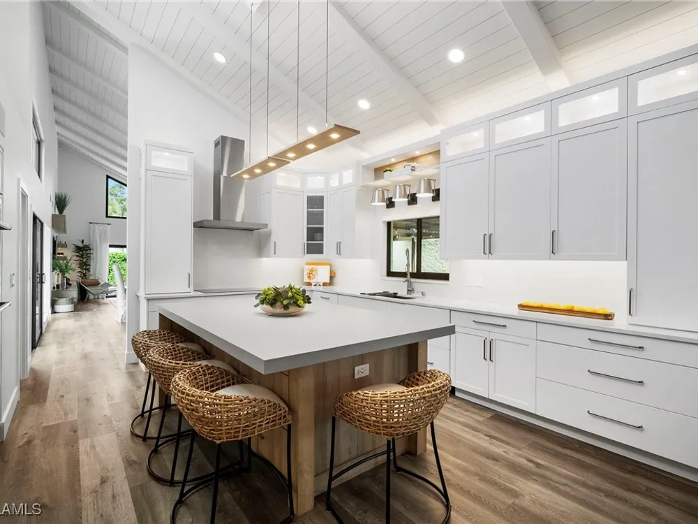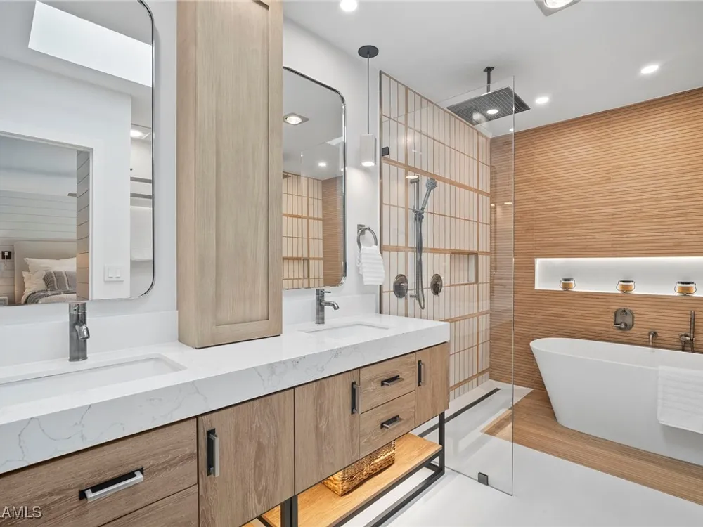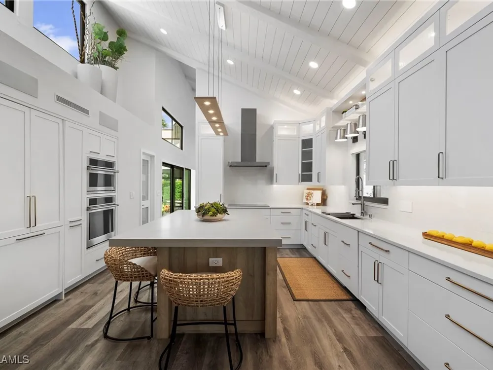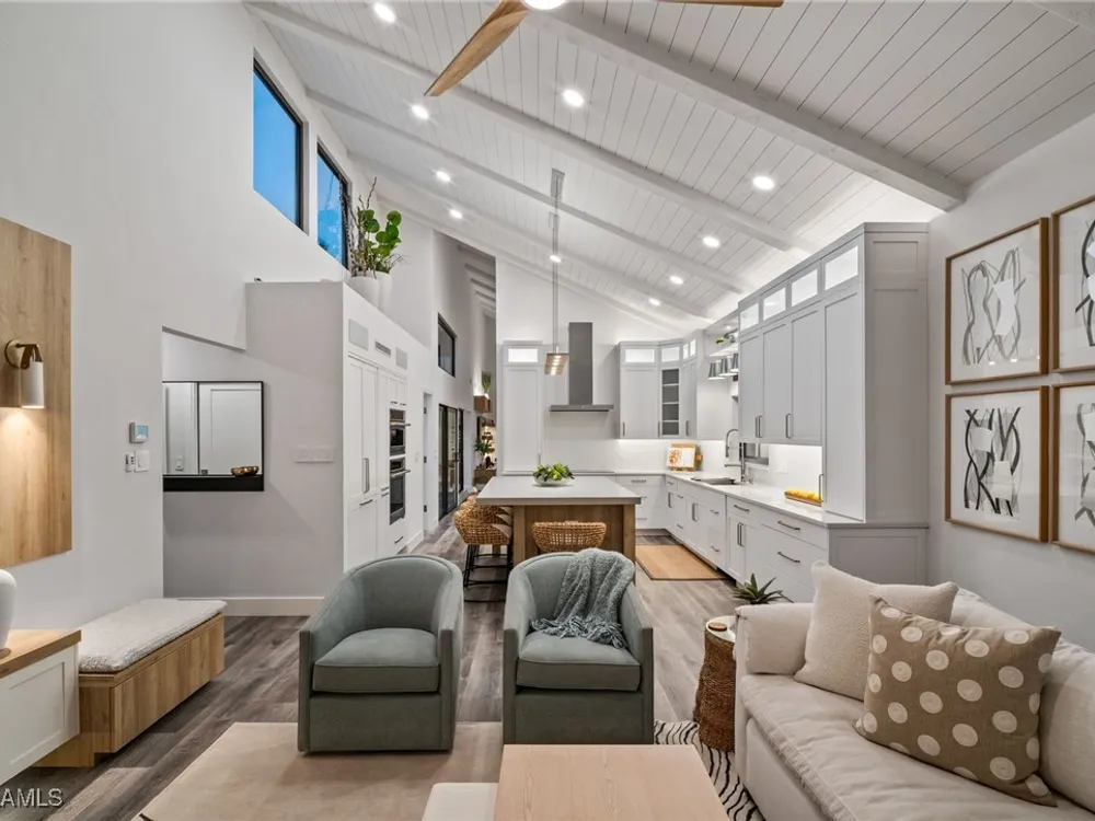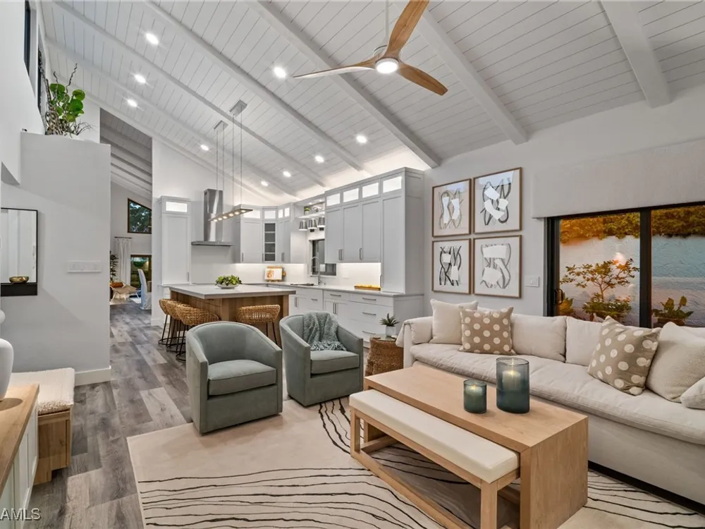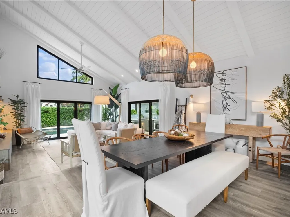 This exceptional, award-winning villa has undergone a complete, million-dollar transformation, seamlessly blending timeless charm with contemporary, luxury. Meticulously redesigned and remodeled by Bennett Design Group of Naples, every inch of this home exudes thoughtful design, quality, comfort, and coastal sophistication—perfectly suited for relaxed living in the heart of Naples. Beyond the private courtyard gate, a tropical oasis awaits. A serene water feature welcomes you into a lushly landscaped courtyard that serves as the heart of the home, complete with a newly installed outdoor kitchen, multiple entertaining areas, and a heated saltwater pool—capturing the true essence of Florida outdoor living. Boasting impeccable craftsmanship, custom finishes, and high-end details throughout, this residence truly stands apart. Inside, the home offers 3 bedrooms plus a den, 2.5 baths, and a spacious two-car garage. Vaulted, beamed ceilings, large windows and sliders, and an open layout welcome in the natural light. A unique interior atrium with a new fountain and a cozy fireplace adds a distinctive architectural touch. An expansive new kitchen opens to the casual den with multiple rooms having access to the courtyard. The home features all-new systems for peace of mind and investment confidence: new HVAC systems, a new water heater, new Halo water filtration system, new plumbing and piping, a new pool pump and heater, impact windows, sliders and doors and new automatic window treatments for modern convenience. Located in the highly desirable neighborhood of Tierra Mar within Pelican Bay, this home offers an unmatched lifestyle. You’re just a short walk to Artis–Naples, Waterside Shops, and pristine beach access close-by. Pelican Bay residents enjoy exclusive amenities, including private beachfront restaurants, beach services, tennis, fitness center, new pickleball courts, sailing, kayaking, canoes, beach trams, spa and wellness services, and a vibrant community center. Ideally located in X-500 flood zone with low HOA fees, this home is offered turnkey, with designer furnishings and accessories. This one-of-a-kind, move-in-ready villa presents a rare opportunity to enjoy luxury coastal living at its finest.