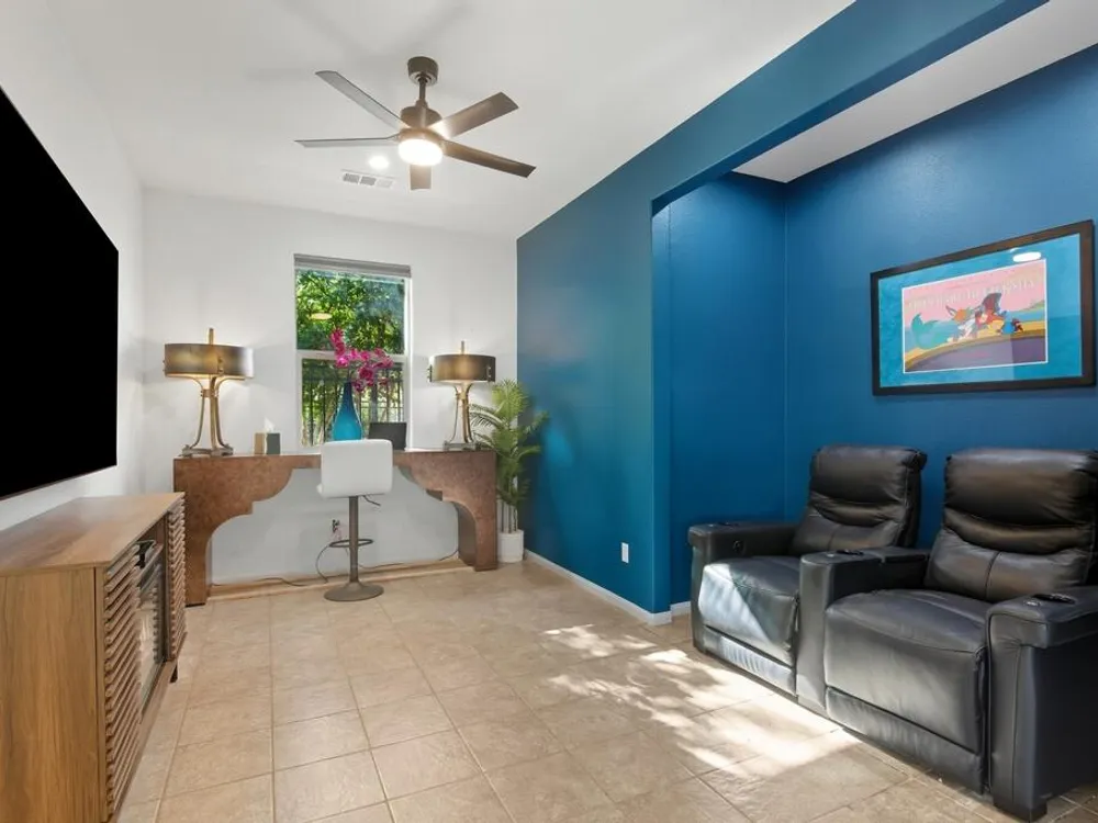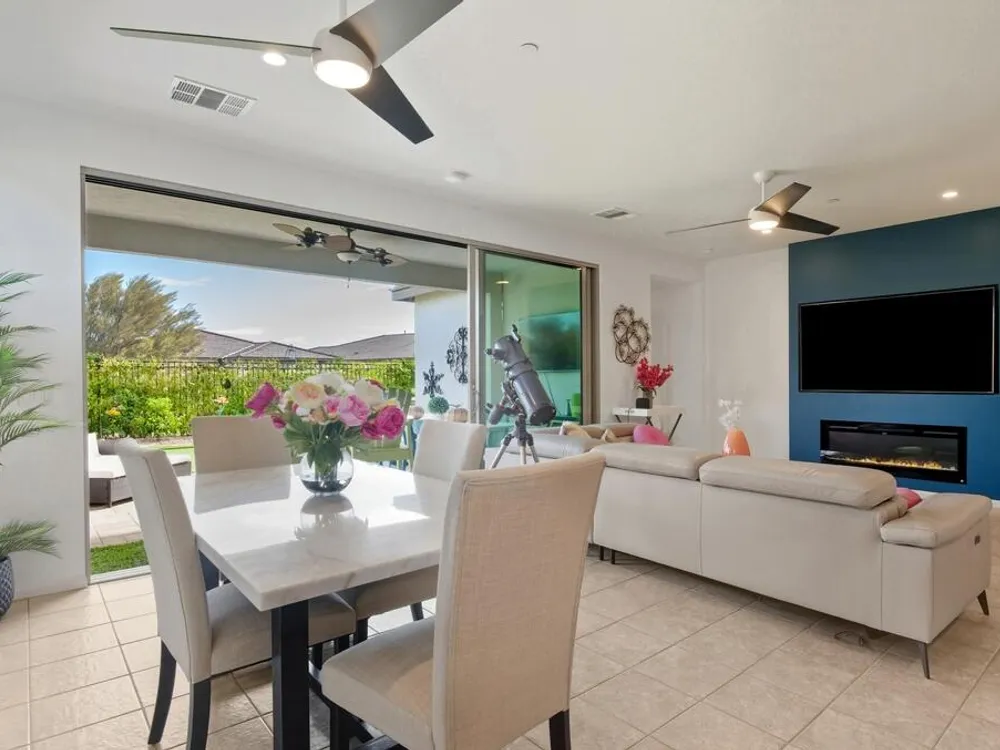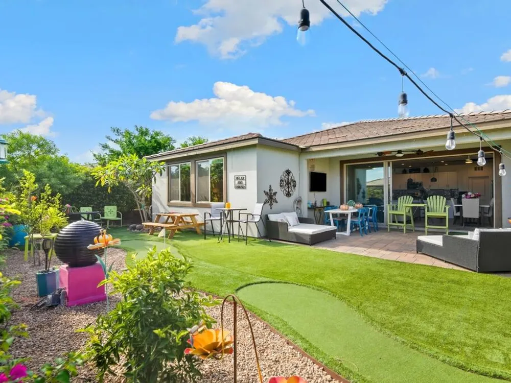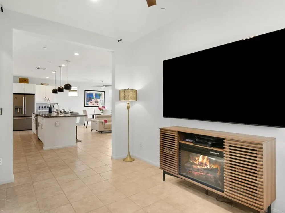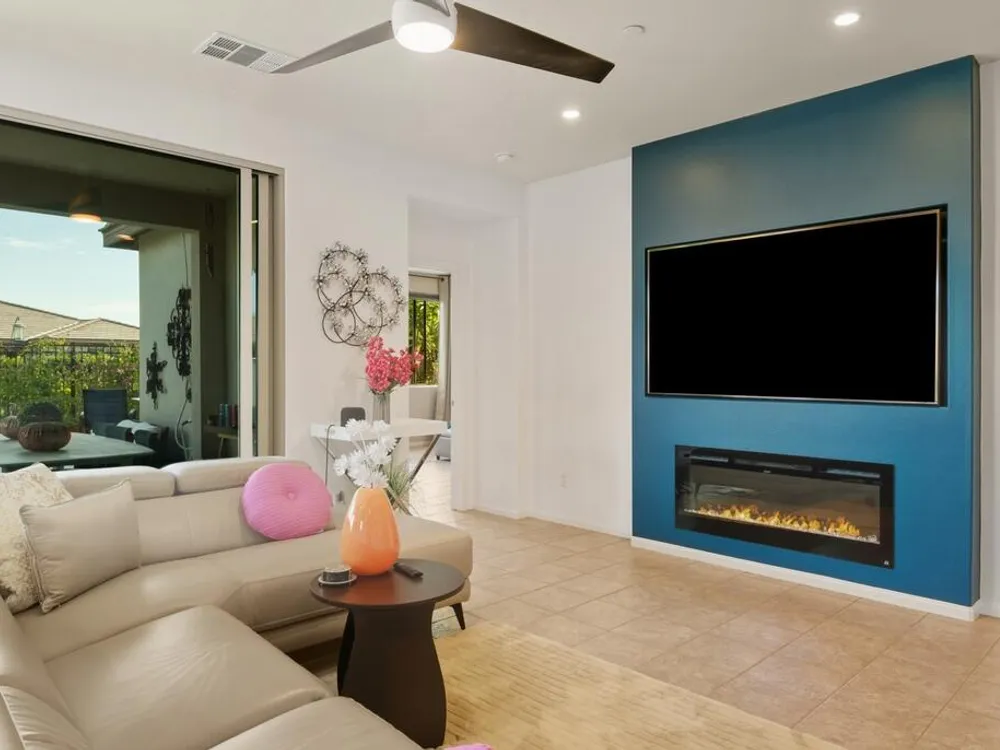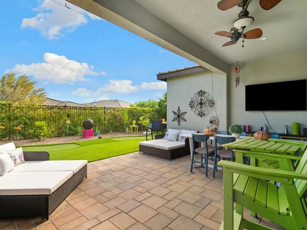 Gorgeous 3 bed, 2.5 bath home located in the highly desirable Trilogy at the Polo Club gated community! Offering great curb appeal with upgraded entryway lighting and pavers leading to a cozy porch and new glass front door, both of which provide stunning west facing mountain views. The home provides 1,847 Sq Ft of living space, sitting on a 6,395 Sq Ft double-sided premium lot with corner yard! The interior features a spacious and open floor plan with high ceilings, designer lighting and tile flooring throughout the home. The living room has a fireplace with a feature wall, and a full wall sliding glass door. The kitchen offers a large center island with bar seating, stainless steel appliances, and upgraded cabinets. There are 2 generously sized Primary Suites, each with a private ensuite. The additional 3rd room is currently being used as a media room but provides the new owners with versatile options and an added half bathroom across the hall for guests! Enjoy the entertainer's backyard with two putting holes that light up at night, a covered extended paver patio, and lush landscaping. This private yard has walking trails behind the home with mountain and garden views and is the perfect space for relaxing, sky-gazing or entertaining! This exceptional home also comes with leased solar, an extended garage with epoxy floors and its own A/C system and...... a Transferrable Polo Club Membership!!!!!! The community offers a full array of Resort-like community amenities including a restaurant, pools, spas, state-of- the-art fitness center, tennis courts, pickleball, endless activities, walking trails and so much more! This like new home is ready to be made yours, schedule your private tour today!