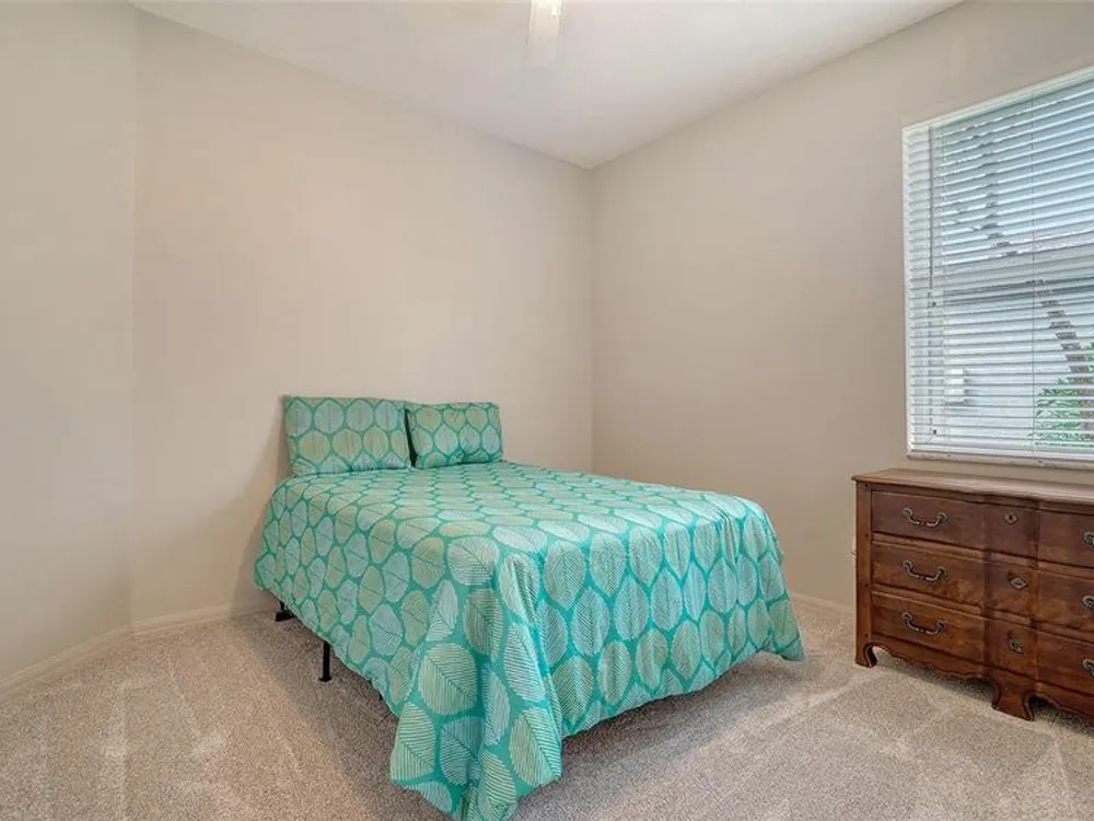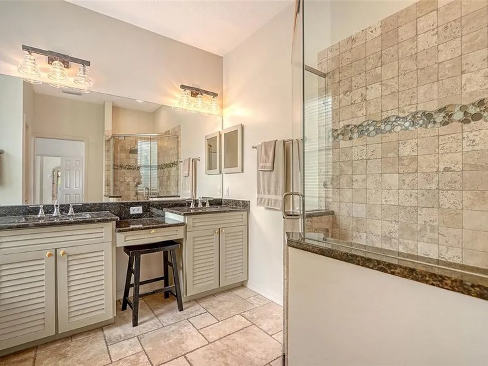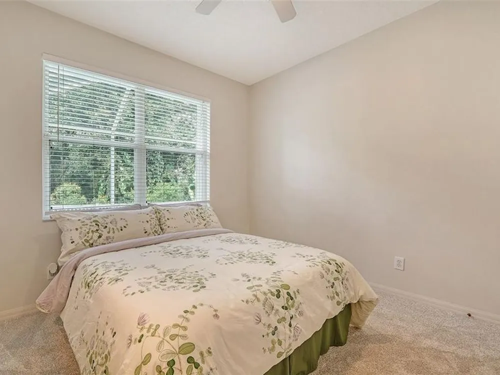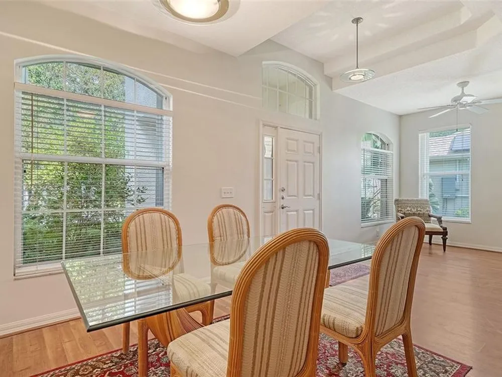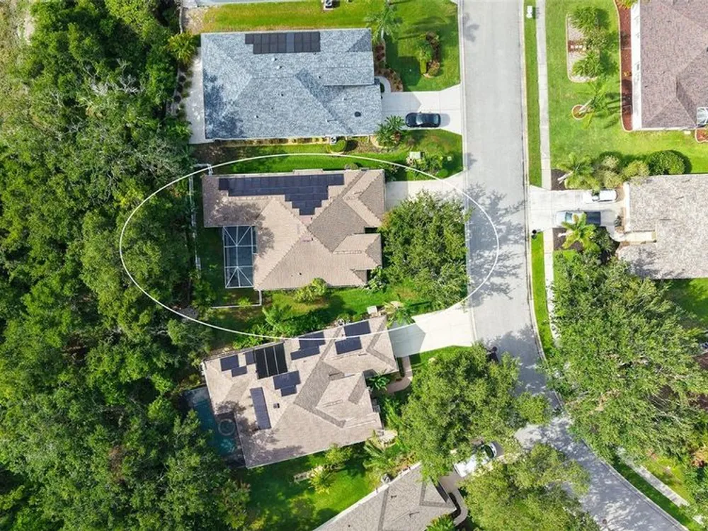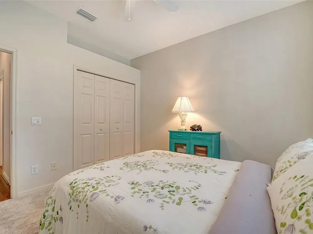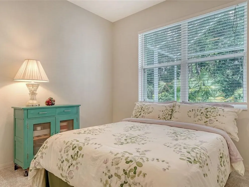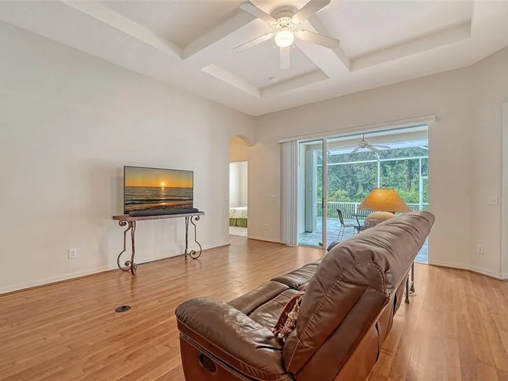 Welcome to 5044 Creekside Trail, in the desirable Carlyle community of Palm Aire. This beautifully updated three-bedroom plus den home on a private preserve lot with a tranquil creek running just beyond the backyard, offering serenity and privacy. Enter to discover an open and spacious floor plan filled with natural light and several updates. A newer roof (2020), HVAC system (2020), and energy-efficient solar panels (2020) keep monthly electric bills averaging just $30 a month. New carpets in both guest bedrooms (June 2025) and fresh interior painting—including walls, ceilings and baseboards (June 2025)—give the home a crisp, modern feel. Luxury laminate flooring flows throughout the main living areas. The kitchen features warm wood cabinetry, newer stainless steel appliances, and a casual dining nook, all open to the family room with sliding glass doors leading to an extended lanai—ideal for relaxing or entertaining family and guests. The primary suite, accessed through double doors, offers a spacious retreat with a walk-in closet and en-suite bath featuring dual sinks, a soaking tub and a separate walk-in shower. Enjoy working from home in the generous private den, thoughtfully enclosed by French doors for added privacy and a quiet, focused workspace. Other features include accordion rollout hurricane shutters on all exterior doors and windows, a fenced-in backyard, tray ceilings, lush tropical landscaping, including tall palms and mature vegetation, to complete the Florida lifestyle you've been dreaming of. Residents at Carlyle at The Villages of Palm-Aire enjoy low HOA fees, less than $90 per month, and no CDDs. Great amenities such as pickleball, tennis courts, a community pool, a playground, and option to join the Palm-Aire Country Club. Great location near UTC Mall, shopping, restaurants, Sarasota International Airport, and downtown Sarasota and the sugary beaches.