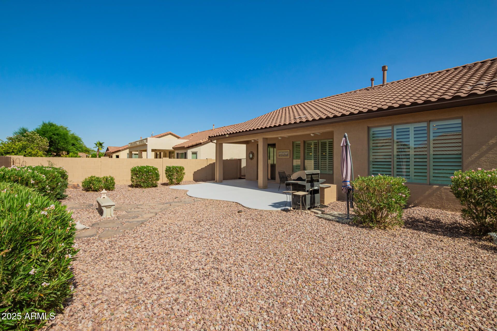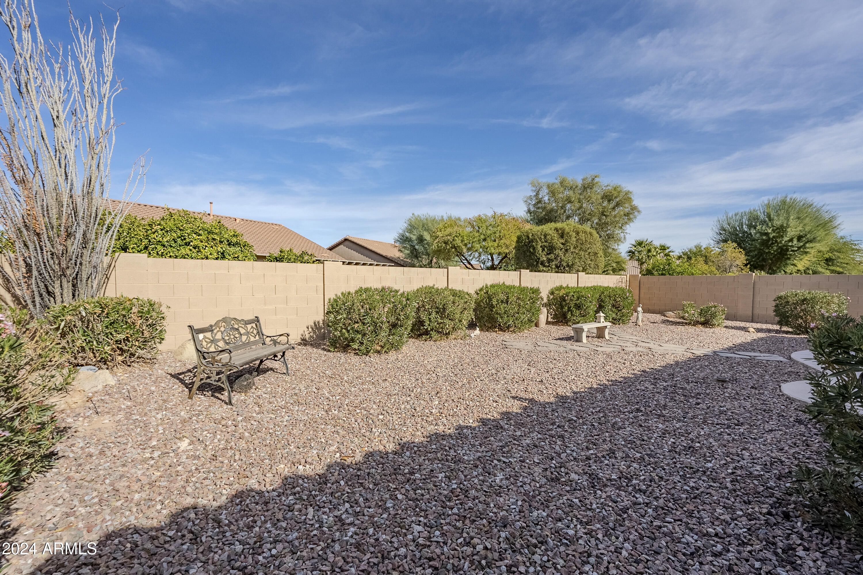 Partially Furnished Integra-block home with a 2 car garage with a 4 ft. extension. Take a look at this 2 bed, 2 bath home in Robson Ranch. Interior offers an open floor plan, fireplace, and neutral paint throughout. You'll love the gorgeous recently upgraded kitchen with its ample cabinetry, newer backsplash, pantry, granite countertops, and an island complete with a breakfast bar. The spacious primary bedroom includes a walk in closet. Step out back to a huge fully enclosed backyard with a large covered patio which is perfect for relaxing outdoors and room for a pool. HVAC was replaced in 2023. New carpet in both bedrooms.