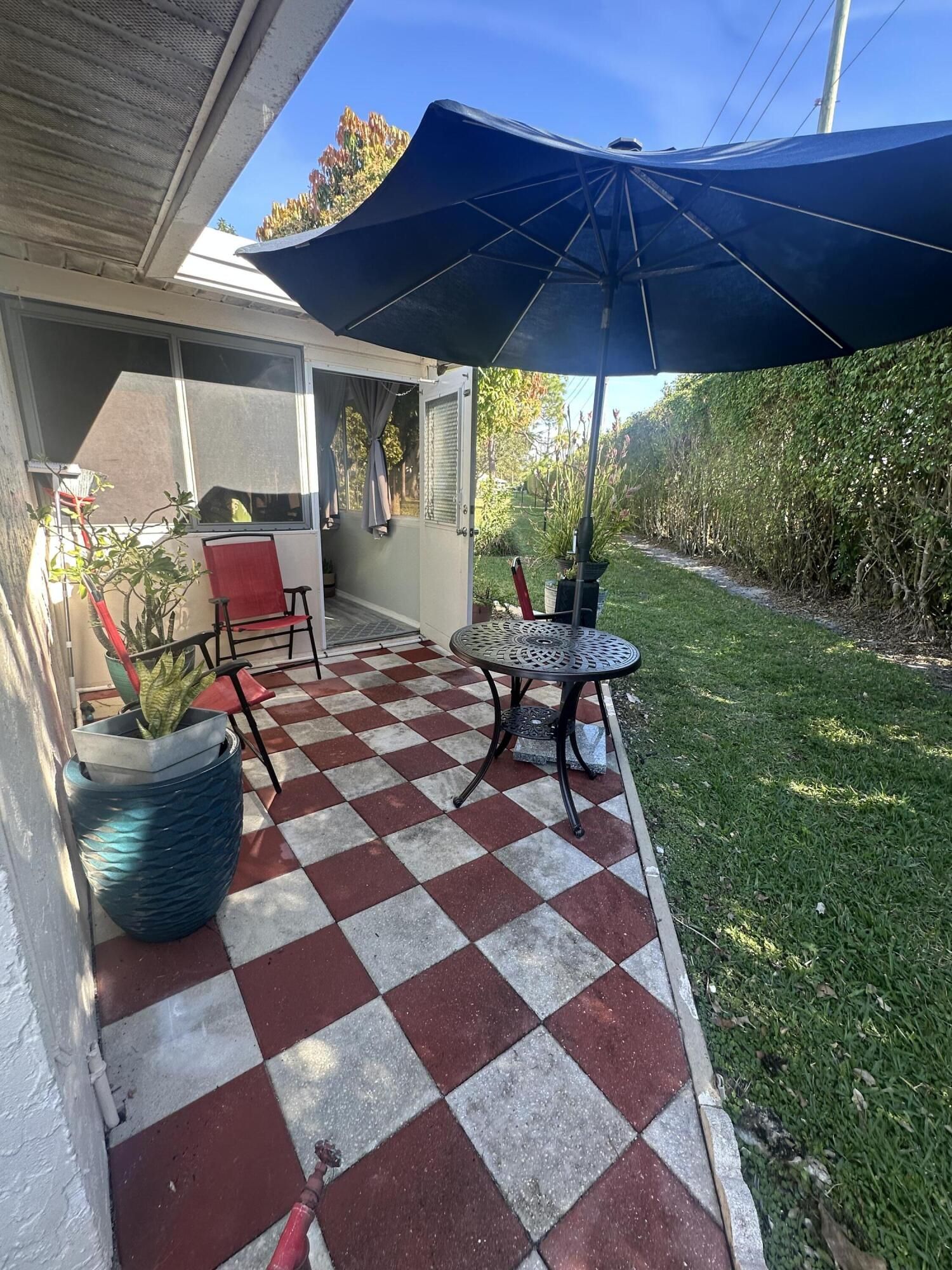 This beautiful 2-bedroom, 2-bathroom villa, features a large dining and living room. The kitchen has quartz countertops, stainless steel appliances, and a double oven. A nice year-round in the spacious screened-in porch, complete with a split AC unit, landscaped garden and backyard a true private patio. New roof installed in 2023 and a community that takes care of the details: water, cable, landscaping and irrigation. Great Club house amenities. Don't miss this opportunity to live in a 55+ community close to everything, in the middle of west palm beach.