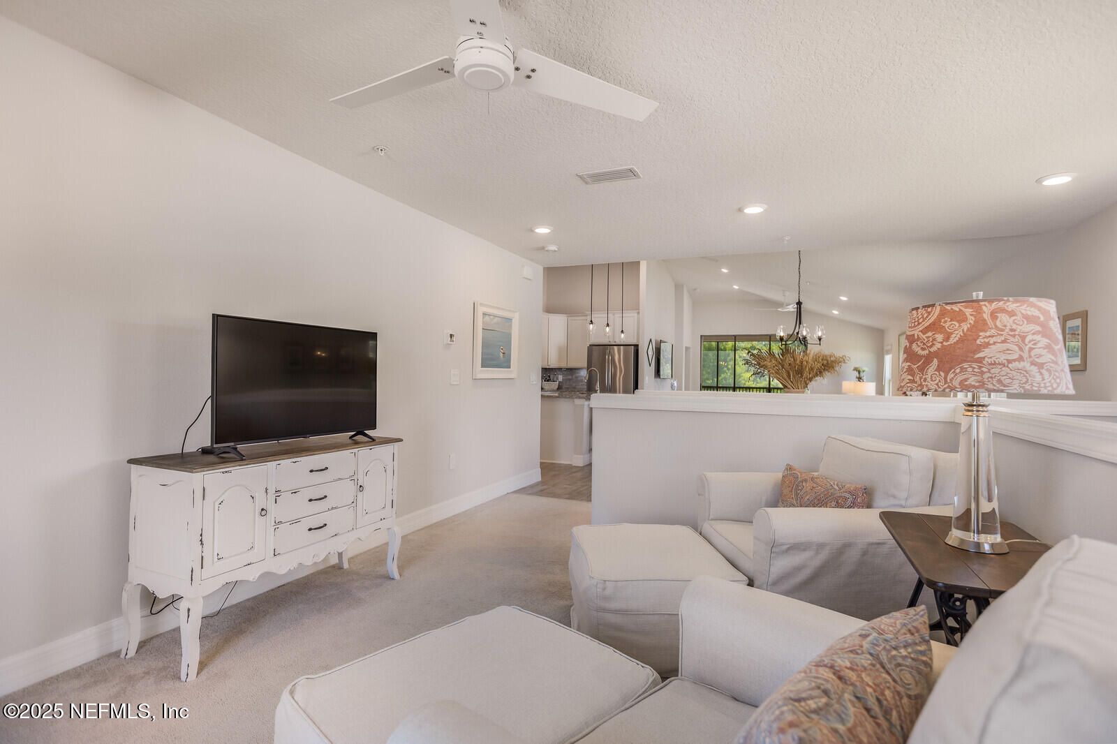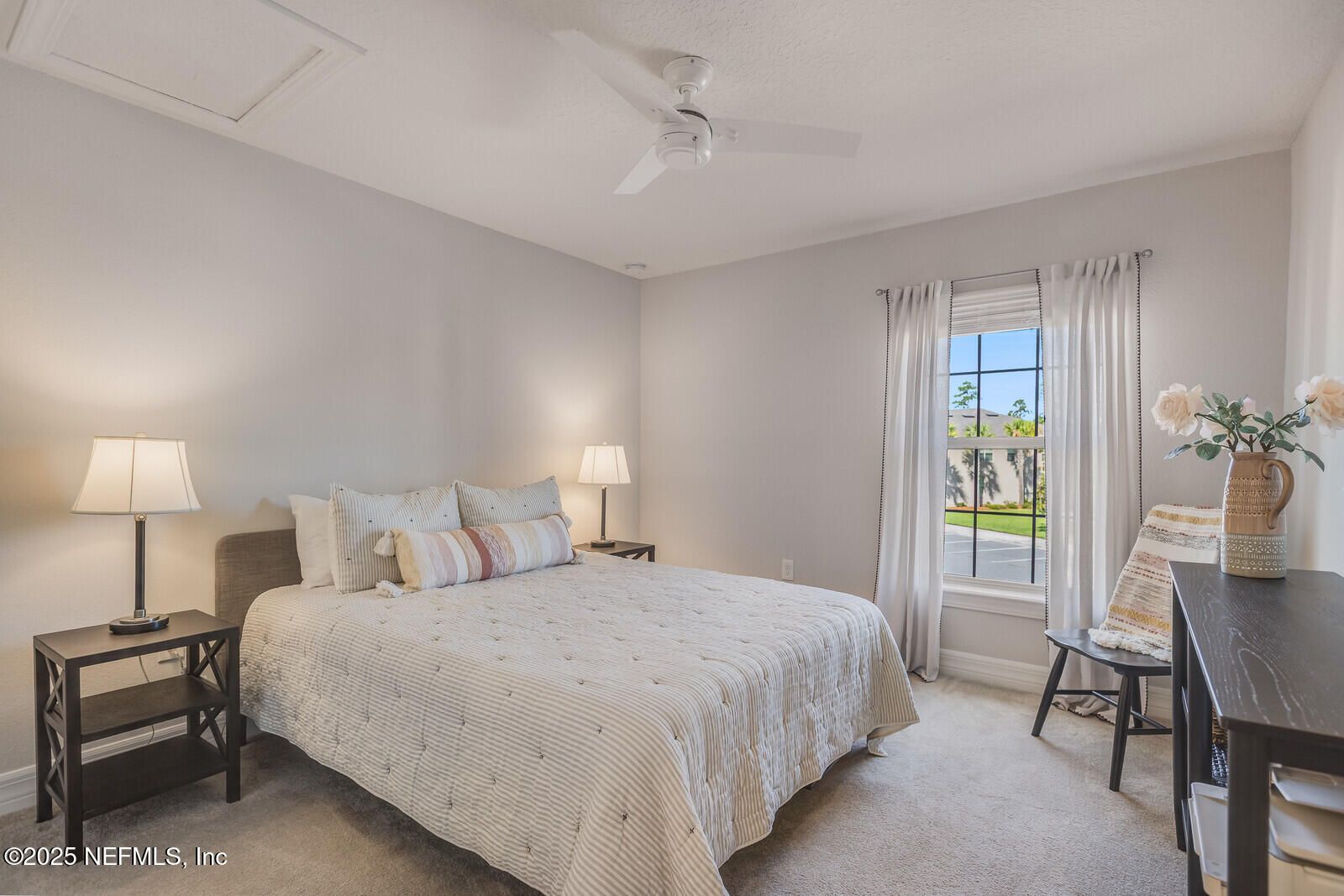 Experience the best of both worlds in this highly sought-after corner Spoonbill floor plan in the desirable 55+ community of Del Webb Ponte Vedra in Nocatee. Perfectly positioned for privacy, this spacious upstairs condo features a private garage and an open floor plan designed to capture breathtaking preserve and water views from almost every window. Step out onto the expansive screened balcony, where you can enjoy the tranquil scenery without the bother of no-see-ums on Florida cool evenings. Inside, a versatile flex room offers endless possibilities—ideal for a home office, cozy sitting area, library, or creative hobby space. Entertaining is made easy with extra driveway parking and the open floor plan flowing out to the balcony. As a resident of this gated community, you'll enjoy exclusive access to world-class amenities, including indoor and outdoor pools, pickleball, tennis, bocce ball, a fitness center, spa, performance stage, card rooms, billiards, gardening center, walking trails, and an active calendar of clubs and events. This is the Del Webb lifestyle you've been waiting foroffering both scenic serenity and vibrant community living in the heart of Nocatee. Don't forget that you also have access to the Nocatee waterparks and events. Mickler Beach and Historic St Augustine are just a short distance away. Come see for yourself why this home is the perfect blend of comfort, views, and communityyou won't want to leave.