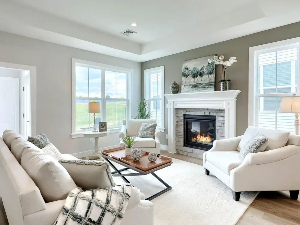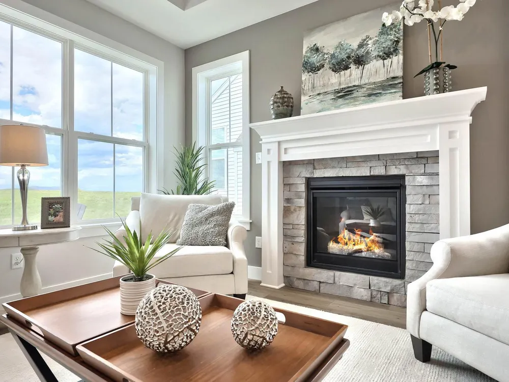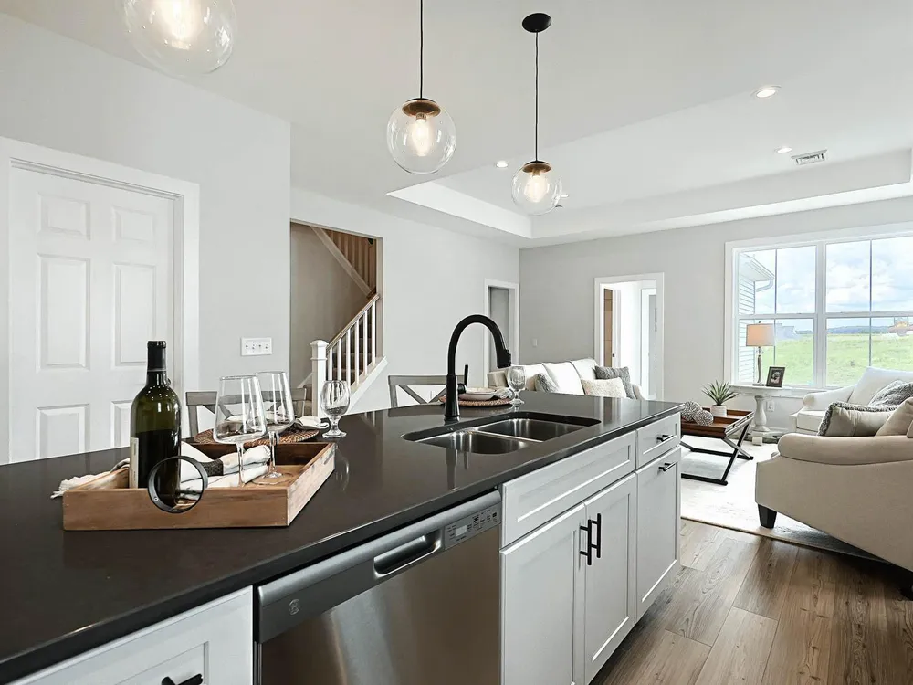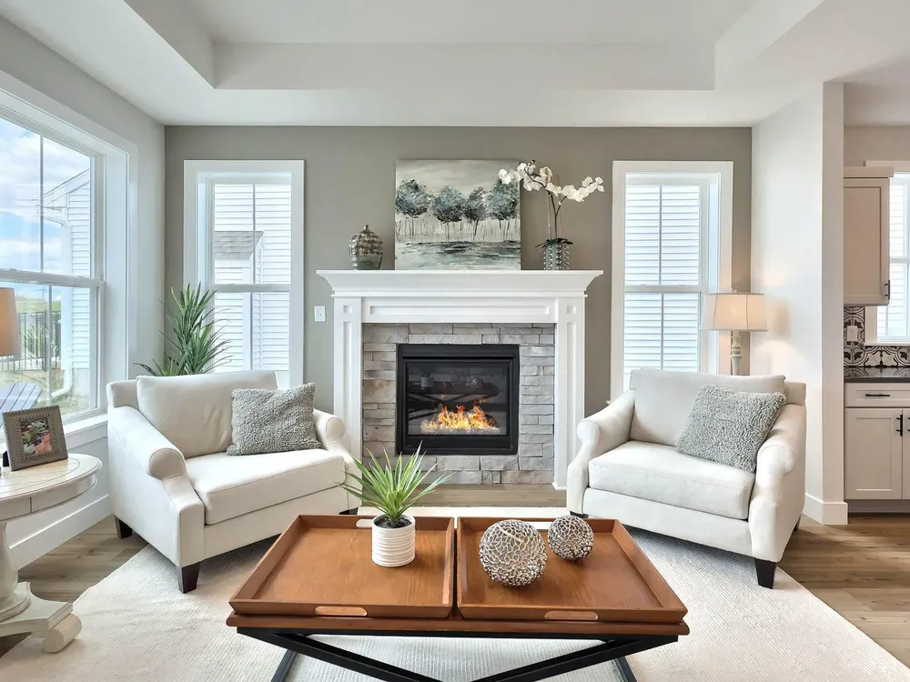 Landmark’s new duplex at Winding Creek 55+ is a thoughtfully designed 1-story home with 2 bedrooms, 2 full baths and a 2-car garage. The private side entry opens to the foyer and a formal dining room with a cathedral ceiling. The kitchen is well-equipped with stainless steel appliances, quartz countertops, a tile backsplash, and a large pantry. The great room, accented by a tray ceiling, is warmed by a gas fireplace with a stone surround. Both bedrooms are tucked quietly to the back of the home. The owner’s suite has an oversized closet and a private bathroom with a tile shower.