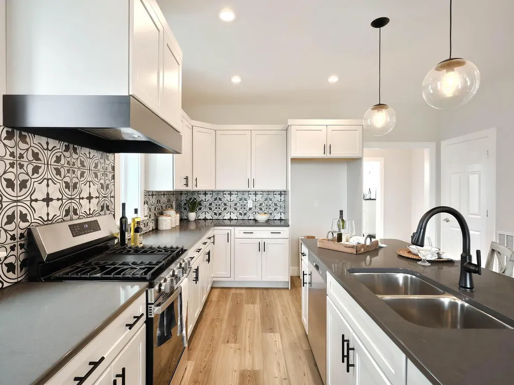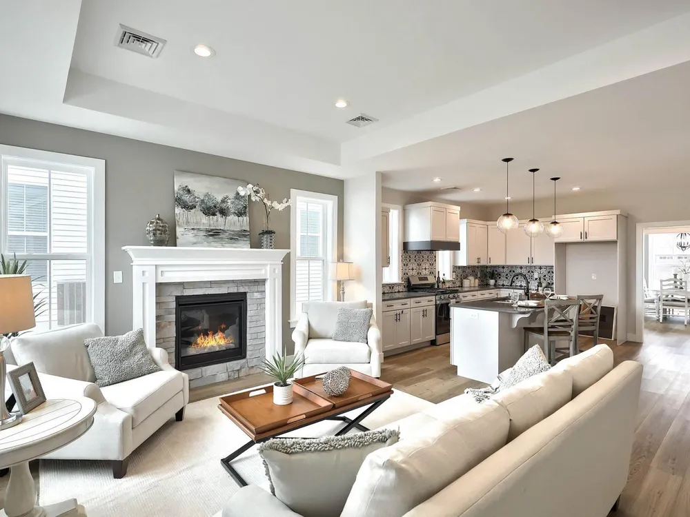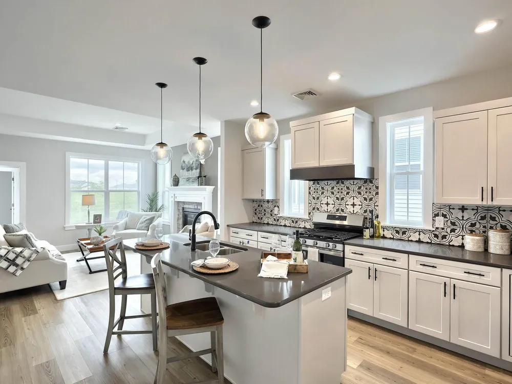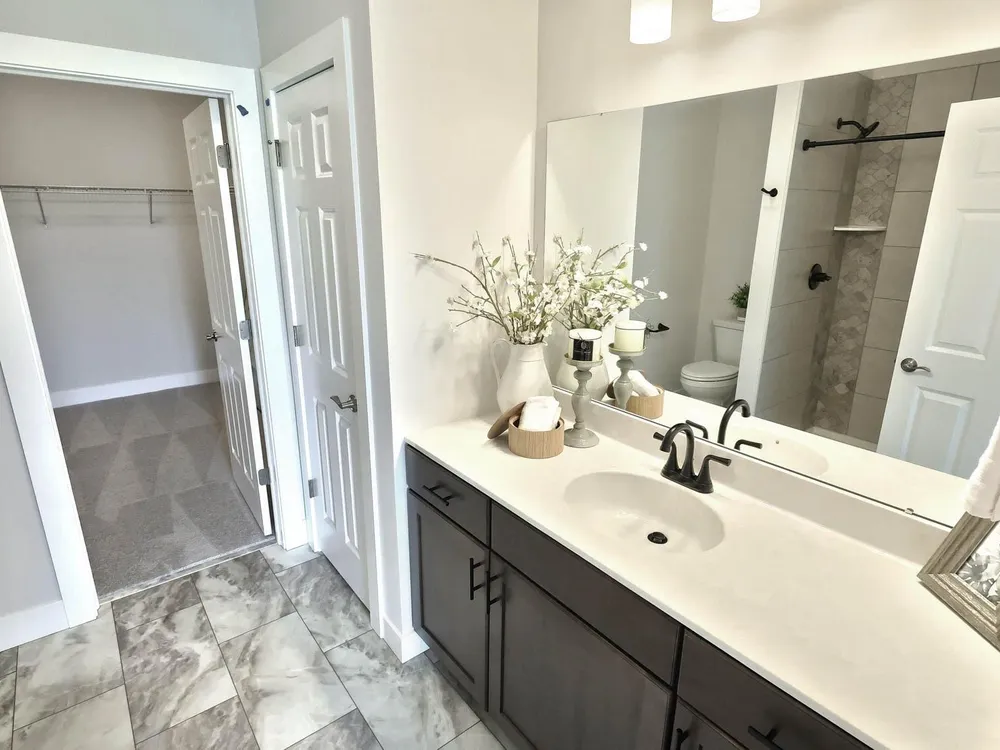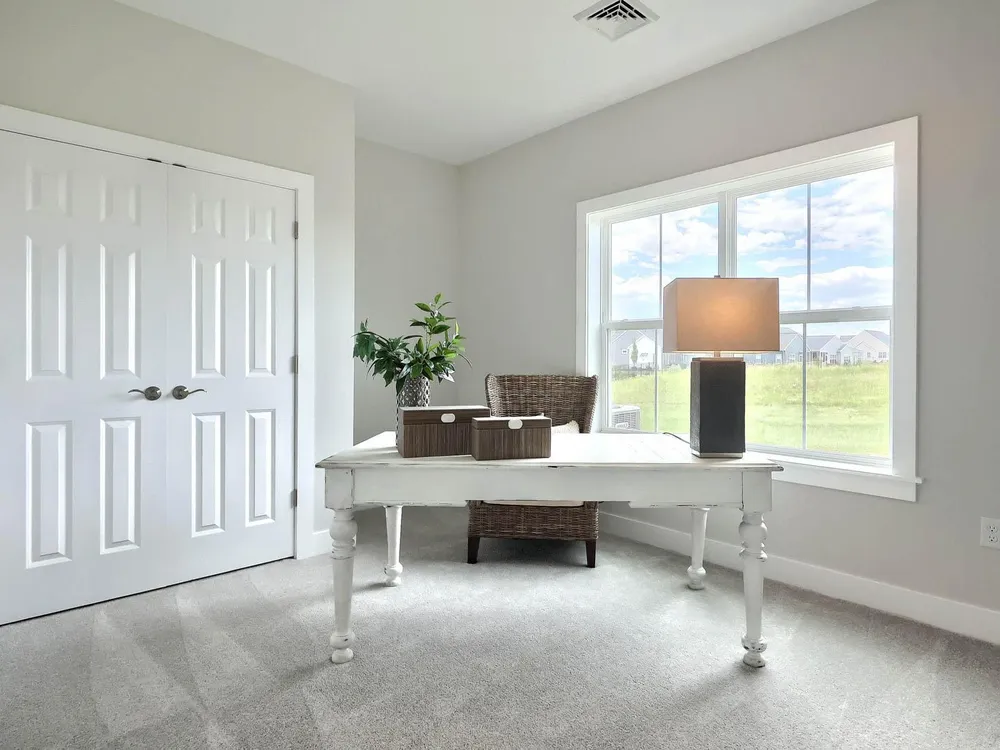Landmark’s new duplex at Winding Creek 55+ is a thoughtfully designed 1-story home with 2 bedrooms, 2 full baths and a 2-car garage. The private side entry opens to the foyer and a formal dining room with a cathedral ceiling. The kitchen is well-equipped with stainless steel appliances, quartz countertops, a tile backsplash, and a large pantry. The great room, accented by a tray ceiling, is warmed by a gas fireplace with a stone surround. Both bedrooms are tucked quietly to the back of the home. The owner’s suite has an oversized closet and a private bathroom with a tile shower.