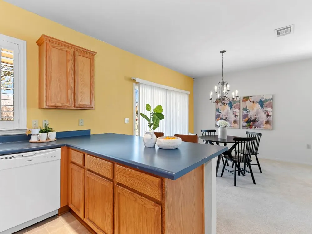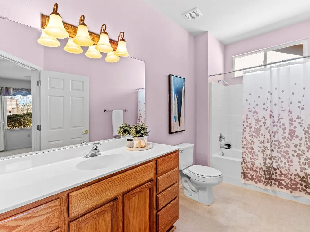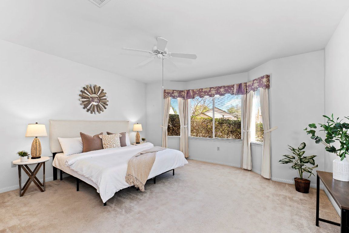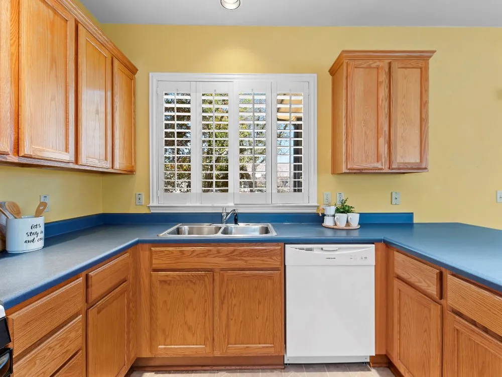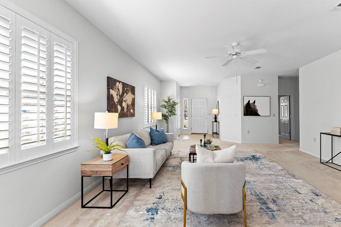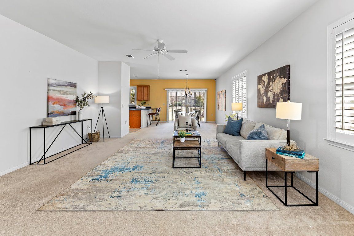 Priced to allow for your upgrades. Discover the perfect blend of comfort and convenience! With an open-concept layout, this Del-Webb built Lamar model home features a spacious living room with an adjoining dining area. Plantation shutters are a fabulous upgrade, allowing you to flood the space with natural or filtered light. The kitchen is practical and inviting, offering ample cabinet space with 42" uppers, as well as a cozy breakfast bar, while the nearby dining nook provides views of the serene backyard. This house includes three well-sized bedrooms, ensuring plenty of personal space - use one as an office and still have room for guests. Step outside to a covered back patio with a privacy lattice for your comfort. A nice bonus is the 4 foot garage extension. Centrally located, this home is perfect for those seeking an active 55+ lifestyle. Walk to the woodshop, pools, fitness center, tennis courts, pickleball, restaurants... and more! 2024 dishwasher, 2023 water softener, 2017 water heater, interior painted 2022, roof 2020. Don’t miss the opportunity to live in the heart of Sun City!