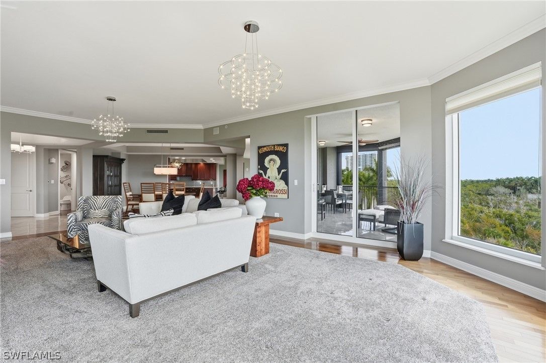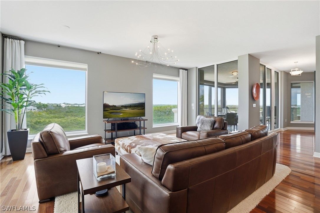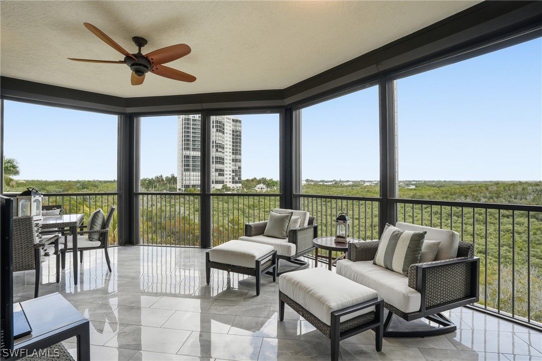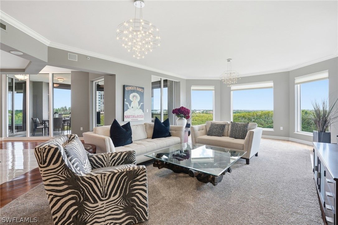 Step into a world of unparalleled luxury in this exquisite updated condo nestled within La Scala at The Colony, Bonita Springs’ most coveted address. Offering a generous 4,068 sq. ft. of living space (4,988 total), this residence boasts 3 bedrooms, a den (easily convertible into a fourth bedroom), and 4.5 baths—all crafted to deliver sophisticated comfort and ease of living. The moment you enter, you’re captivated by sweeping views of the bay and pristine mangroves, visible from nearly every room. Arrive in style as the elevator mimics a private entrance, opening directly into your own private foyer—a grand and exclusive welcome every time. The updated kitchen invites culinary creativity, while the expansive great room flows effortlessly into both an large open wrap around patio (soon to have all new paver flooring) and two screened lanais—perfect for sunset cocktails or morning coffee with serene waterfront vistas. This inviting patio space is primed for entertaining, al fresco dining, or simply soaking up the Florida sun in style. The master suite is nothing short of a private retreat, featuring a sprawling walk-in closet with custom build-outs and a spa-like ensuite. Each additional bedroom and the den also feature ensuite baths, an uncommon touch that enhances privacy and convenience. This fully furnished home (except for staged rear patio furniture) is situated within La Scala, a premier building offering world-class amenities: a billiards room, movie theater, library, impressive social room with a bar, card room, and a fitness center complete with a sauna. Residents enjoy peace of mind with 24/7 staffed security at both the front desk and main gate, plus two assigned underground parking spaces. The recently updated building roof adds to the peace of mind. Beyond La Scala, The Colony community elevates resort-style living with its exclusive updated Bay Club, featuring formal and casual dining across two levels, just steps away—this is the only building within walking distance. Explore the 34-acre private island beach park, kayak and canoe launch, or indulge in optional golf at The Colony Club. And yes, this pet-friendly residence ensures your furry companions are welcome too. This is more than a home; it’s a lifestyle. Don’t miss this rare opportunity to claim your place in one of Southwest Florida’s finest communities.