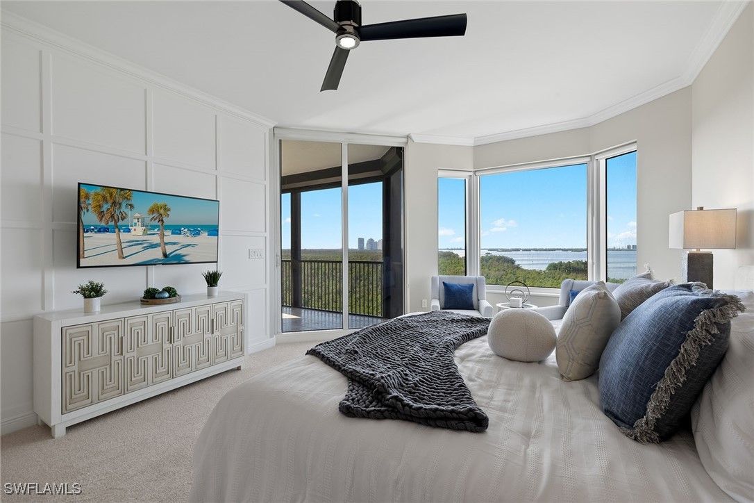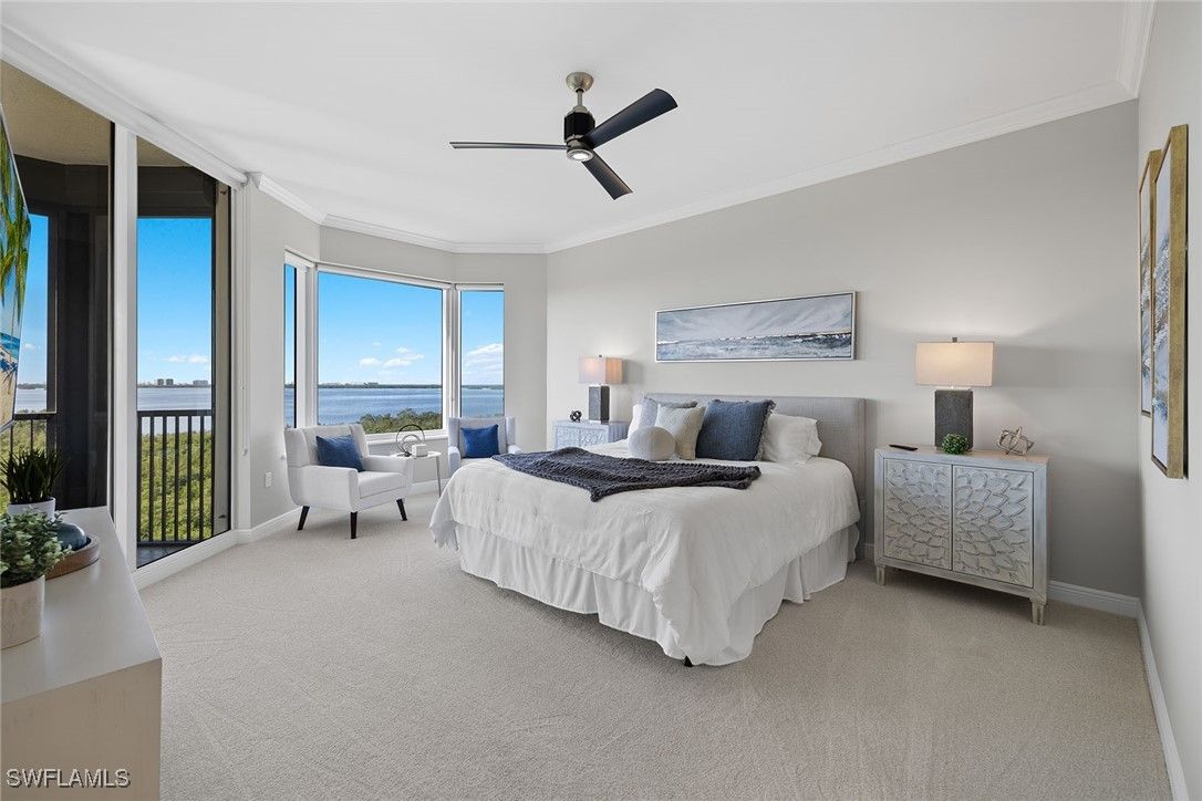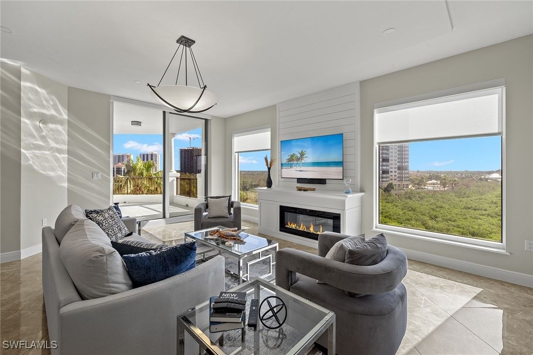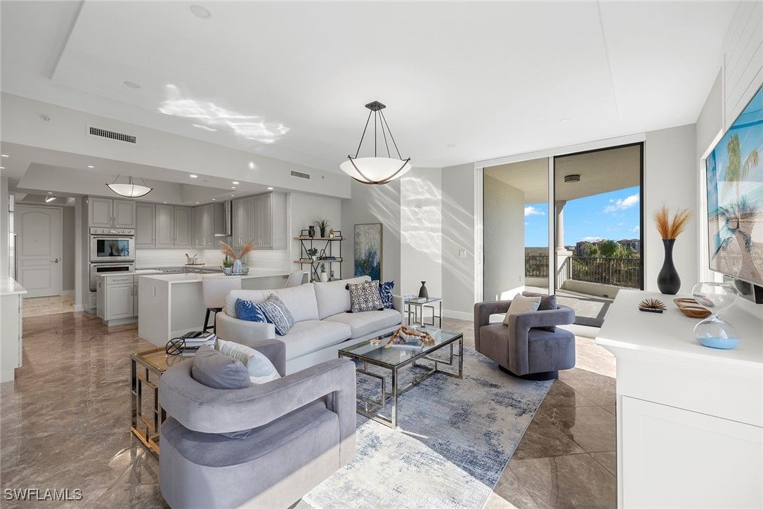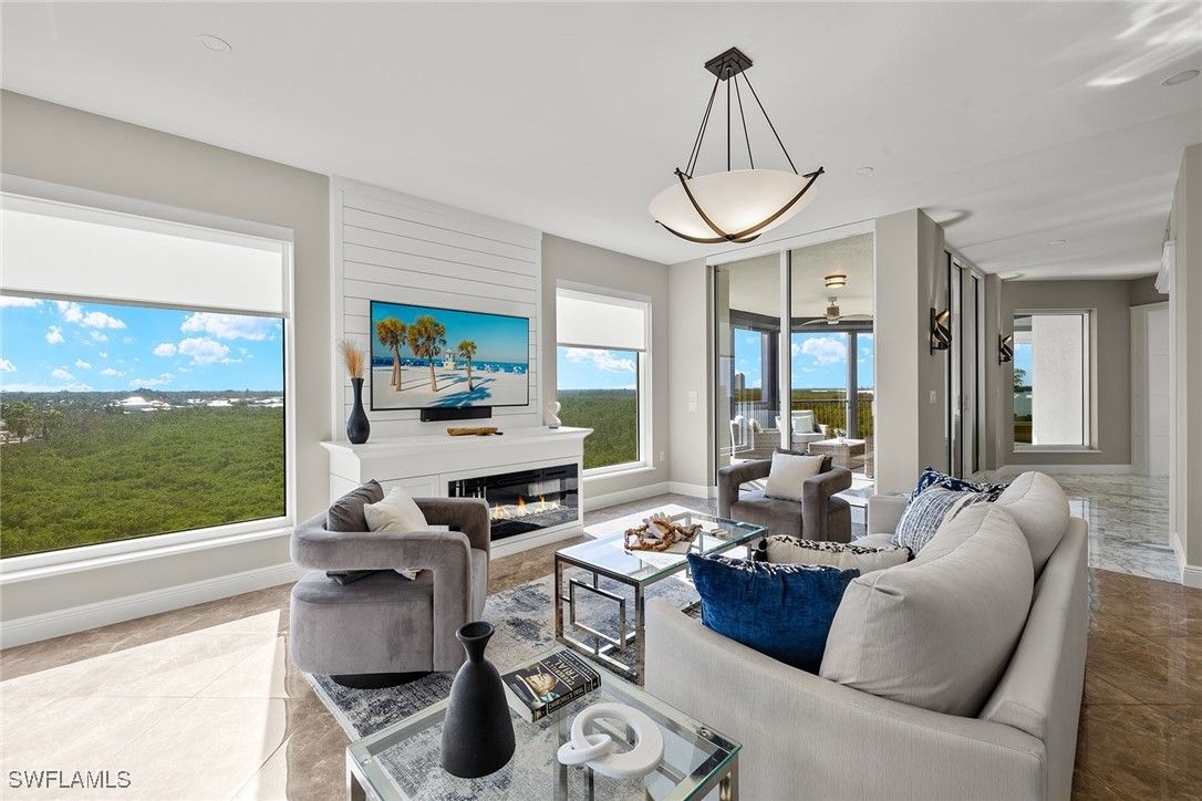 Recent price improvement - Luxury living was never so affordable! Live the life you’ve always imagined in this magnificent, fully renovated, luxurious condo. LOCATION, LUXURY, and LIFESTYLE – La Scala 501 has it all! In addition, skip the waiting list to enjoy FULL GOLF AND CLUB MEMBERSHIP PRIVILEGES AT THE PRESTIGIOUS COLONY GOLF & COUNTRY CLUB. Picture yourself on the greens, living the ultimate Florida lifestyle, within 30 days of closing and payment of club fee. La Scala 501 is a much-coveted, completely renovated, end unit encompassing 4,068 sq. ft. of internal living space/4,988 total sq. ft., with four (4) balconies, two of which are screened lanais with automated storm shutters. This unit sells fully furnished. Important features: private elevator lobby, four (4) large bedrooms, four (4) full ensuite baths plus a powder room, new AC unit, new laundry, sleek and ultra-functional newly renovated kitchen, exclusive Hubbardton Forge lighting fixtures, custom walk-in closets, new entertainment center with linear fireplace, gorgeous Carrera marble flooring, high (9’8”) ceilings, and overall floor-to-ceiling windows which bring in an abundance of light and provide stunning, unobstructed, water views. Unit renovations completed in 2022, with additional renovations completed in 2025. This condo has it all and is ready for immediate occupancy at a price per sq. ft. far below comparable luxury units. The La Scala condominium building, often referred to as the jewel of The Colony high rises for its luxury amenities, ultra generous floor plans, and unobstructed views of Estero Bay and Gulf of America, has undergone approximately $14 Million+ in renovations and upgrades, which include a new roof, new exterior stucco, paint, and finishes, all new landscaping, refurbished garages, restoration and upgrade of all security cameras and door entry locations, complete replacement of all pool, spa, fountain, and geothermal equipment. All assessments have been paid in full. In addition, La Scala amenities include features only found in Five Star residences, namely: 24/7 front desk services, an expansive state-of-the-art fitness center, impressive two-story lobby, luxuriously appointed onsite guest suites for overnight visitors, private pool and spa with outdoor grills and bar area, a movie theater and social rooms for entertaining. Membership to The Bay Club, newly renovated, and hourly ferry access to a private, 34-acre island beach on the Gulf of America, are all yours for you and your family to enjoy.