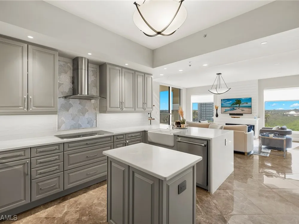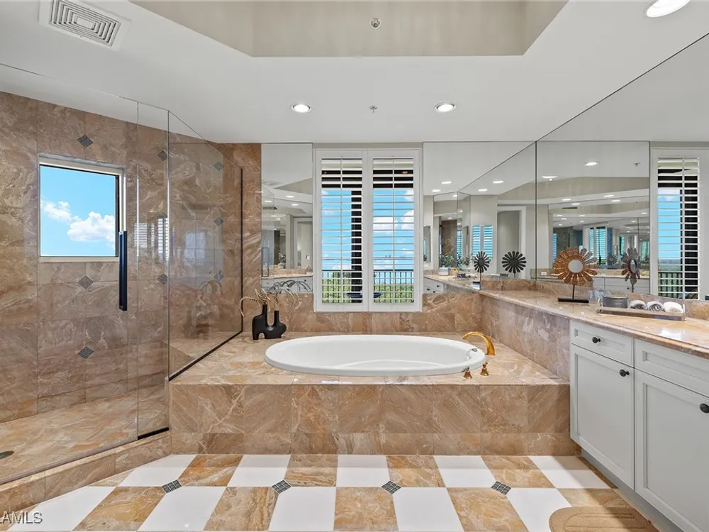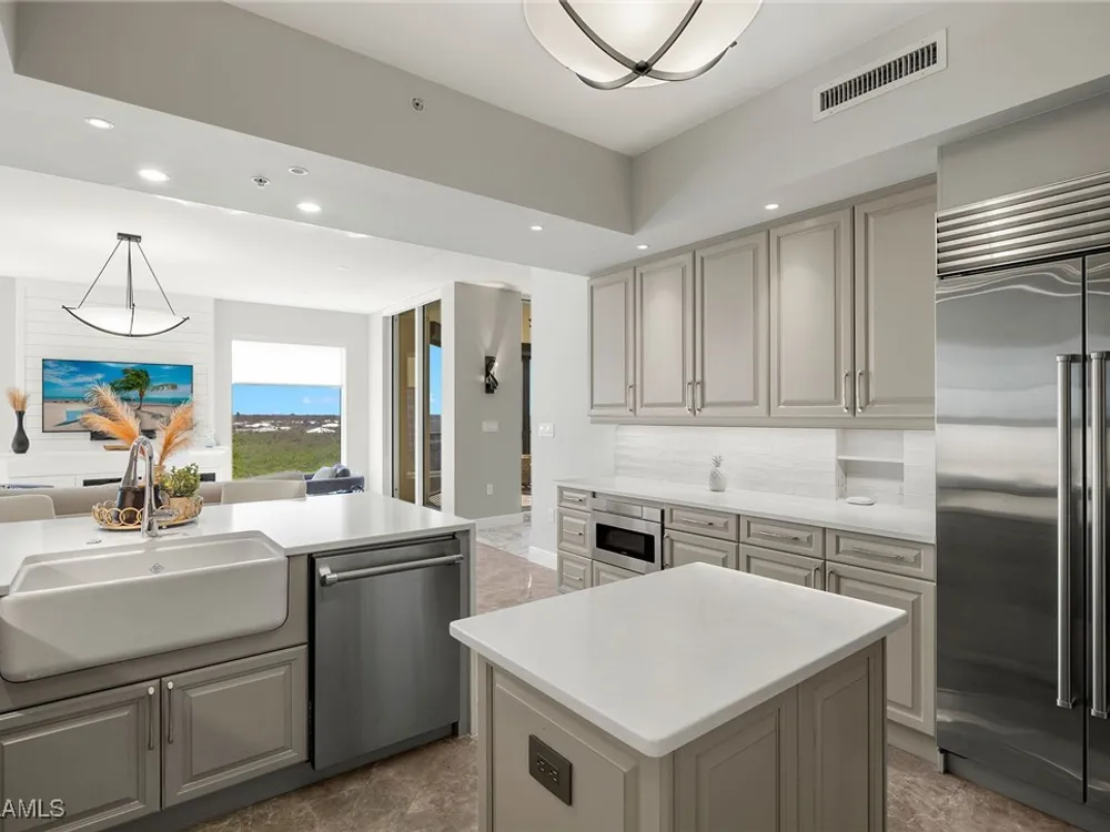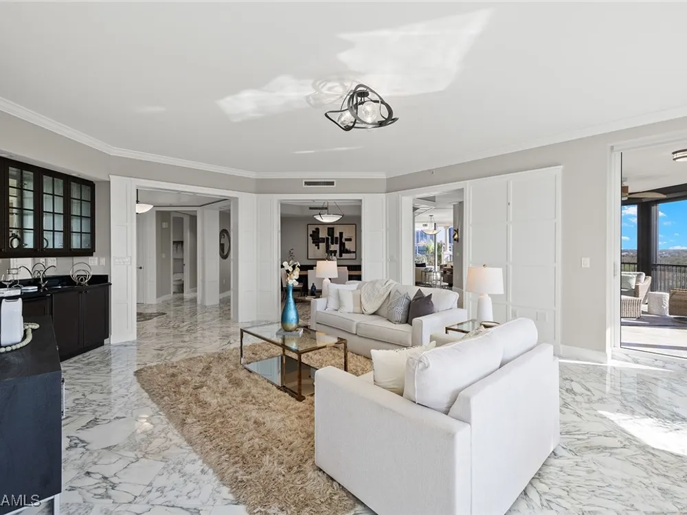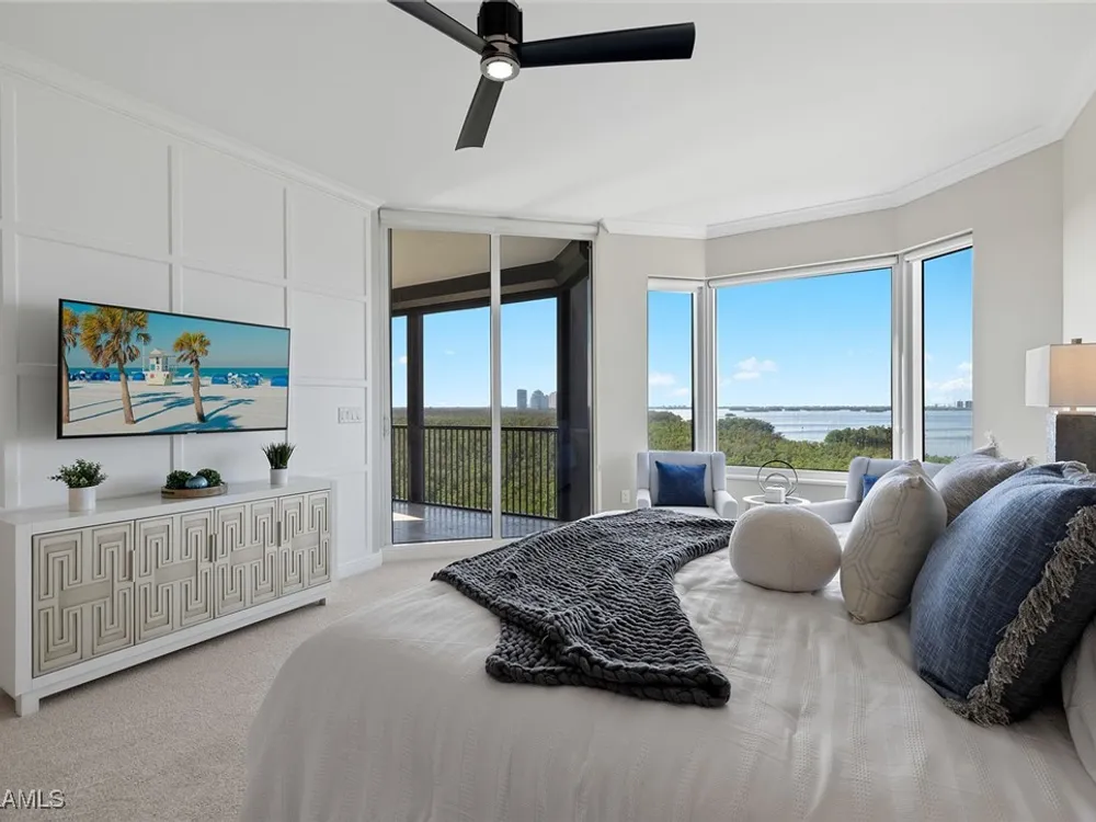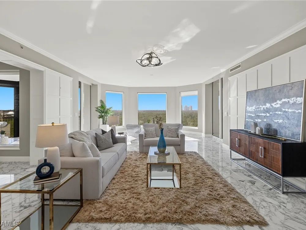 MAJOR PRICE IMPROVEMENT! Ultimate luxury and gorgeous water views for a price under $540 per sq. ft. Live the life you’ve always imagined in this magnificent, fully renovated, luxurious condominium and skip the waiting list to enjoy full golf and club membership privileges at the prestigious Colony Golf & Country Club, just five minutes from your door. New HVAC system just installed and all new appliances - fully renovated end unit. La Scala 501 has 4,068 square feet of internal living space with 4,988 total square feet, with four balconies, two of which are screened lanais with automated storm shutters. This unit sells furnished. Important features include private elevator lobby, four large bedrooms, four full en-suite baths plus a powder room, sleek and ultra-functional newly renovated kitchen, exclusive Hubbardton Forge lighting fixtures, custom walk-in closets, new laundry, new entertainment center with linear fireplace, gorgeous Carrera marble flooring, high 9-foot, 8-inch ceilings, and overall floor-to-ceiling windows which bring in an abundance of light and provide stunning, unobstructed water views. Unit renovations completed in 2022. This condominium has it all and is ready for immediate move-in. The La Scala condominium building, often referred to as the jewel of The Colony high rises for its luxury amenities, ultra generous floor plans, and unobstructed views of Estero Bay and Gulf of Mexico, has undergone approximately $14 million-plus in renovations and upgrades, which include a new roof, new exterior stucco, paint and finishes, all new landscaping, refurbished garages, restoration and upgrade of all security cameras and door entry locations, and complete replacement of all pool, spa, fountain and geothermal equipment. All assessments have been paid in full. In addition, La Scala amenities include features only found in five-star residences, namely 24/7 front desk services, an expansive state-of-the-art fitness center, impressive two-story lobby, luxuriously appointed onsite guest suites for overnight visitors, private pool and spa with outdoor grills and bar area, a movie theater and social rooms for entertaining. Membership to The Bay Club, newly renovated, and hourly ferry access to a private, 34-acre island beach on the Gulf of Mexico, are all yours for you and your family to enjoy.