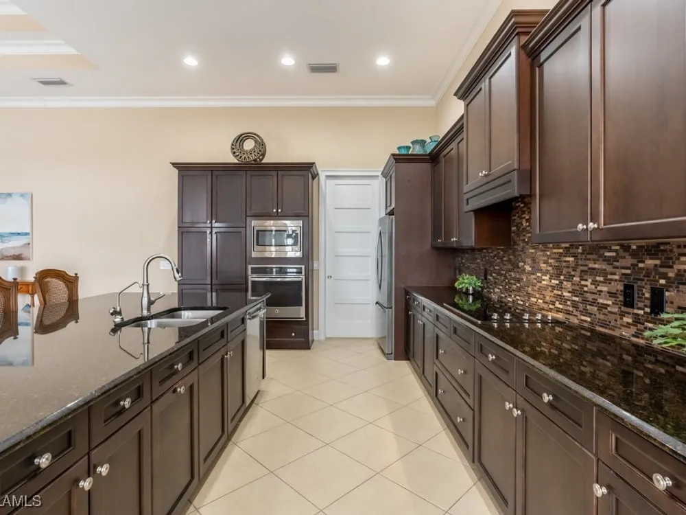 Offered for the first time on the re-sale market! This home is located on one of the very best streets in the Isles (just ask the friendly neighbors), on a short cul de sac with no traffic, yet is very close to the clubhouse. Inside you will discover great water views to enjoy from many rooms, as well as the gorgeous custom-designed salt-water pool and lanai oasis. Imagine sitting poolside with your morning coffee, overlooking the lake and the gorgeous colors of the morning sky and lush landscaping....and literally spending each day living like you are on vacation. This light-filled Pimento model will be the setting for your friends and family to gather and share in your great Florida lifestyle. They will love the inviting and open living, kitchen and dining areas and beautiful high ceilings. There are many upgrades found throughout the home, such as double tray ceilings, recessed LED lighting, crown molding and custom plantation shutters to enhance the windows. The kitchen island,10 feet wide, makes a great breakfast bar and gathering place for all of those people who insist on hanging out near the food! The primary suite is a retreat in itself, with plenty of room for a king bed and seating area, and offering views of the lake, two walk-closets, and adjoining bathroom offering separate dual vanities, large mirrors, walk-in shower with Euro-glass, soaking tub, and private toilet room. The split bedroom floor plan, including the flex/den gives everyone the privacy and space deserved. This home has been meticulously maintained and offers many great features "behind the scenes". There is an electric Storm Smart Screen protecting the covered lanai and sliding doors, a whole house generator, ADT Home Security System, and Culligan whole house water filtration system. The laundry room deserves a mention also, because it is so large that it also acts as a walk-in pantry and coffee bar as well as access to the spacious three car garage. All of this, plus the privilege of belonging to the Isles of Collier Preserve. One of Naples' most desirable active resort lifestyle communities, the Isles has over 1,300 acres dedicated to natural habitat and preserve areas, connected by trails, bike paths, and waterways. Anchored by a beautiful clubhouse inspired by the charm of the historic Naples Hotel, you will enjoy the state-of-the-art fitness center, tennis courts, pickleball, bocce ball, a luxurious resort pool, lap pool, outdoor spa, and the popular private Overlook Bar and Grill Restaurant. All of this is just minutes from the downtown historic district and Fifth Avenue, where you can indulge in world-class dining, boutique shopping, and the breathtaking beaches of Naples. From the Isles back resident-only gate you can walk to the US Open Championship Pickleball courts and just a few minutes further will take you to Hamilton Harbor marina and boat launch to Naples Bay. It just doesn't get any better than this!