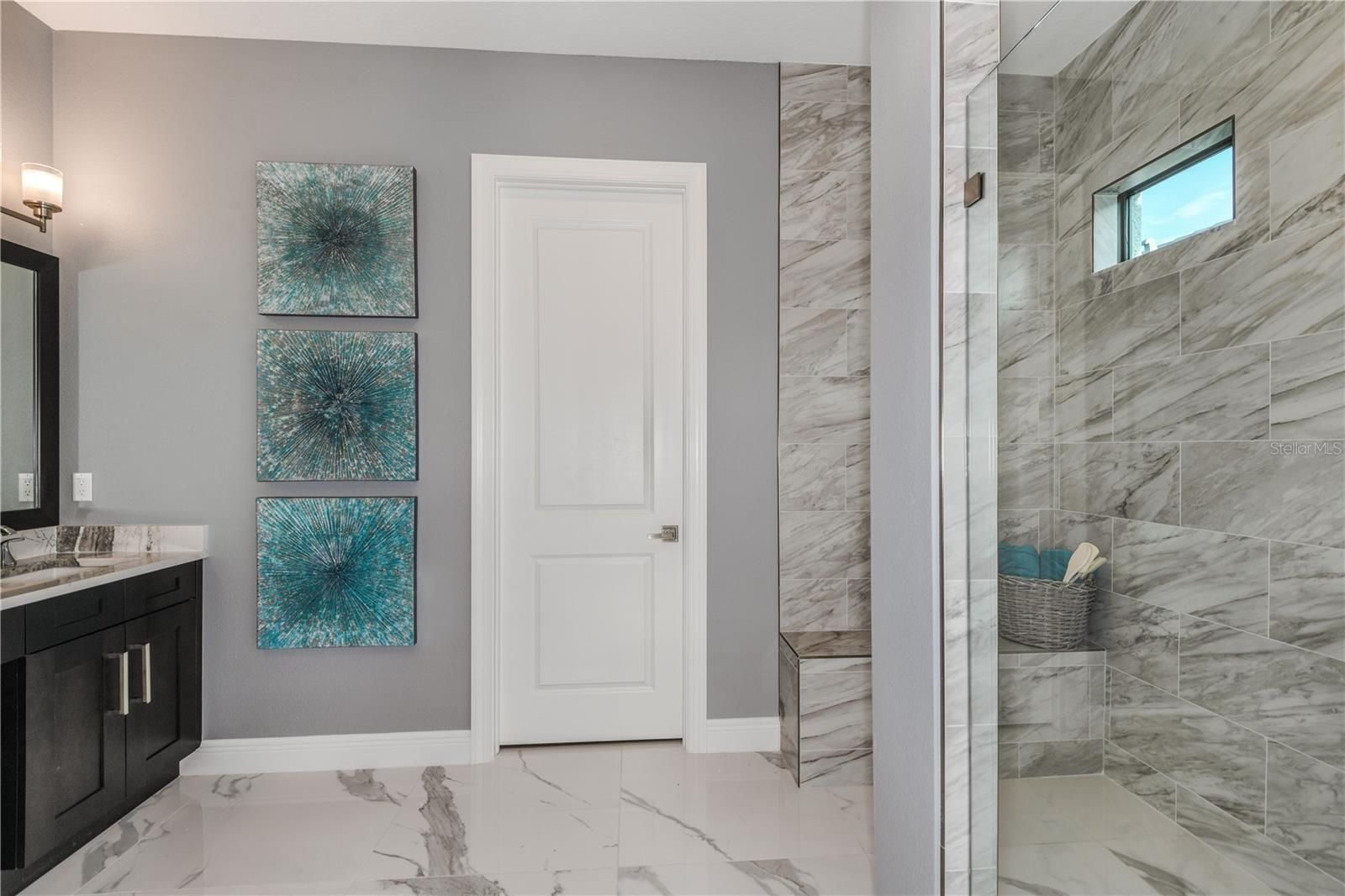 - Crown Molding, In-Wall Pest Control, Living/Dining Room, Open Floorplan, Main Level Primary, Stone Counters, Thermostat, Tray Ceiling(s), Walk-In Closet(s)