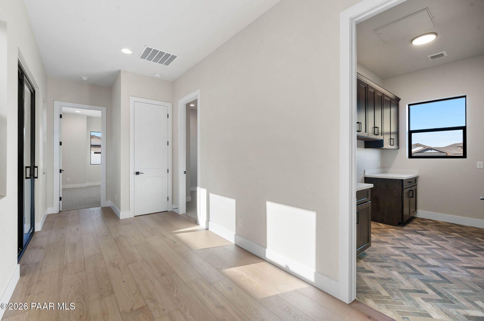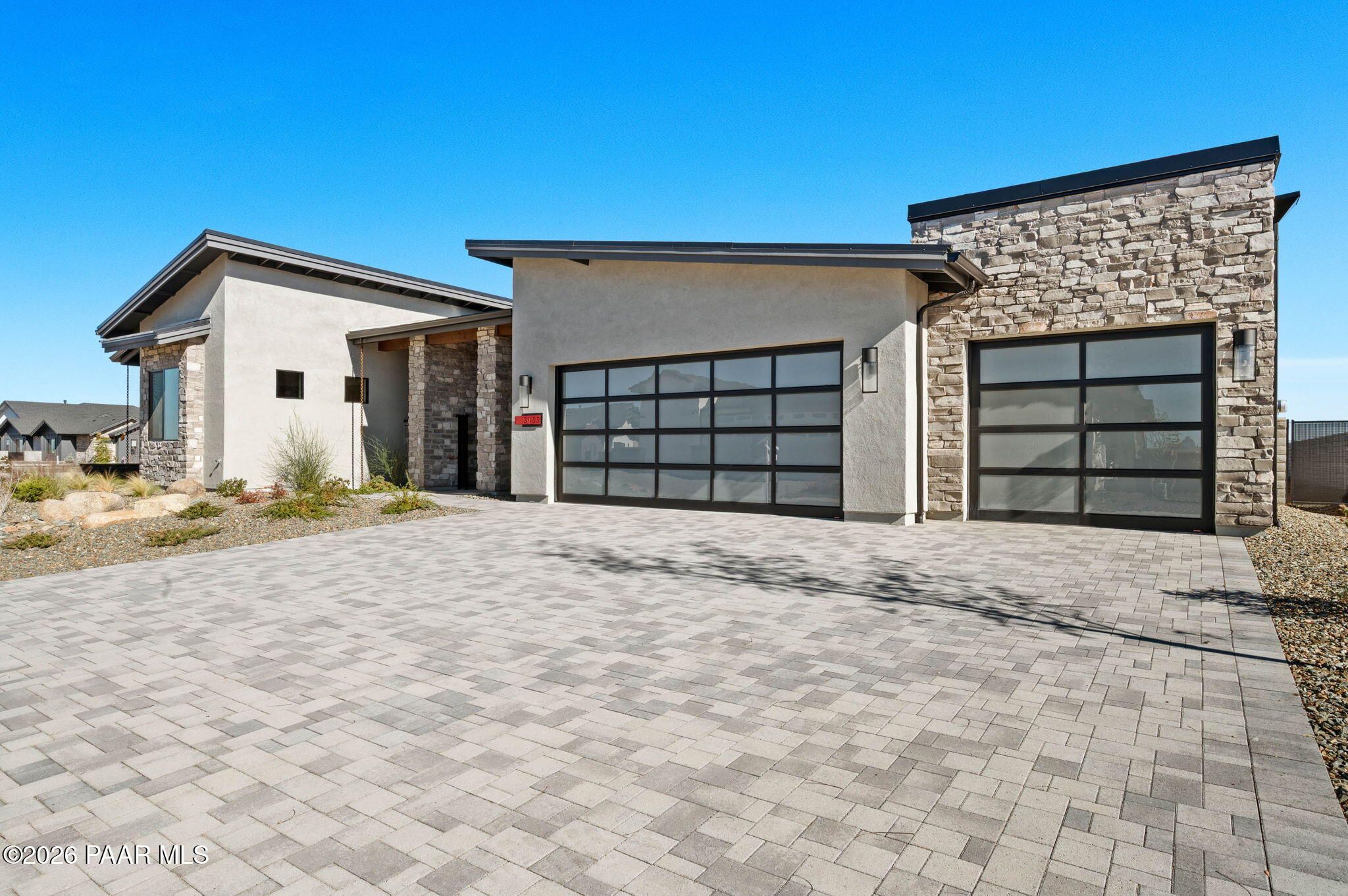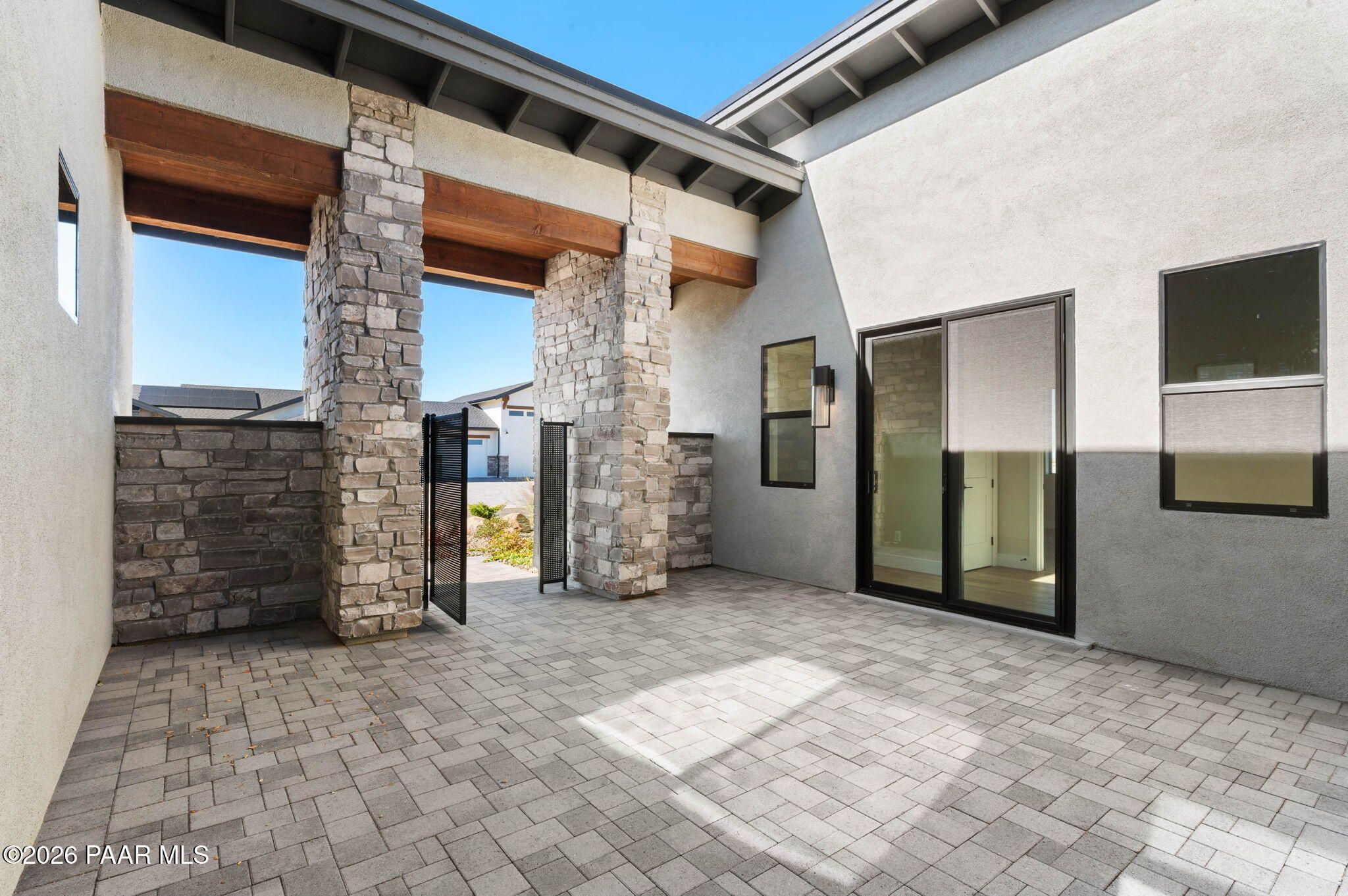 Beautifully finished and newly completed by Capstone Homes, this modern residence is located on an oversized lot within Prescott Valley's premier Jasper community and checks all the right boxes. From the moment you arrive, the welcoming front courtyard sets the tone, drawing you into an open, light-filled layout designed for both everyday living and easy entertaining. Thoughtful upgrades are found throughout, including a striking stone fireplace that anchors the main living space, soaring ceilings, gorgeous engineered hardwood floors, and the energy efficient construction Capstone is known for.Beyond the home itself, the lifestyle here is hard to beat. Enjoy access to Jasper's J Club, miles of nearby hiking and biking trails, and the wide open beauty that defines this part of Northern Arizona. All of this, while remaining close to everything Prescott Valley and the surrounding area has to offer. This is modern Arizona living, done right.