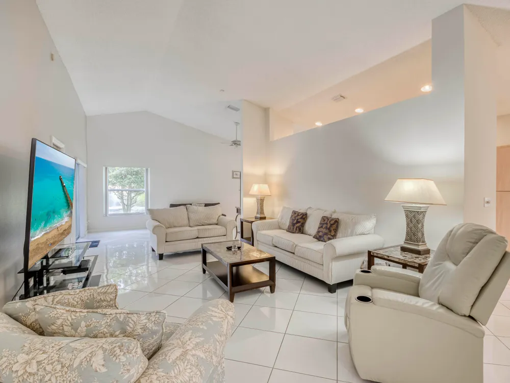 Welcome to Cypress Lakes! A 55+ community centrally located in West Palm Beach. This charming single-family home features an open layout with 2 bedrooms, 2 full bathrooms, 1764 living sqft and direct water views. You'll find vaulted ceilings, a large primary suite and a screened in covered patio. In addition, this home offers a dedicated in home laundry room and a two-car garage. Cypress Lakes offers a variety of amenities including an 18-hole golf course with FREE green fees, clubhouse, fitness center, two pools, mini-golf, tennis & pickle-ball courts, billiards room, shuffleboard and much more. This private guard gated community is easily accessible to major roads and just a short drive from downtown. Schedule your private showing today!