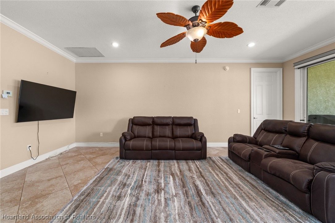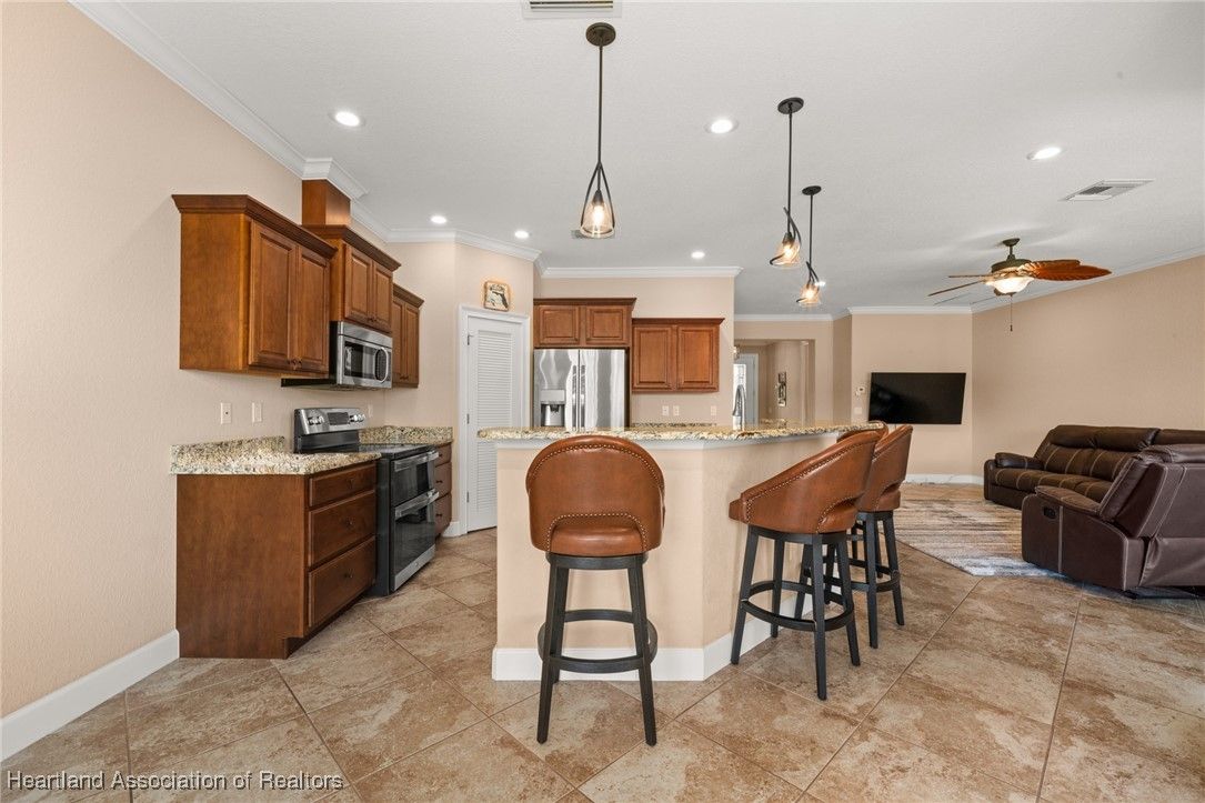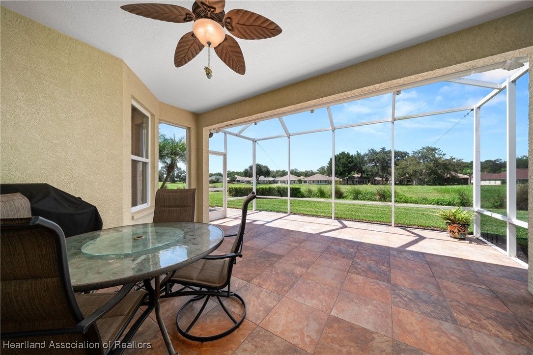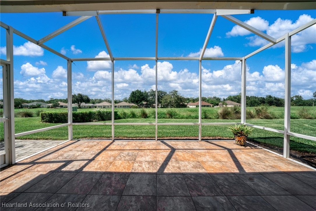 Experience an active lifestyle in the beautiful Highlands Ridge gated community. This stunning 2-bedroom villa, complete with a bonus office space, is situated on the 9th hole of the golf course. You'll be charmed as soon as you arrive at the lovely paved driveway. The screened entry and welcoming foyer invite you inside the open floor plan featuring beautiful tile flooring and a spacious living area that flows into the kitchen—perfect for the family chef. The kitchen is equipped with stainless steel appliances, granite countertops, bar seating, and a large pantry. The dining room boasts lovely views of the golf course. The master bedroom is generously sized and includes a walk-in closet with custom built-ins. The ensuite bathroom is designed to impress, featuring double vanity sinks, a walk-in shower, and a jetted soaking tub. The guest room and bath have pocket doors, ensuring privacy for your guests. Finally, step outside to the large screened-in patio adorned with pavers. It’s an ideal space for entertaining, enjoying your morning coffee, or having dinner in the evening. Enjoy the active lifestyle with many activities to choose from, Golfing, pickleball, Tennis, and 2 pools, and more. Generator included, the roof is a 2023... HOA covers lawn, trimming, weeding and irrigation for a carefree lifestyle. Come join this incredible community!! ***** AS A BONUS, THE SELLERS ARE PROVIDING A 1-YEAR HOME WARRANTY up to $700.00 or CREDIT TOWARDS CLOSING COSTS!!!!****