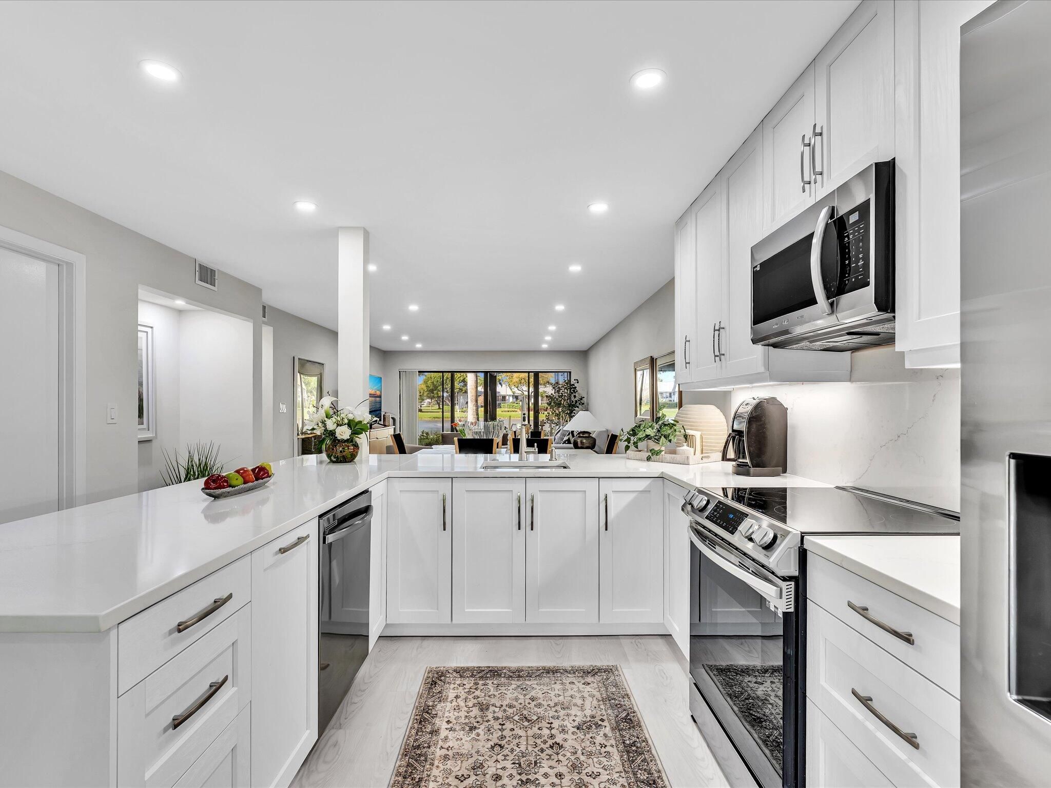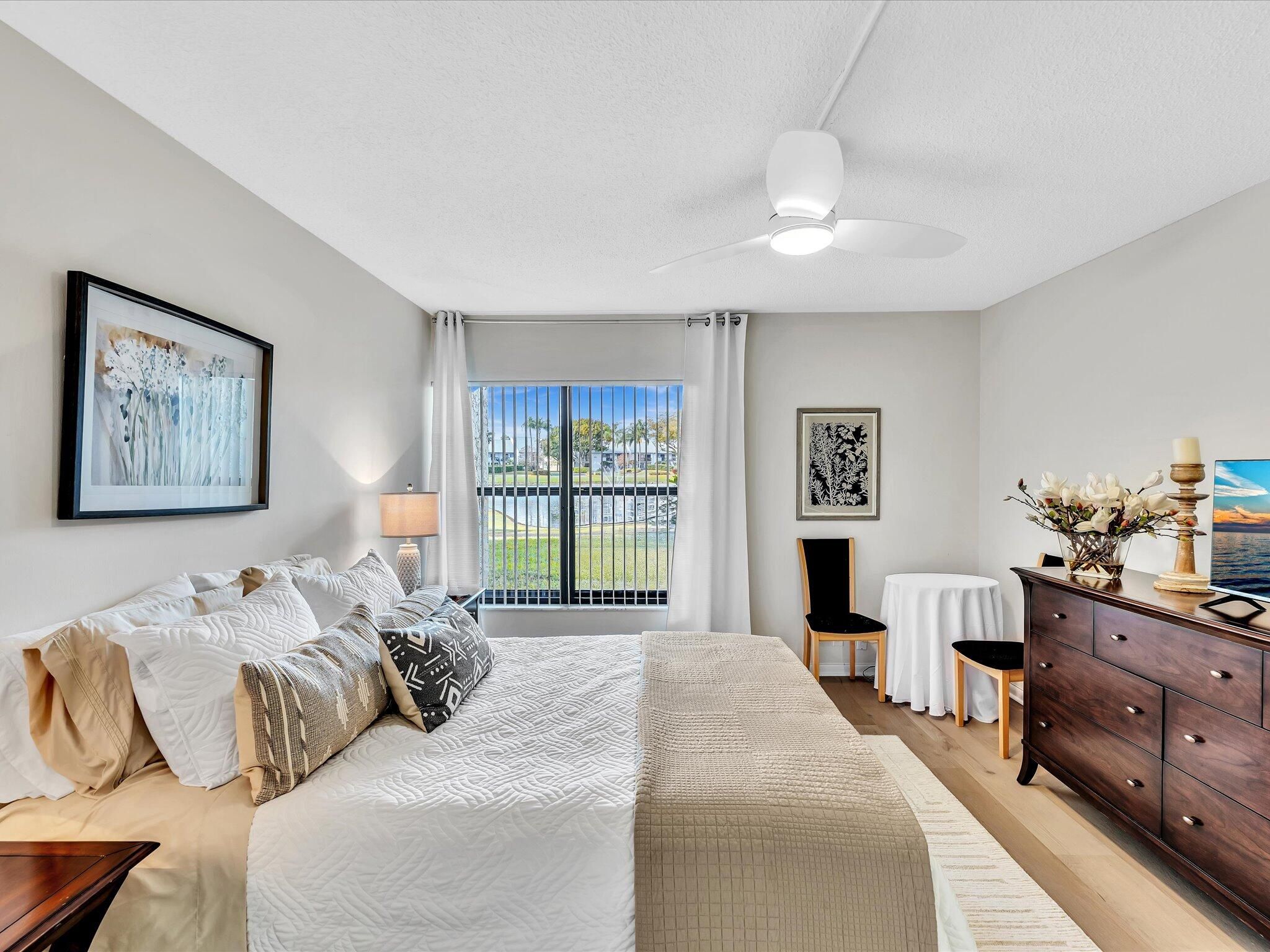 This move-in ready first floor open concept condo features a fully renovated interior (approx. 100K) that makes everyday living & entertaining a pleasure. Popcorn ceilings have been removed & replaced w/ smooth finishes & recessed lighting that enhances the bright open atmosphere. The design details of this 2-bedroom condo are unmatched w/ walk-in closets, 2 fully remodeled bathrooms w/ modern vanities, upgraded tile work, lighting, & laminate flooring throughout. The lanai overlooks golf course views including the lakeside wonder of swans & breathtaking sunsets. Included are easy to operate accordion hurricane shutters Golf membership is not required to enjoy the challenging 18 holes of par 60 golf, tennis courts, pickleball courts, numerous clubs, renovated gym, & the 19th Hole Café. If you're looking for an active lifestyle with endless activities, then Boca Delray Country Club is for you. Be as active as you want or as inactive and you wish, nonetheless, there isn't a better community anywhere in Palm Beach County to call HOME! No golf membership required to play. There is a ONE-TIME 4% capital contribution to the association at time of closing. 55+ Adult Community.