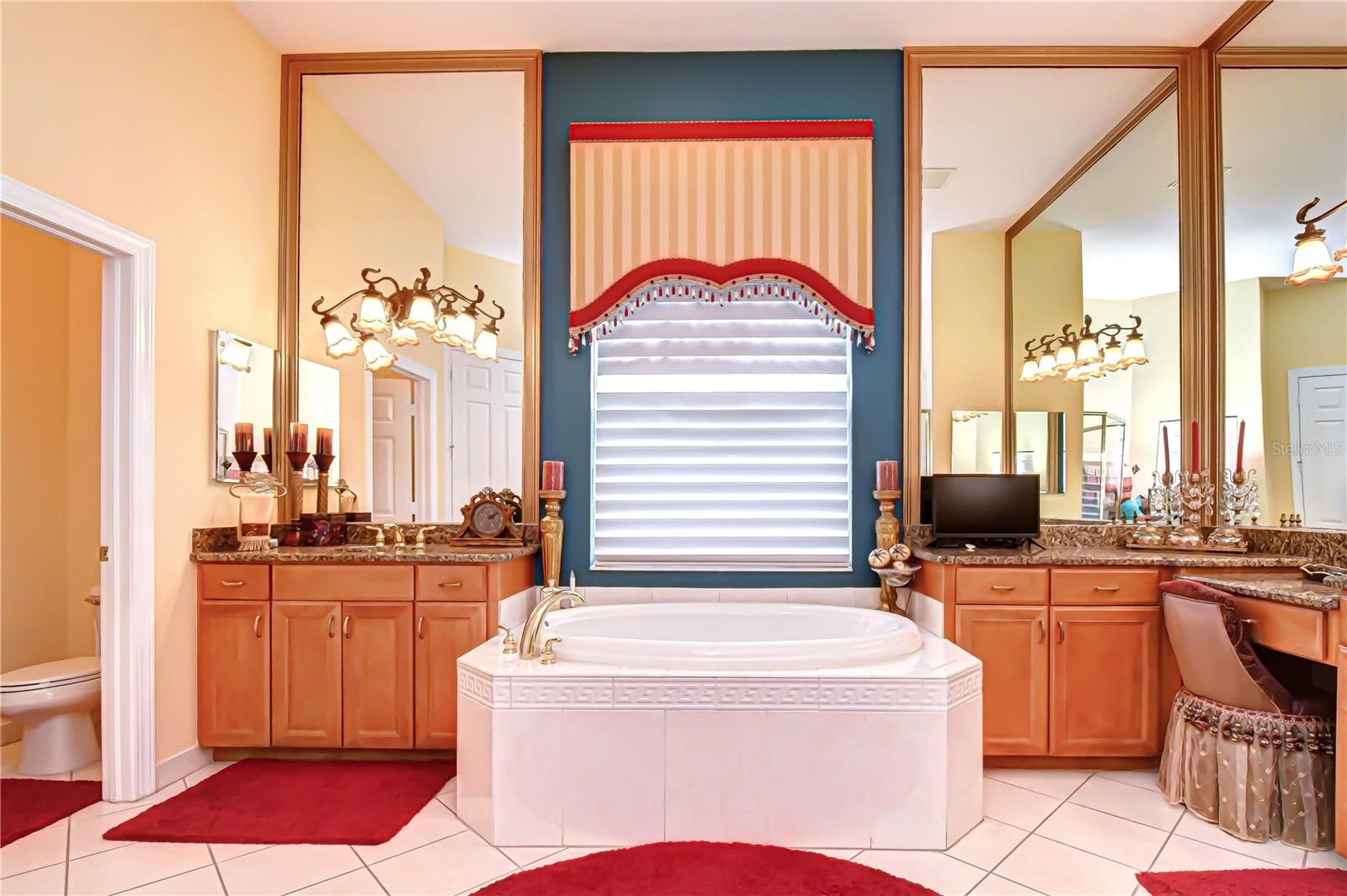 - Ceiling Fan(s), Crown Molding, Eat-in Kitchen, High Ceilings, Kitchen/Family Room Combo, Open Floorplan, Main Level Primary, Split Bedrooms, Tray Ceiling(s), Walk-In Closet(s), Window Treatments