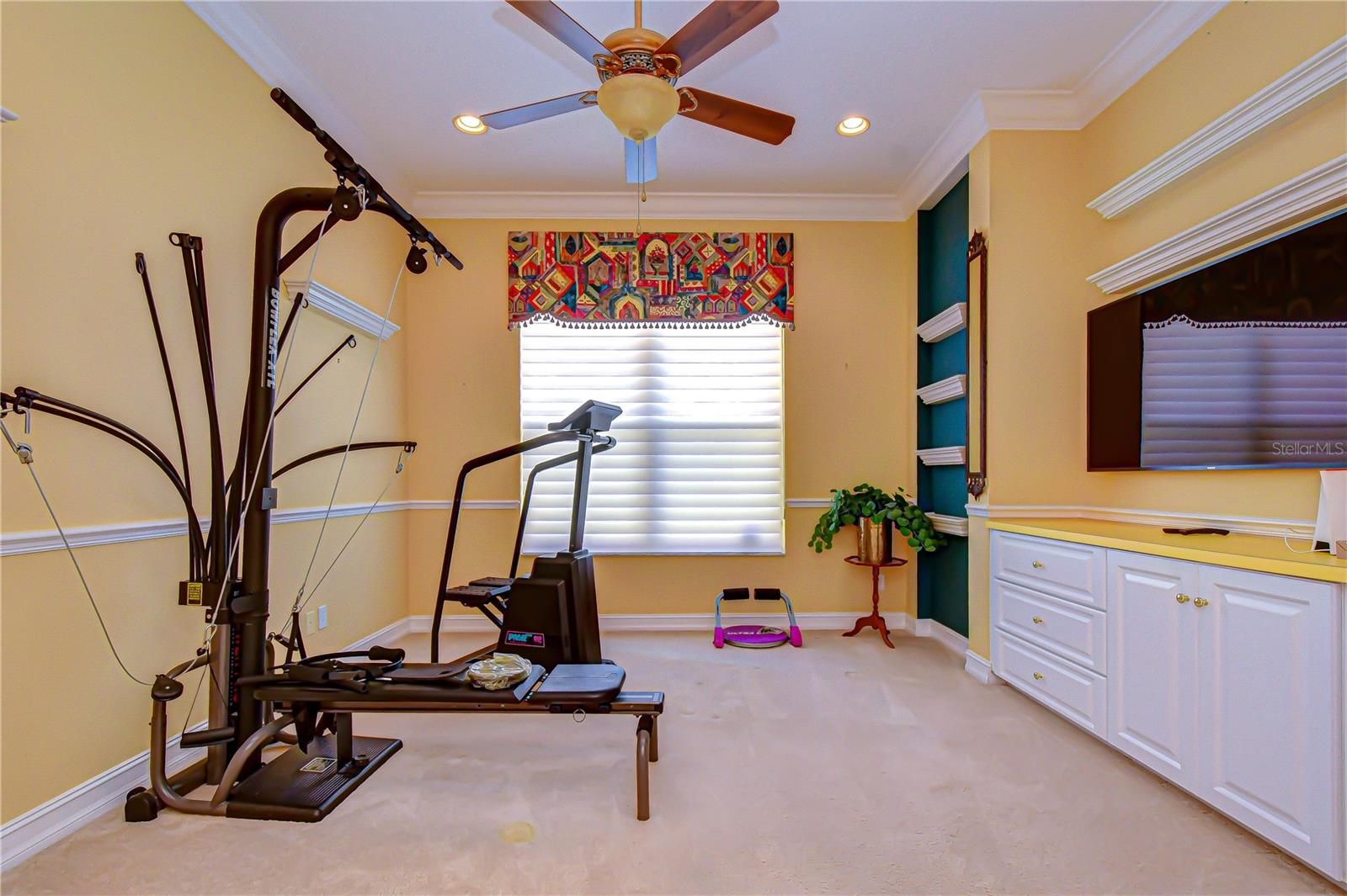 Welcome to resort-style living in the highly sought-after Valencia Lakes—a premier gated 55+ community known for its vibrant lifestyle and exceptional amenities. Perfectly positioned on a rare pie-shaped, south-facing waterfront lot, this home offers breathtaking lake views while overlooking the community center. The unique orientation provides the best of both worlds—sun-drenched pool and lanai areas all day, while the home itself stays naturally cooler with minimal direct sun exposure. From the moment you arrive, you’ll appreciate the beautiful tile roof, pavered driveway, and inviting tropical courtyard entry that sets the tone for what’s inside. Step through the front door and your eyes are immediately drawn to the expansive water views and the stunning lanai featuring a sport-style pool, creating the ultimate indoor-outdoor Florida lifestyle. This thoughtfully designed 2-bedroom, 2.5-bath + den residence offers a split floor plan that ensures privacy for both owners and guests, while the open-concept layout is ideal for entertaining. The home is enhanced with high-end finishes throughout, including triple tray ceilings, crown molding, upgraded lighting, and custom built-ins. At the heart of the home is the spacious kitchen, seamlessly connecting to the formal dining and great room. Features include upgraded cabinetry with custom pull-out drawers, built-in double oven, and a bright breakfast nook with serene lake views—the perfect place to start your day. Step outside to the lanai where a propane grill hookup makes outdoor cooking effortless. The private primary suite is tucked away for maximum tranquility and showcases stunning lake views, direct lanai access, and dual custom walk-in closets. The en-suite bath is generously sized with separate vanities, a dedicated makeup vanity, and full-length mirrors spanning the wall. On the opposite side of the home, the guest suite offers its own en-suite bath, providing comfort and privacy for visitors. The versatile den is ideal as a home office, fitness room, or optional third bedroom. The community center also features a wonderful on-site café offering breakfast, lunch, and dinner, along with special menus for holidays and events, adding to the ease and enjoyment of everyday living. Valencia Lakes isn’t just a community—it’s a lifestyle. Enjoy a 40-acre waterfront recreation area, resort-style pools, a 40,000 sq. ft. clubhouse, tennis and pickleball courts, bocce, basketball, a fully equipped fitness center, dog park, baseball field, community garden, and RV/boat storage. Over 100 acres of nature preserves provide peaceful views, abundant wildlife, and a true sense of serenity. With hundreds of clubs and activities, friendly neighbors, and convenient access to Tampa, St. Petersburg, Sarasota, shopping, golf, and the airport, this home offers both comfort and convenience. This is more than just a home—it’s a premium lot, exceptional orientation, and lifestyle opportunity in one of the area’s most desirable communities.
