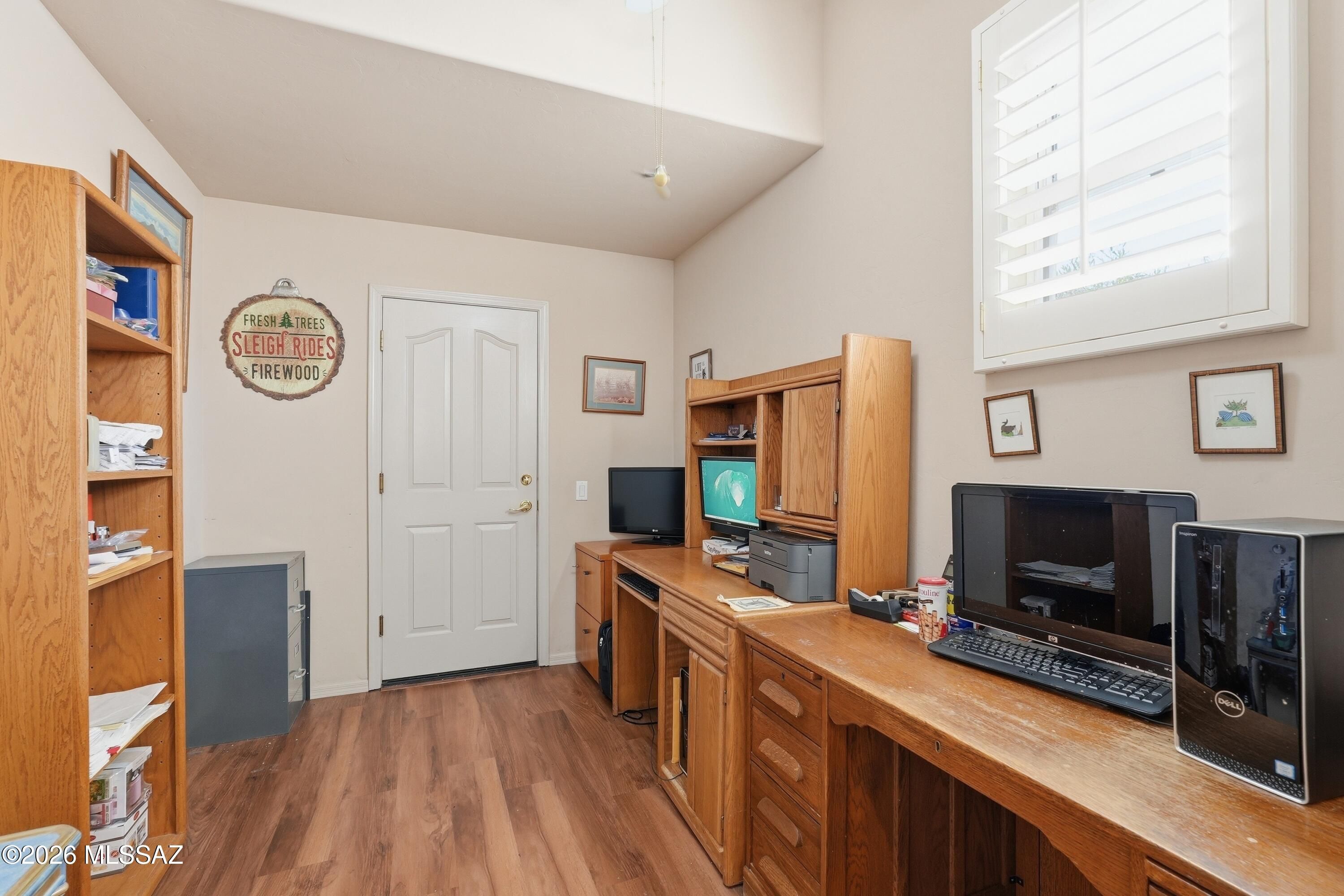 Enjoy the best of community-living in this well-maintained 2-bedroom, 2-bath + den home, ideally located on a quiet cul-de-sac in the highly sought-after gated Heritage Highlands community. Step inside to an inviting great room featuring new LVP flooring, complemented by fresh exterior paint completed last year. The home features classic wood louvered interior shutters that add both style and privacy throughout. The flexible den offers the perfect space for a home office, hobby room, or guest area. The 2.5-car garage provides excellent space for vehicles, storage, or a workshop, and the home offers abundant storage throughout.Outside, relax in your private backyard, perfect for enjoying Arizona's beautiful weather in peace and comfort.