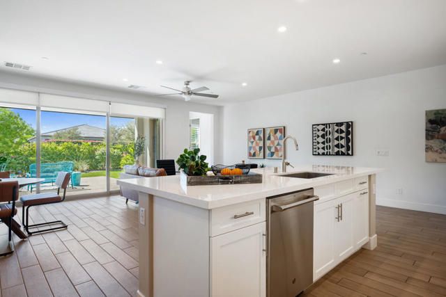 Immaculate Single-Story Home in Trilogy at the Polo Club - Where Luxury Meets Desert Living. Experience the perfect blend of sophistication and comfort in this beautifully upgraded 1,622 sq ft residence, ideally located in the highly sought-after Trilogy at the Polo Club. Designed for both relaxation and entertaining, this single-story gem offers 2 bedrooms, 2 bathrooms, and a versatile den--ideal as a home office, media lounge, or creative studio. Go inside to a bright, open floor plan enhanced by soaring 9' ceilings, stylish tile flooring in the main living areas, and an impressive 15' rolling glass wall that creates a seamless connection between indoor and outdoor living. The gourmet kitchen is a true centerpiece, boasting upgraded cabinetry, quartz countertops, upgraded stainless steel appliances, and a spacious island with bar seating--perfect for casual meals or hosting friends.The private primary suite is a serene retreat, featuring cozy new wool carpeting, dual sinks, a generous walk-in closet, and a custom designer shower for a spa-like experience at home. A second bedroom--also appointed with plush wool carpeting--and a full bath offer comfort and privacy for guests.Outdoors, the professionally landscaped, low-maintenance backyard is a peaceful oasis framed by paver patios and walkways. Whether sipping morning coffee under the oleander trees or enjoying evening breezes, this private space invites year-round enjoyment. A walking trail directly behind and beside the home enhances the sense of openness and privacy. An optional Polo Club Membership (transfer fee $1,875) unlocks access to a 25,000 sq ft clubhouse with a fitness center, resort and lap pools, tennis, pickleball, an indoor golf simulator, and the award-winning June Hill's Table restaurant--all set against the breathtaking backdrop of the Santa Rosa Mountains. This move-in ready home offers the ultimate in refined, active desert living--don't miss your chance to make it yours.