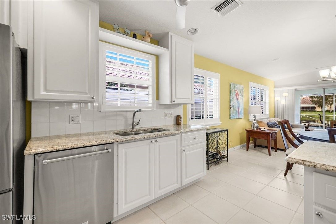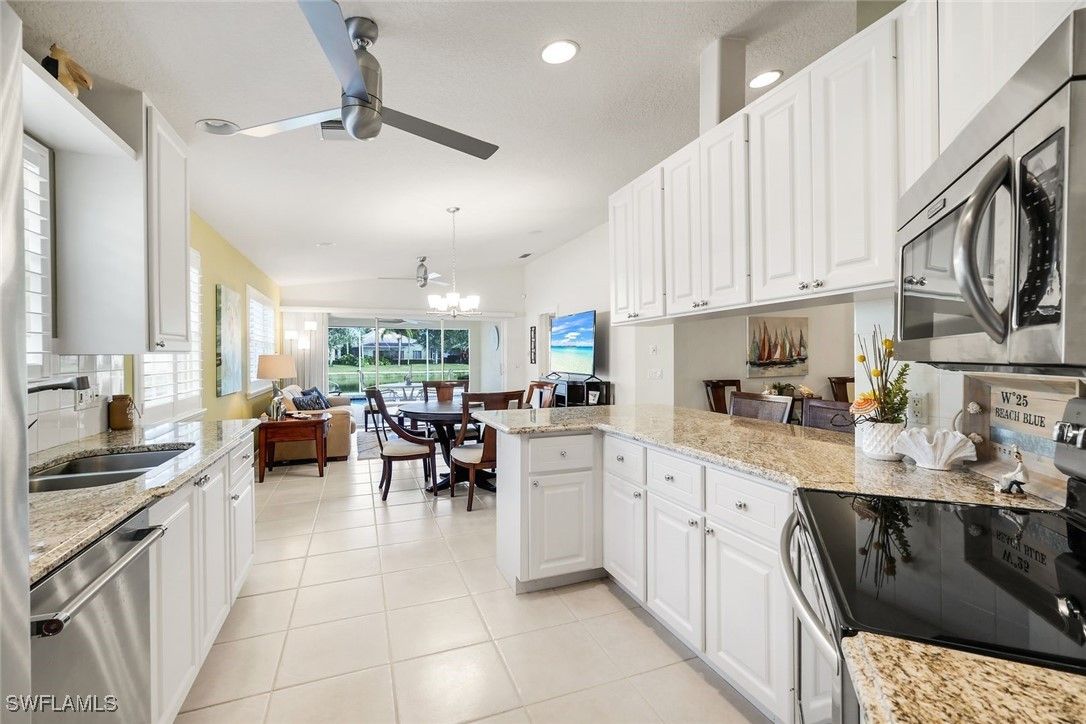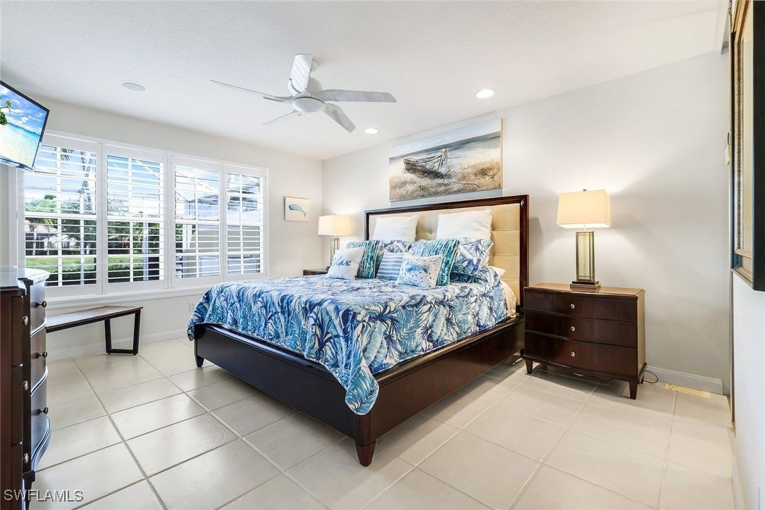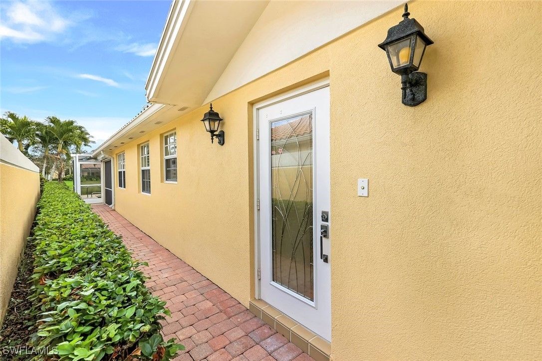 Here is your chance to own this Well Appointed and meticulously maintained Furnished Lakeview Capri villa with a pool in Island Walk. The open concept kitchen features Stainless Steel Appliances and an upgraded Granite Countertop. The custom Built in Wall unit in the Living room has had all the cabinet doors replaced and there is Tile throughout the home. You can even adjust the music on your built in speakers with volume in each room. Relax on your lanai by your heated pool as you enjoy the desirable Eastern rear exposure. This pool was beautifully resurfaced and there are Pavers on the Lanai and around the pool. There are roll down storm shutters for the Lanai only. Located in Island Walk; famous for its many Amenities and Resident Activities also has LOW FEES that INCLUDES HDTV and HIGH SPEED INTERNET. This Award Winning Community boasts miles of waterfront walking trails to a beautiful newly renovated Towncenter Clubhouse, 2 Resort Style Pools, Restaurant, Post Office, Gas Station, Car Wash, Har-Tru Tennis Courts, Pickleball, Bocce Courts, Putting Green and Fitness Center. No CDD. Come and enjoy Resort-Styled Living in Paradise!