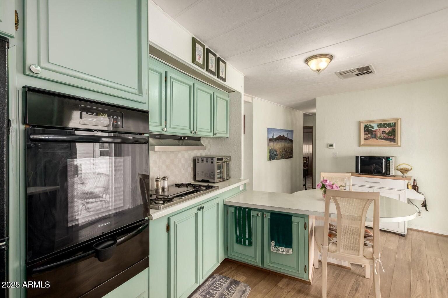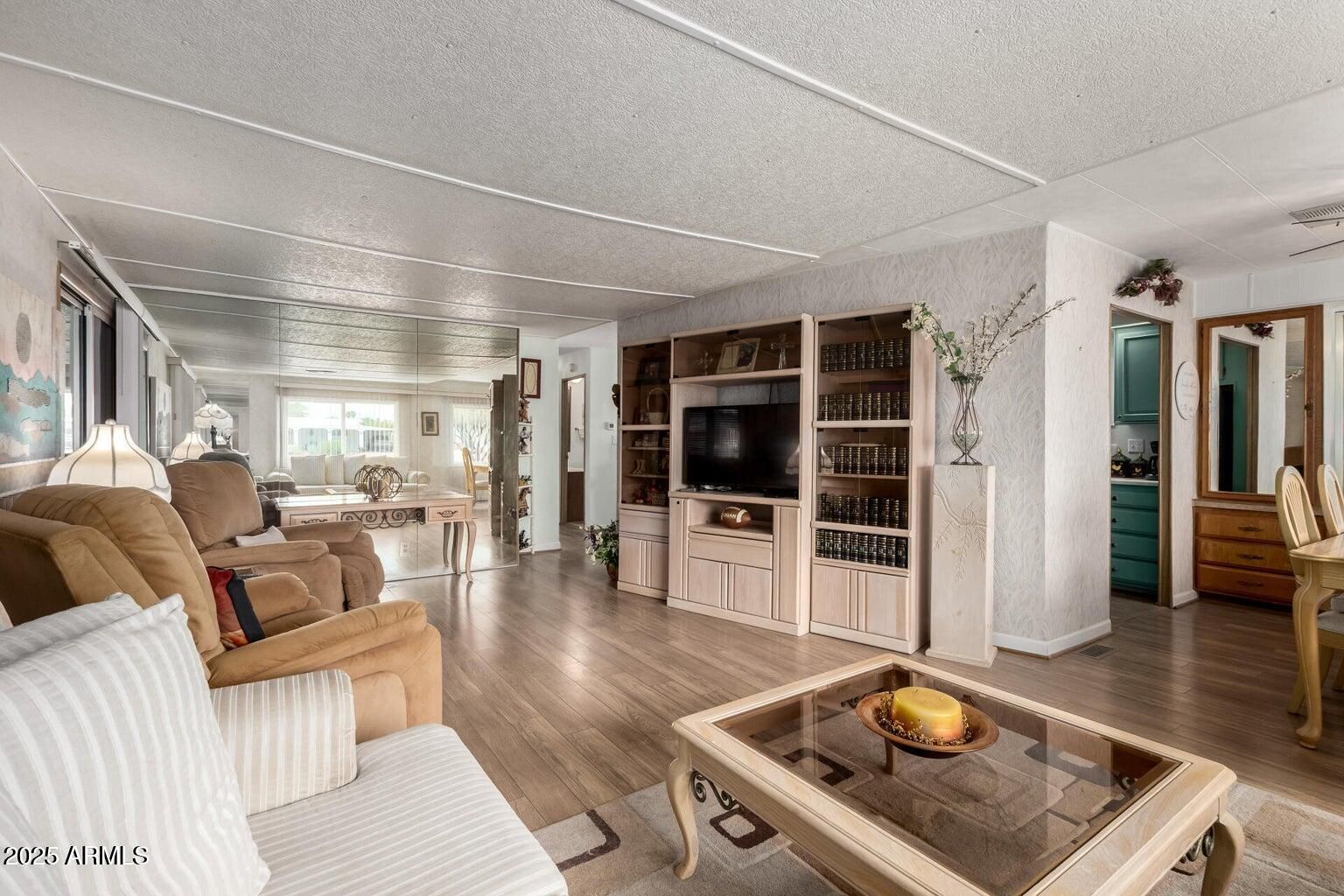 Come see this adorable 2-bedroom mobile home with its own carport! Inside, you'll find a welcoming vibe with wood-look floors and a cozy living room perfect for relaxing. The kitchen shines with essential appliances, a charming backsplash, plenty of counter space, and a convenient breakfast bar for morning coffee or quick bites. Perfectly located near parks and local amenities. This gem is waiting for you to make it your home!