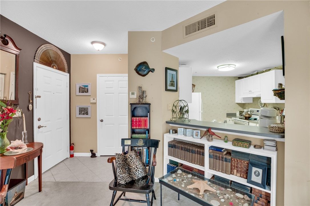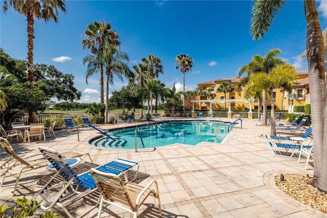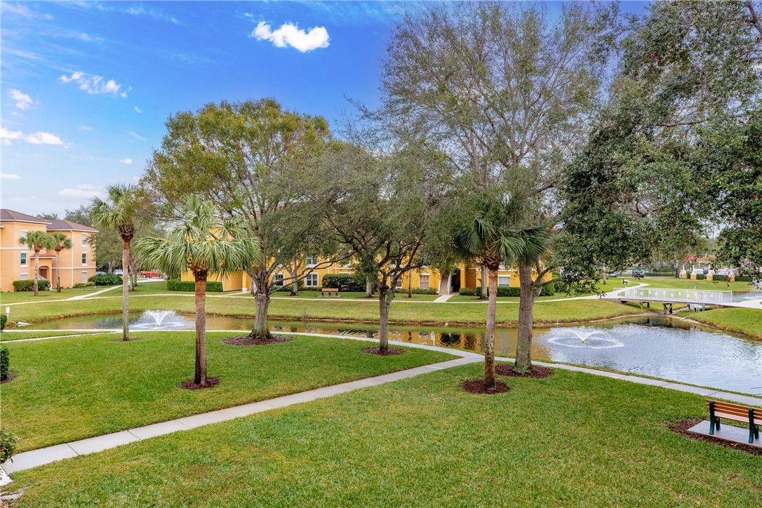 Location is paramount with this former model home featuring a 2nd-floor balcony overlooking calming views of the lake and fountain. Upgrades include: 2025 fully replaced AC unit and compressor, 2023 refrigerator, 2023 double-oven range, 2023 bathroom shower valve/faucet and sink faucet, 2022 water heater, 2022 smoke detectors. Make this charming space your safe haven in this easy-living condo community, alongside friendly neighbors & spectacular amenities, including pool, fitness center, clubhouse w/library & billiards table, tennis court & dog park. Close to beaches, hospital & shopping.