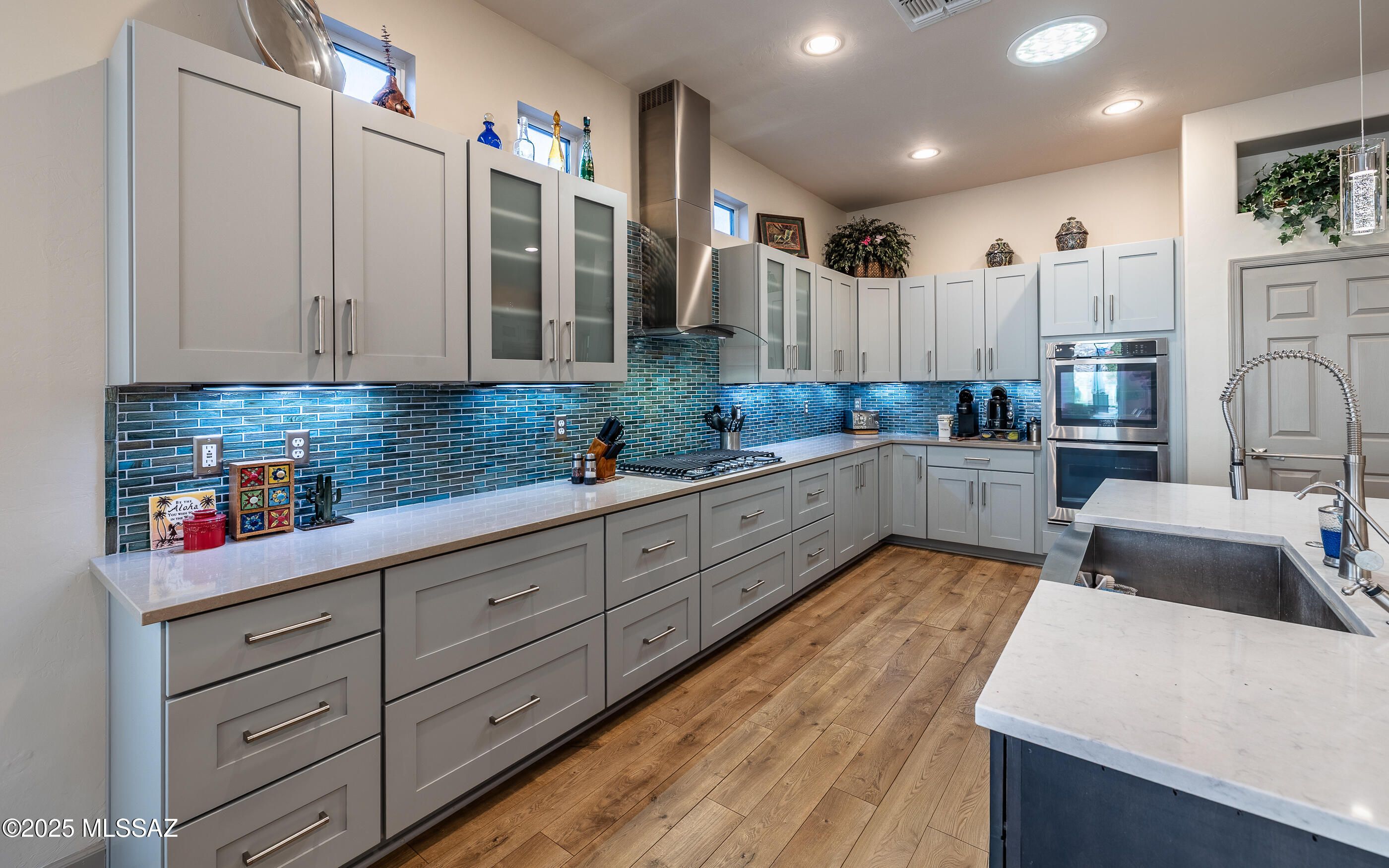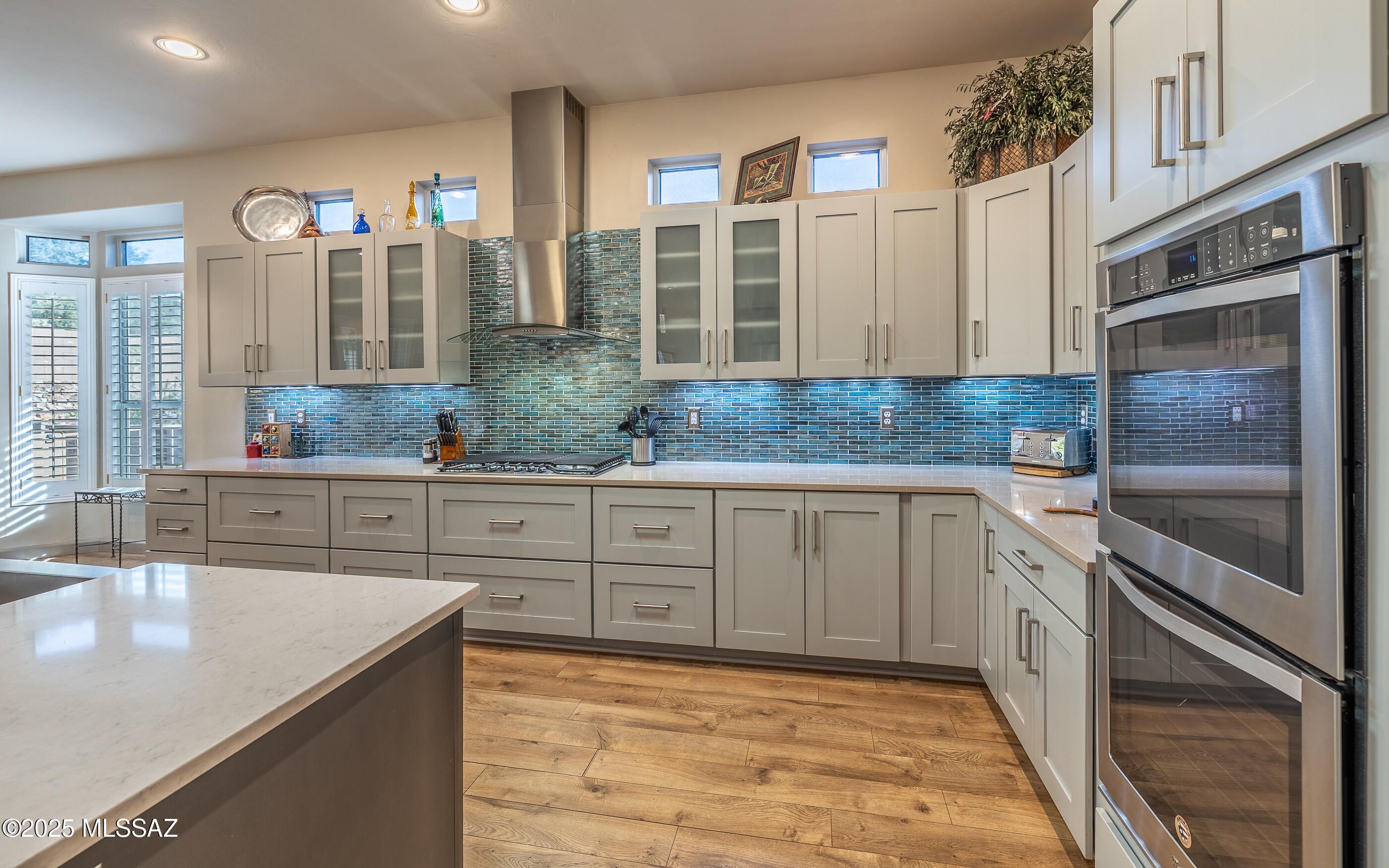 - Dishwasher, Exhaust Fan, Gas Cooktop, Gas Range, Microwave, Refrigerator, Wine Cooler