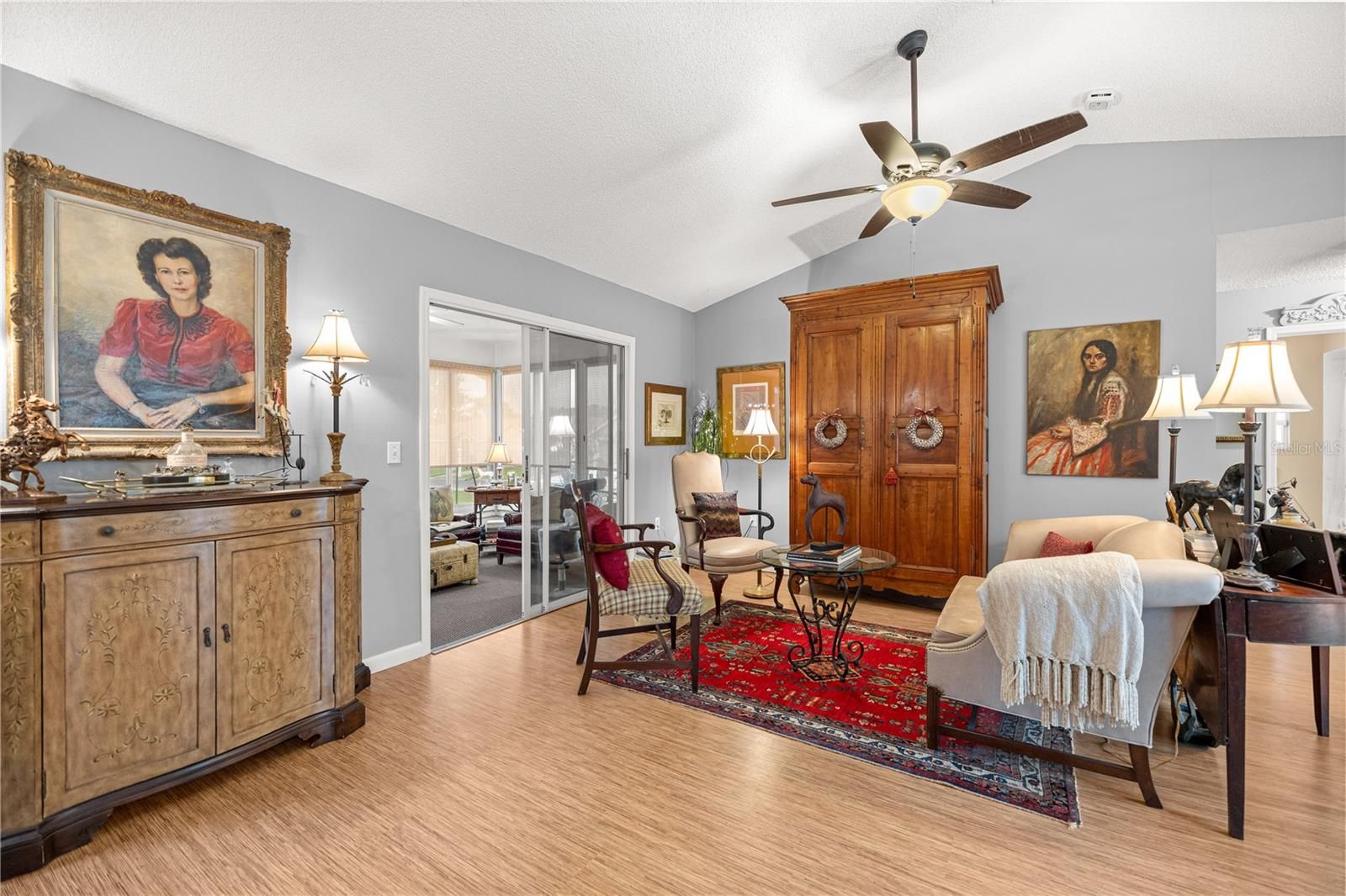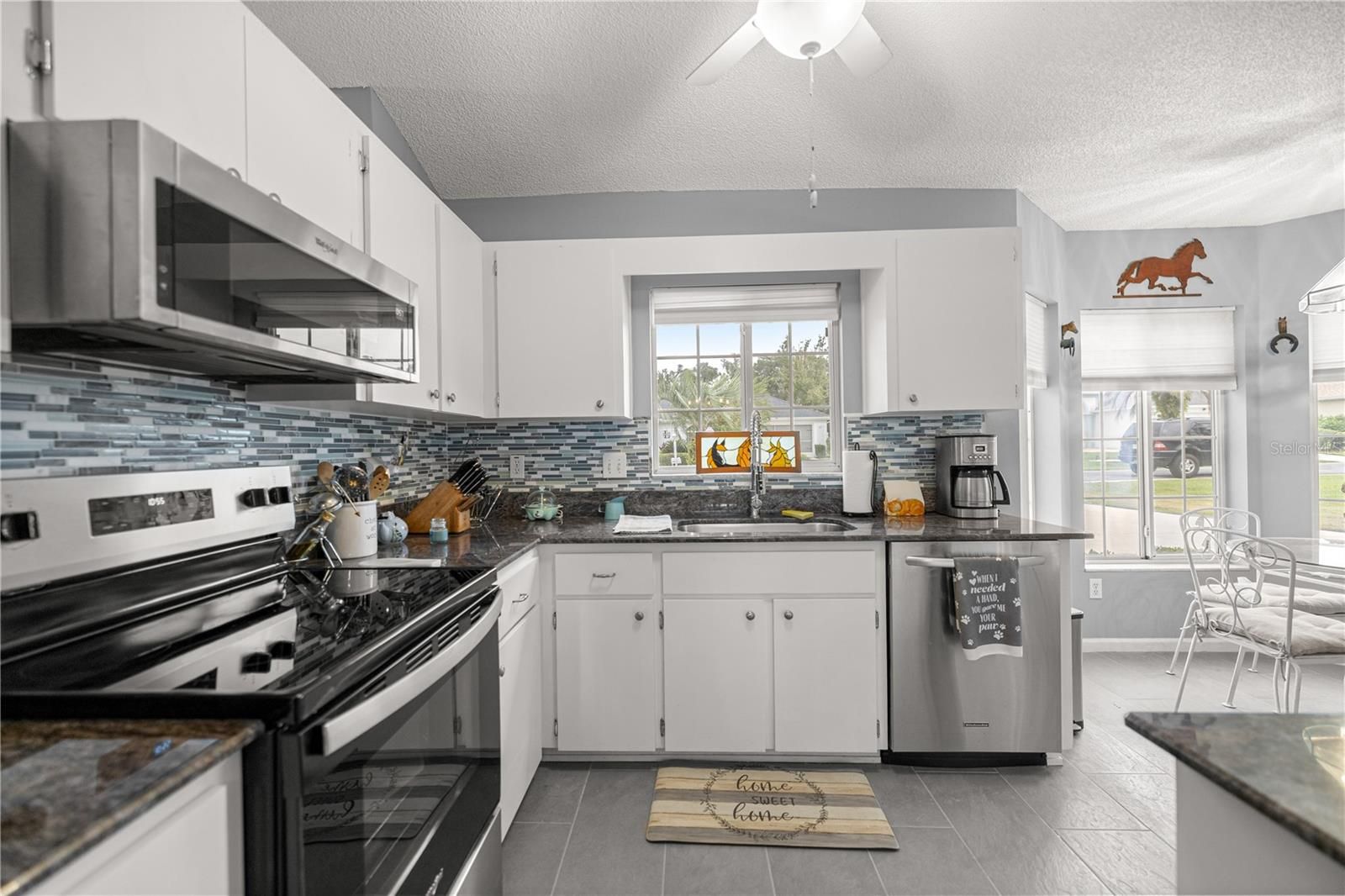Welcome to this beautifully maintained 2-bedroom, 2-bathroom home in the highly desirable 55+ gated golf community of Ocala Palms. Offering comfort, style, and convenience, this home is designed for both relaxation and entertaining. Step inside to find a bright, open living and dining area with cathedral ceilings that create an airy, spacious feel. The eat-in kitchen boasts granite countertops, stainless steel appliances, and a cozy bay window nook — perfect for morning coffee. Relax in the spacious master suite with a walk-in shower and large closet, while the guest bedroom and second full bath provide comfort and privacy for visitors. Enjoy Florida living year-round in the enclosed Florida room or in your private fenced backyard. Additional features include inside laundry, and a large 2-car garage for vehicles and storage. New A/C in 2025. Located in Ocala Palms, you’ll have access to golf, tennis, indoor and outdoor pools, fitness, and endless social activities — all just minutes from shopping, dining, and the World Equestrian Center.