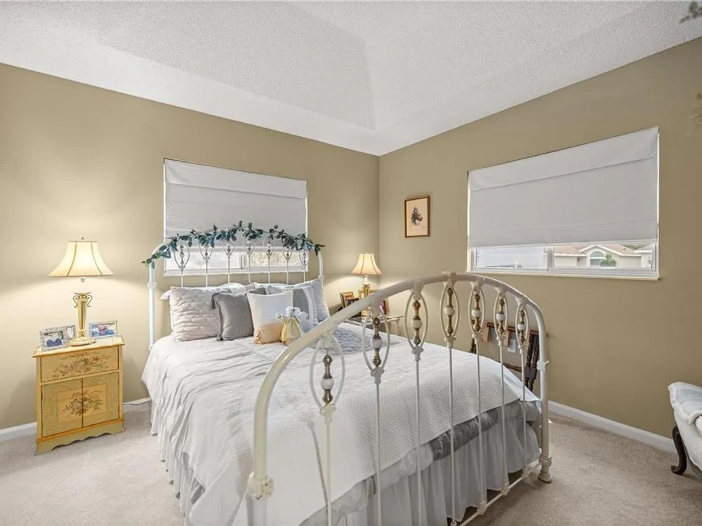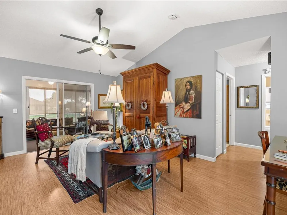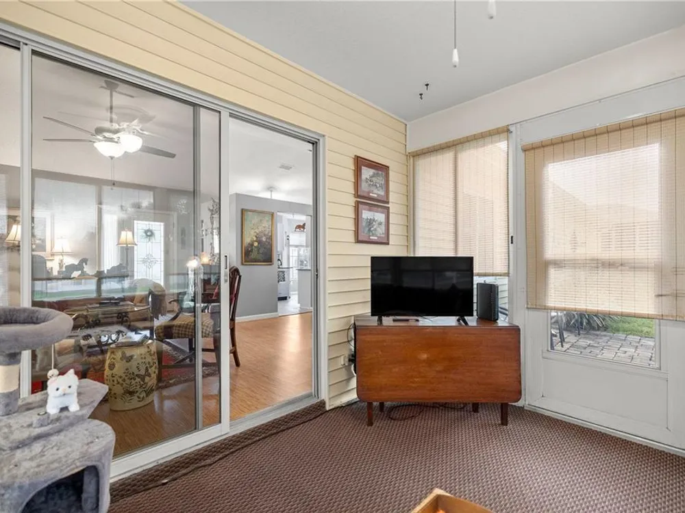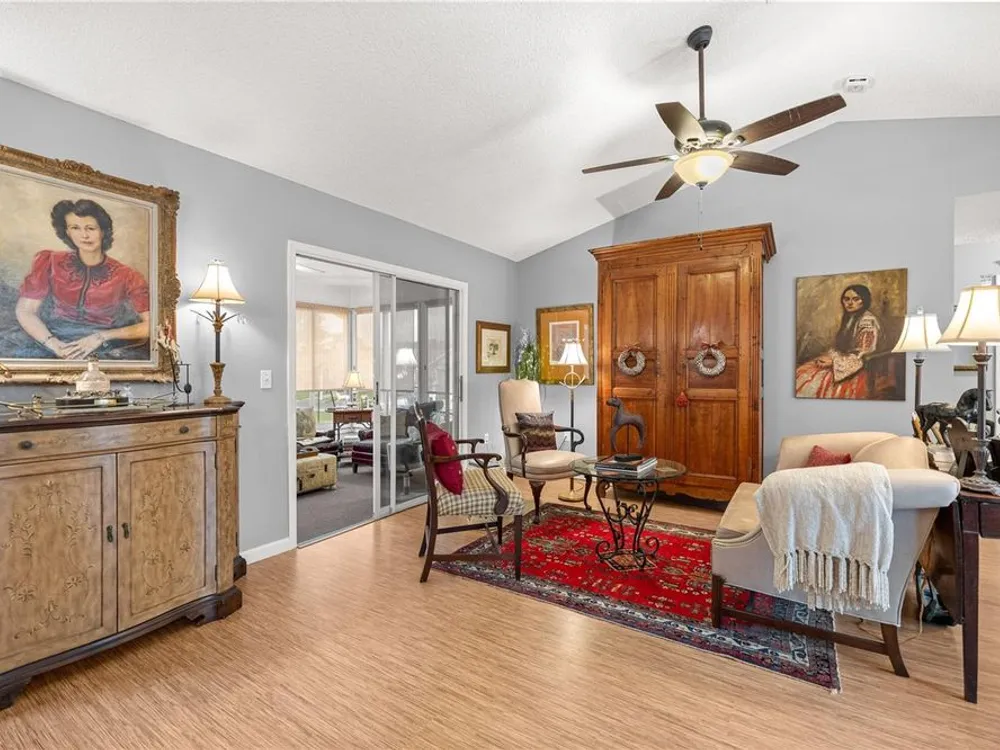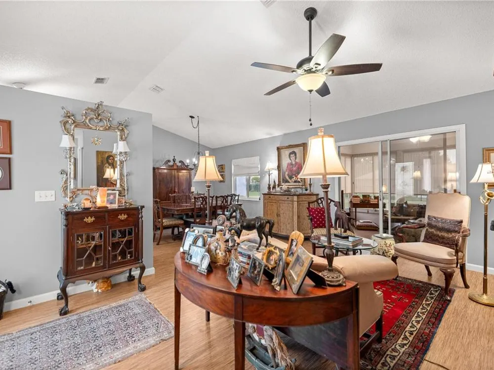Welcome to this beautifully maintained 2-bedroom, 2-bathroom home in the highly desirable 55+ gated golf community of Ocala Palms. Offering comfort, style, and convenience, this home is designed for both relaxation and entertaining. Step inside to find a bright, open living and dining area with cathedral ceilings that create an airy, spacious feel. The eat-in kitchen boasts granite countertops, stainless steel appliances, and a cozy bay window nook — perfect for morning coffee. Relax in the spacious master suite with a walk-in shower and large closet, while the guest bedroom and second full bath provide comfort and privacy for visitors. Enjoy Florida living year-round in the enclosed Florida room or in your private fenced backyard. Additional features include inside laundry, and a large 2-car garage for vehicles and storage. Located in Ocala Palms, you’ll have access to golf, tennis, indoor and outdoor pools, fitness, and endless social activities — all just minutes from shopping, dining, and the World Equestrian Center.