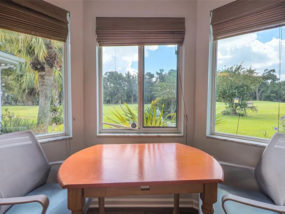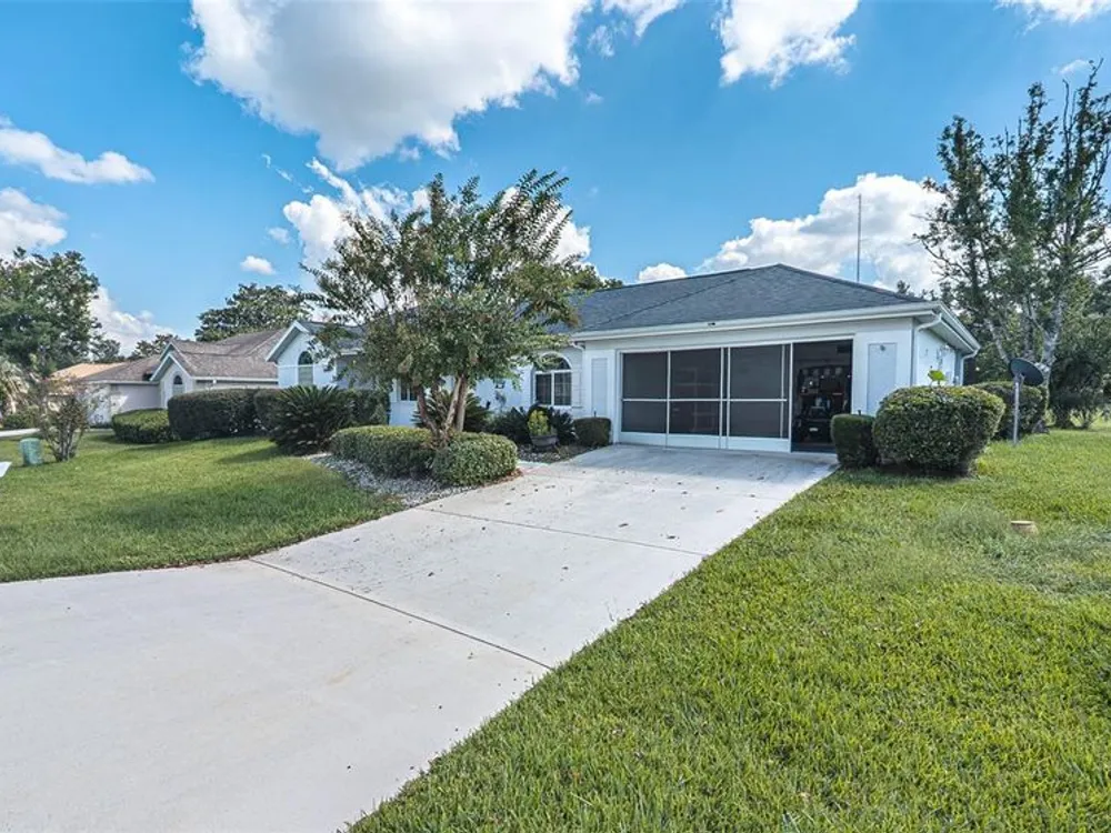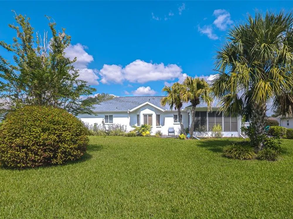 Enjoy breathtaking views and unmatched privacy in this beautifully updated home overlooking a pristine stretch of the golf course—with no neighbors in sight from your back windows or the expansive enclosed Florida room with added comfort in a screened in garage. The open floor plan and vaulted ceilings create a bright, airy feel, while the large primary suite offers the perfect retreat. Located in a lively golf community with resort-style amenities including pools, fitness centers, and endless social activities, all just minutes from Ocala’s best dining, shopping, and equestrian venues. Home includes the golf cart shown in the photos, and all furniture can be kept or removed at the seller’s expense before closing—your choice!
