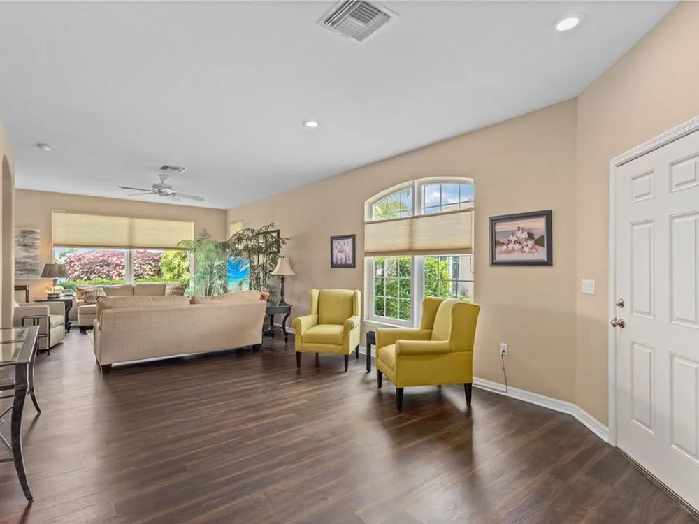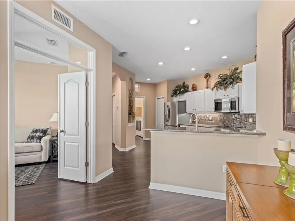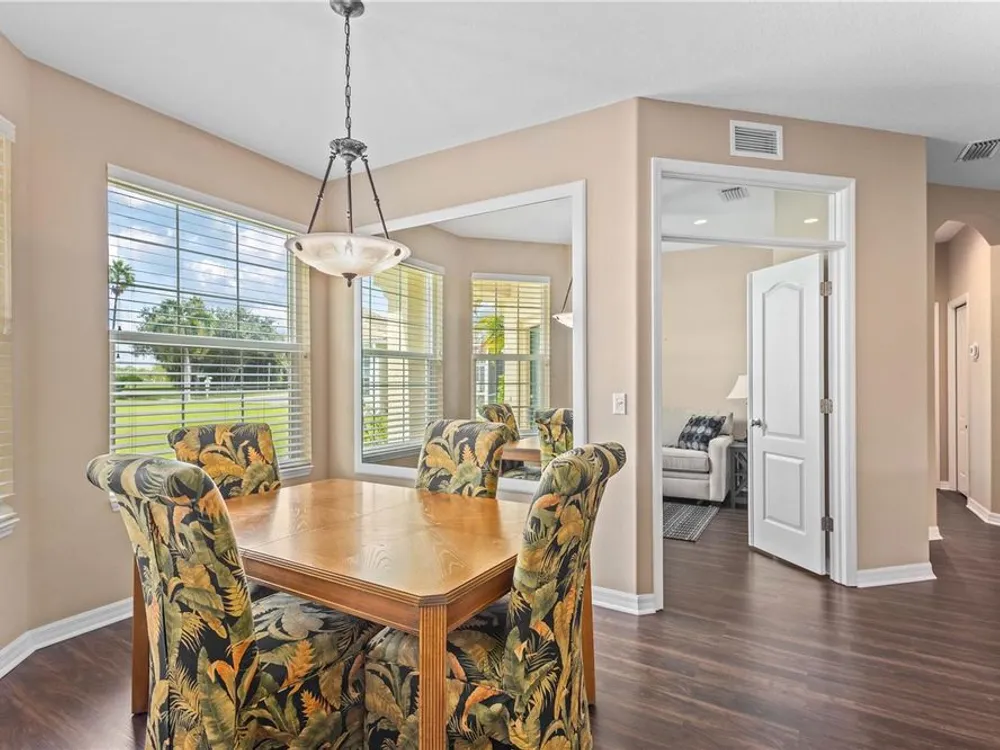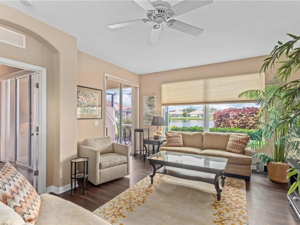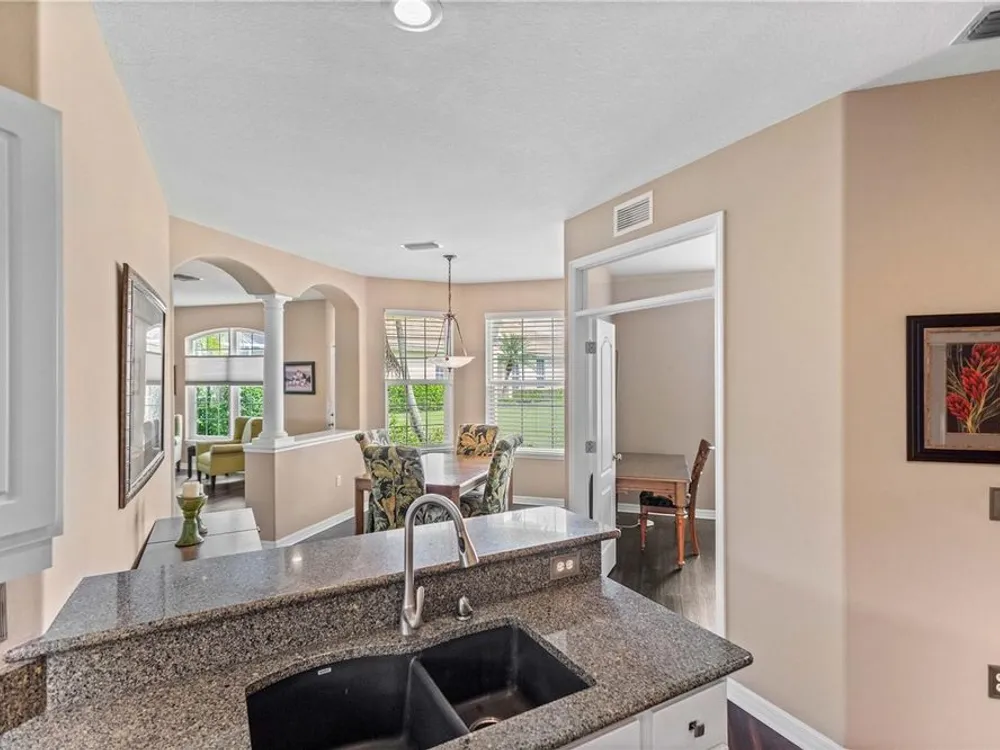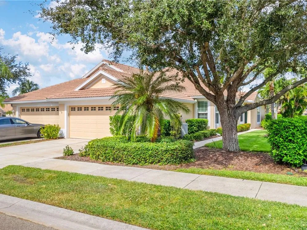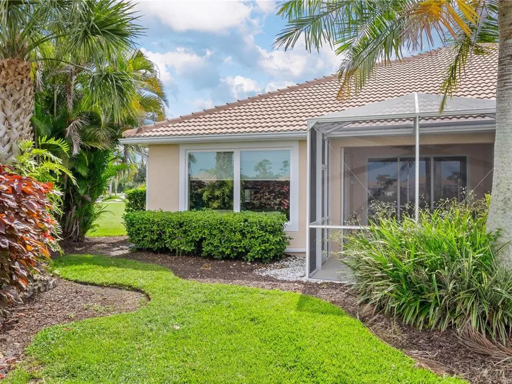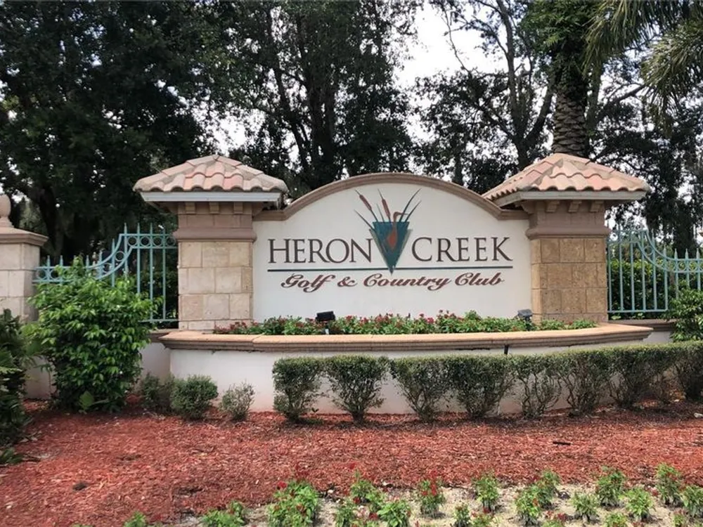 This beautifully updated move in ready villa is ready for YOU! This villa offers over 1600 sq ft with 2 bedrooms, 2 baths , den and two car garage. This fabulous villa is located in the desirable gated golf course community of Heron Creek Golf and Country Club overlooking the serene lake with fountain. Enjoy the updated kitchen featuring, solid wood white cabinetry with under cabinet lighting accented by a stylish tile backsplash, stainless steel appliances, granite counter tops, breakfast bar, and closet pantry. The formal dining room adjacent to the kitchen is complimented by arches and pillars, the perfect place to indulge in delish meals with your friends and family. The open concept great room provides plenty of room for entertaining and includes sliders out to the lanai to take in the views of the lake. The nice size owner’s suite offers sliders to the lanai and views of the lake as well. Relax in the updated ensuite bath with solid wood cabinetry granite counter tops, dual sinks, huge walk-in tiled shower and walk- in closet. This is a true split floor plan with the guest bedroom located on the opposite end of the villa offering the utmost in privacy for you and your guests. The guest bath is nicely updated with solid wood cabinetry, granite counter tops and shower/ tub combination with glass door enclosure. The den/ office is a great getaway and is highlighted with a transom window. There a lot of extra touches in this villa including, New Roof, New Impact Windows, Hurricane treatment for the lanai, New Front Door, Luxury Vinyl Flooring throughout the home, New Gutters and Down Spouts, Freshly Painted, New Landscaping in the Backyard creating your own private retreat, neutral color palette throughout the home, NO CDD FEES, Low HOA Fees that include maintenance of the outside, and painting of the outside. Heron Creek Golf and Country Club is amenity rich with 27 holes Arthur Hills designed golf course and wonderful practice facility, 5 Har Tru lighted tennis courts, resort style pool with spa, newly renovated fitness center, newly updated courtside cafe where you can enjoy a bite after your workout or making the turn. The 21,000 sq ft Clubhouse offers casual and fine dining. There are lots of social activities always going on at Heron Creek. This ideal location is close to area beaches, shopping, restaurants, Warm Mineral Springs and Cool Today Park. NOW IS THE TIME to make this home yours!