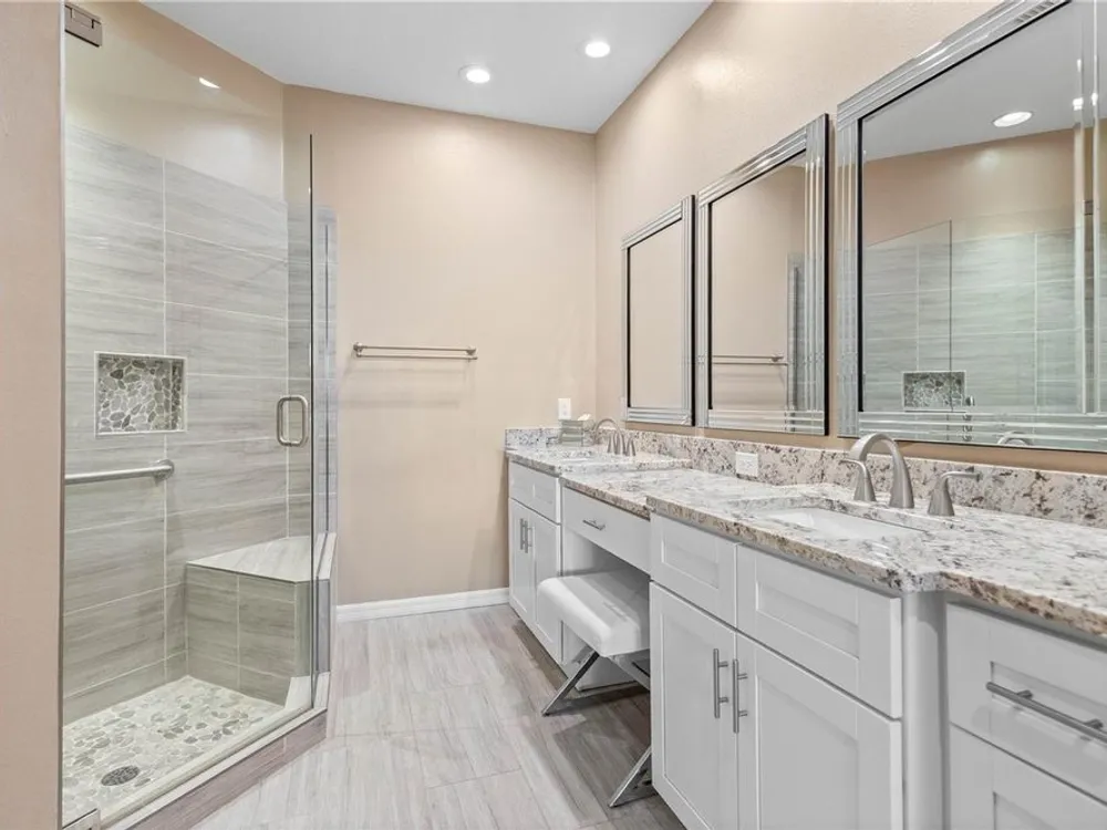 - Ceiling Fan(s), High Ceilings, Solid Surface Counters, Solid-Wood Cabinets, Stone Counters, Thermostat, Walk-In Closet(s)