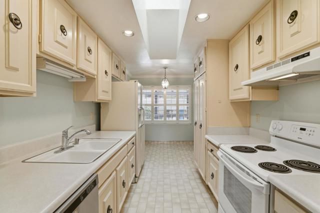 Bright and beautifully updated upper end unit in the desirable Villages community. The Eat-in kitchen features a large skylight and a spacious pantry. The oversized living and dining area is perfect for entertaining. The large primary suite offers abundant closet space and natural light, while the second bedroom is ideal for visiting guests, a hobby room or a home office. The end-unit location provides an abundance of windows in the primary bedroom and bathrooms for added light. A convenient in-unit laundry room is located on the covered back patio. The covered patio allows for neighborhood views and a peaceful place to watch the sunset. The entry patio is also coveredperfect for plants or a small garden. Enjoy the mountain and greenbelt views from the bedrooms. Experience resort-style living every day at the Villageswhere nature, recreation, community and relaxation come together in perfect harmony. The Villages offers resort-style amenities including a championship golf course, while the HOA dues include access to the clubhouse, library, tennis courts, pools, spa, bocce, walking trails, garden plots, and numerous social activities. Secure entry and security patrols, lush landscaping, and a vibrant 55+ community make this the perfect place to call home!