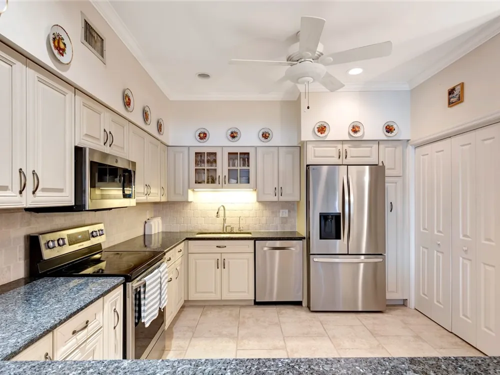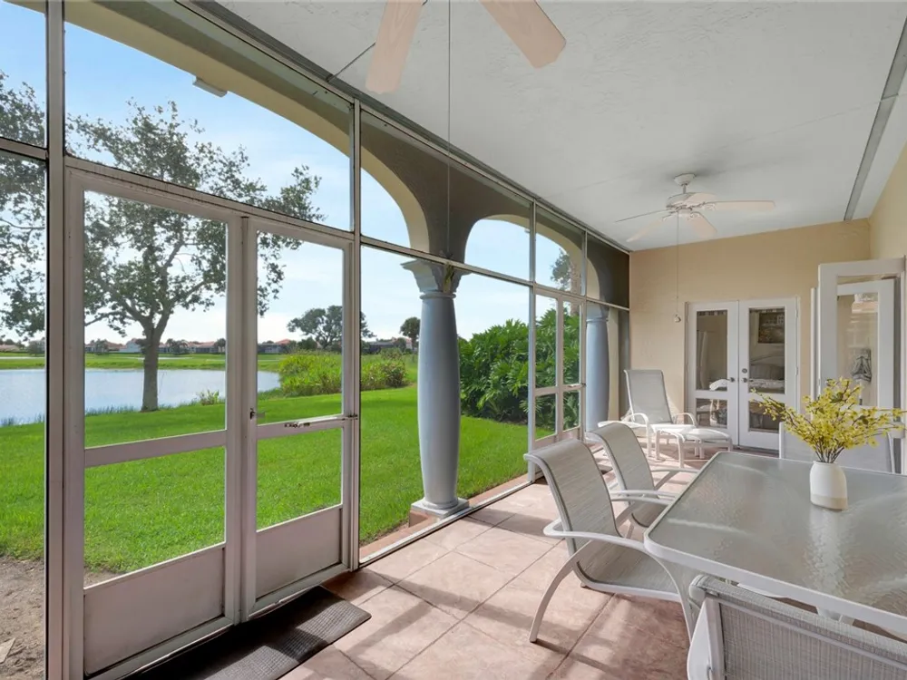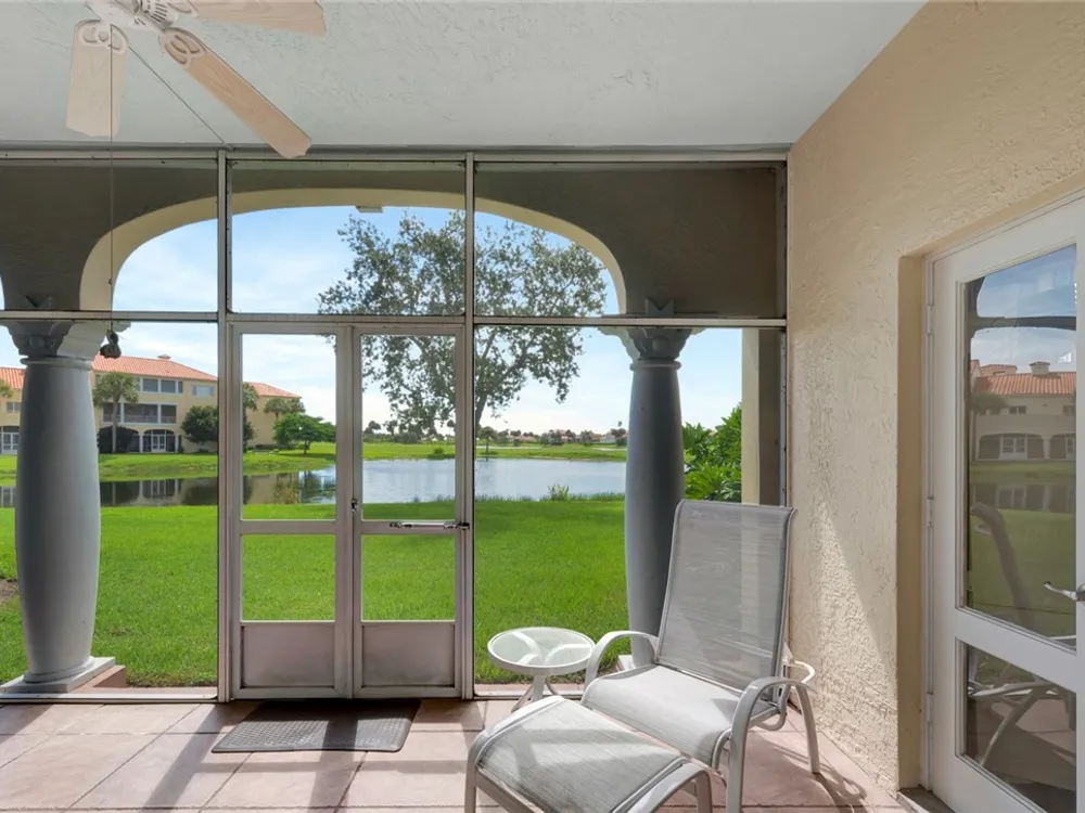 Look no further. This first floor condo boasts an ample screened porch with serene wide views of lake and golf fairway, tile throughout, tumbled marble tile in showers, upgraded kitchen and bathrooms, granite counter tops in kitchen, bathrms and kitchen nook table top, water tank replaced 2022. This is contingent on the Grand Harbor membership closing simultaneously. TURNKEY- with several personal exceptions. Rmszapprox.