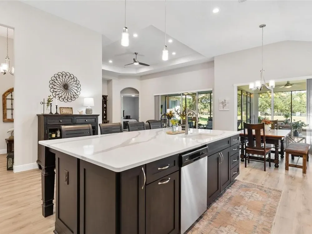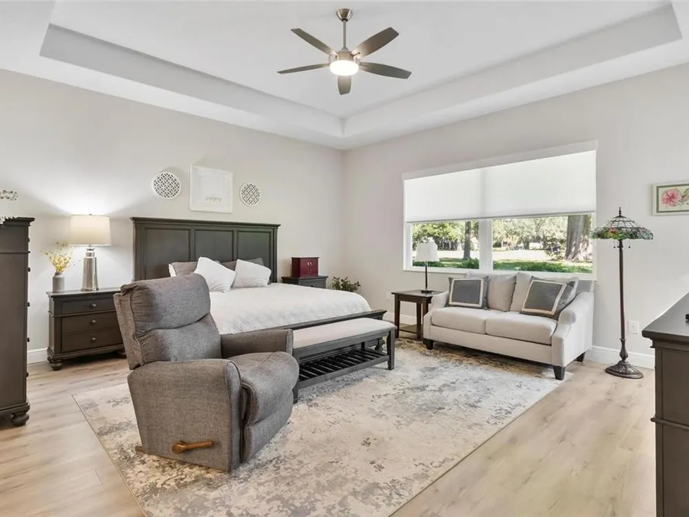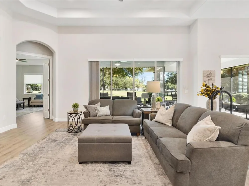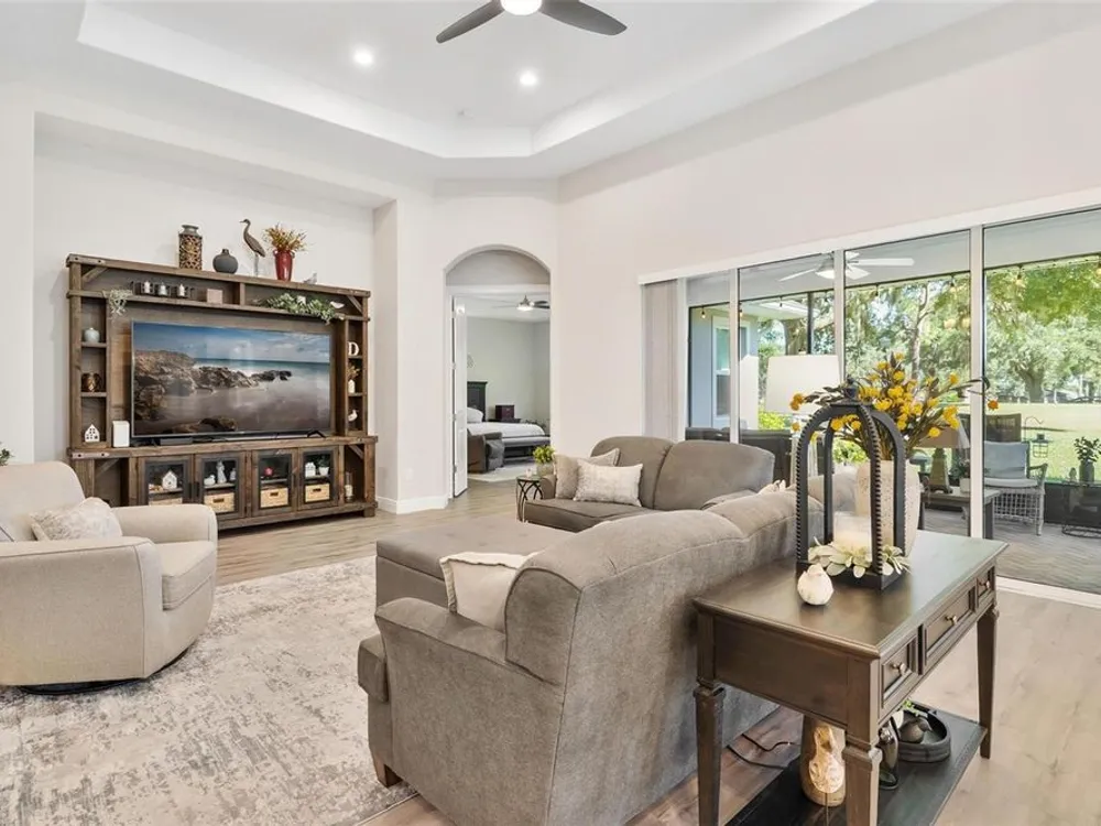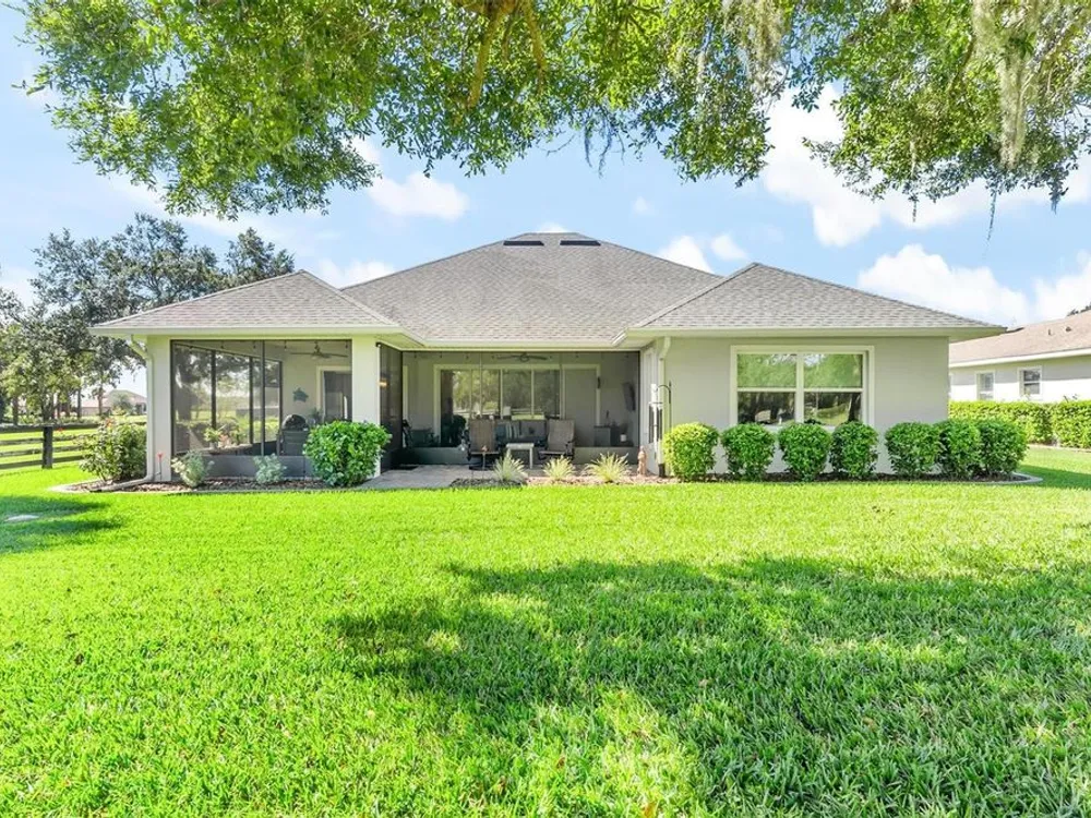 Have you been looking for an immaculate 4 bedroom home on the golf course and in a gated community? Well look no further! Discover modern luxury and serene golf course living in this stunning 4 bedroom 3 bath home built in 2020. Perfectly situated on a corner lot on Tee #3, this property offers sweeping views as golfers tee off to the fairway! Step inside to find an open concept floor plan featuring high ceilings, designer finishes and abundant natural light. The gourmet kitchen is a chef's dream with quartz countertops, ample cabinet space, stainless appliances and spacious island perfect for entertaining. The primary suite off the living area offers a peaceful retreat with a spa like bathroom with double sinks and dream walk in shower plus double walk in closets. Three additional bedrooms provide ample room for family or guests. Imagine enjoying your morning coffee or evening glass of wine on the screened in back porch overlooking the manicured green. This back porch is the perfect blend of outdoor living. Another major perk is the whole home Generac generator that brings you peace when you loose power. Live where you play and love where you live in the Harbor Hills community! Between golfing, the community pool, the on site restaurant and many different activity clubs-this neighborhood can keep you busy right near your door step! Conveniently also located just miles to The Villages! Do not miss your chance to make this immaculate home yours! Move in today and start living the lifestyle you deserve!